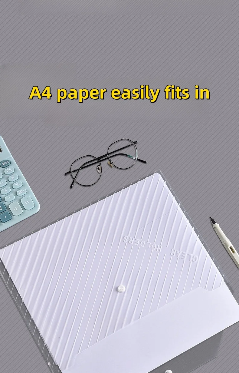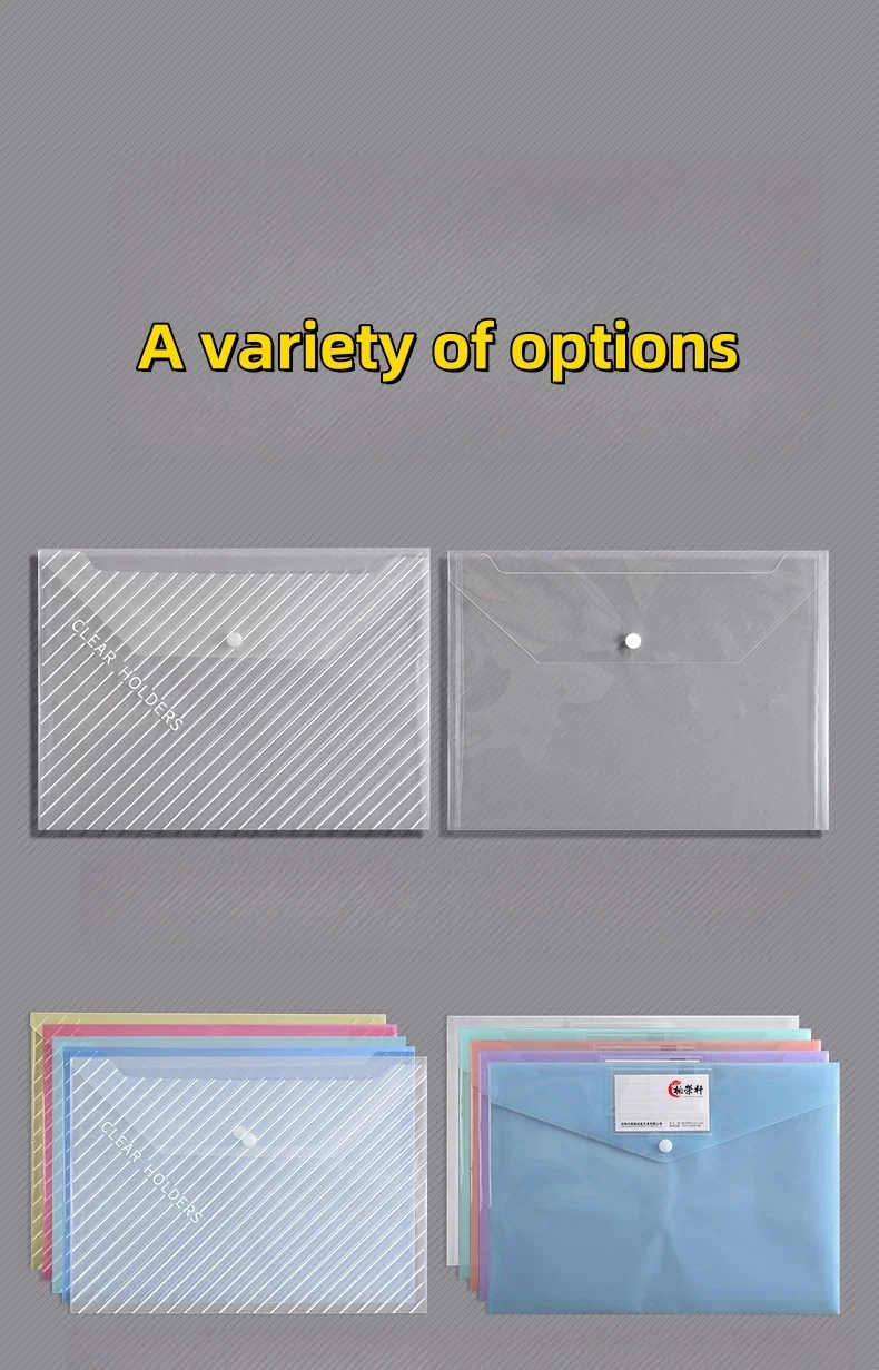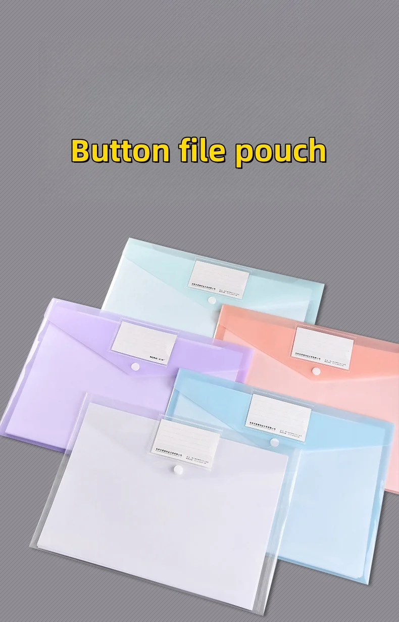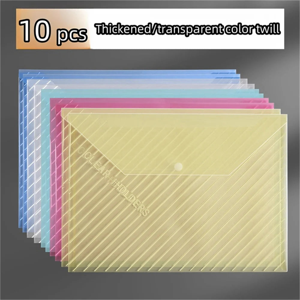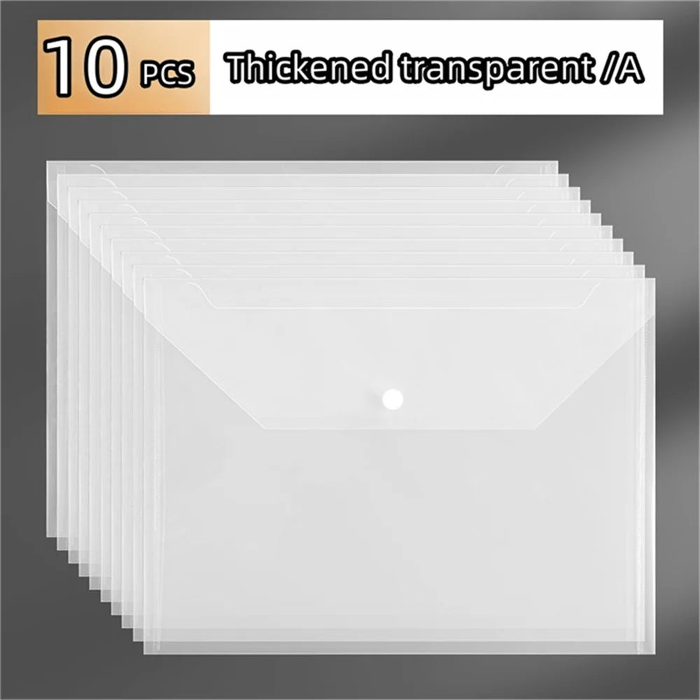 10pcs A4 Transparent Plastic File Bag Document Data Storage Bag With Snap Button Document Papers organizer Stationery supplies