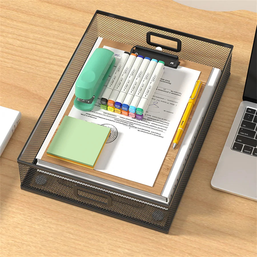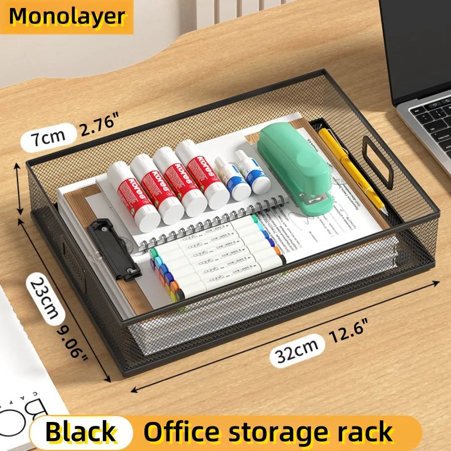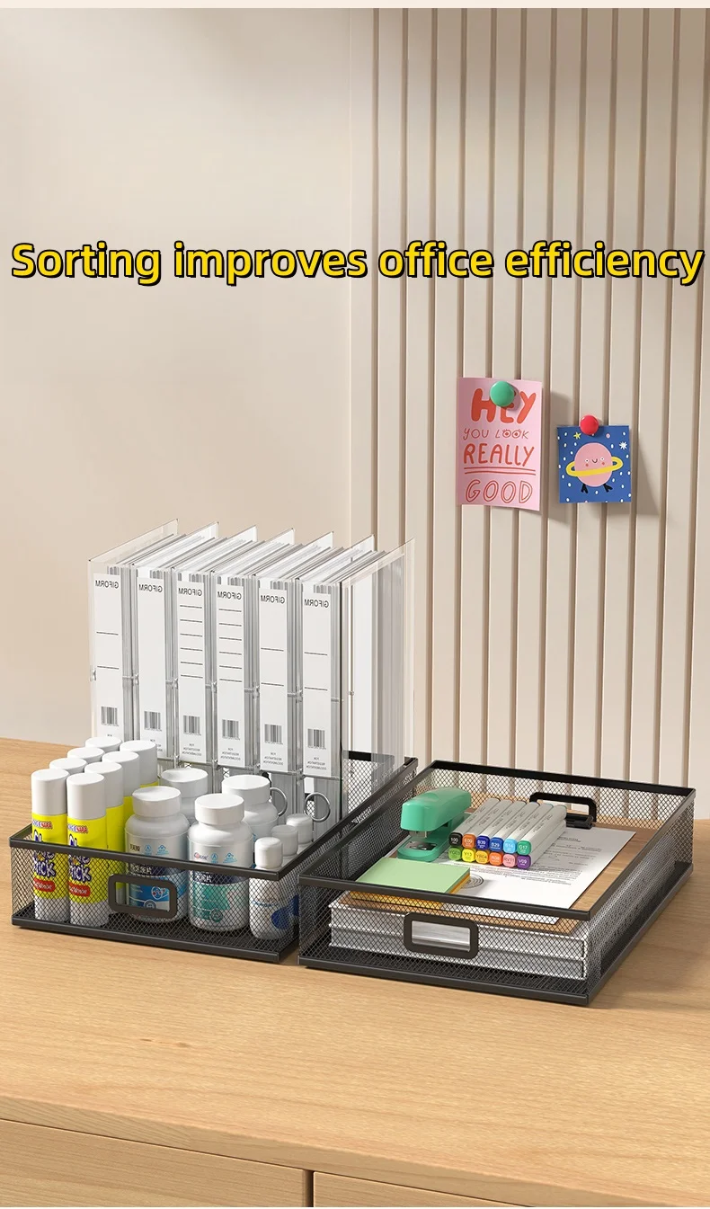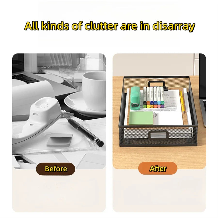 2 Pcs desktop drawer storage tray, metal mesh desktop storage tray with handle, portable large storage basket