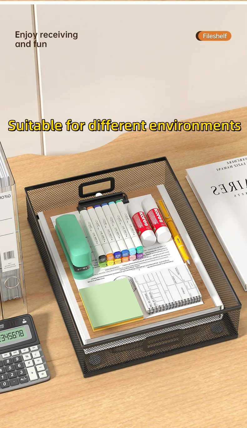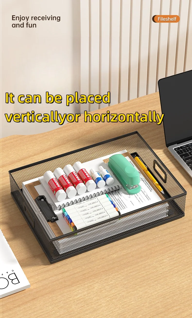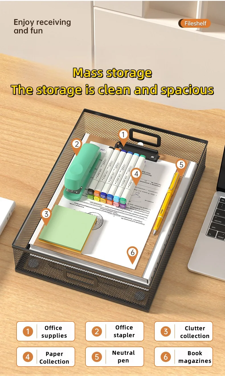 2 Pcs desktop drawer storage tray, metal mesh desktop storage tray with handle, portable large storage basket