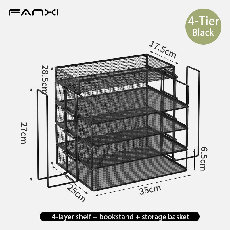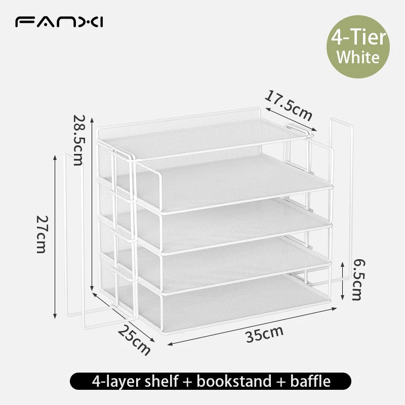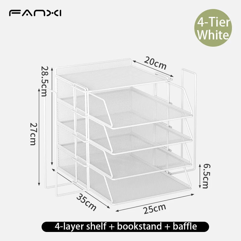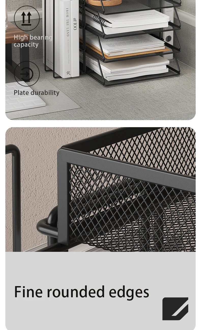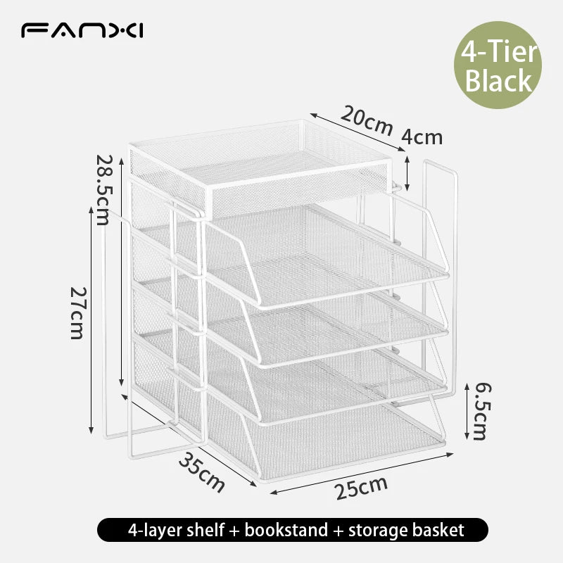 4-Tier Desk Organizer Stackable Paper Tray Paper File Organizer for Desk Mesh Stackable Paper Tray Desktop Document for School