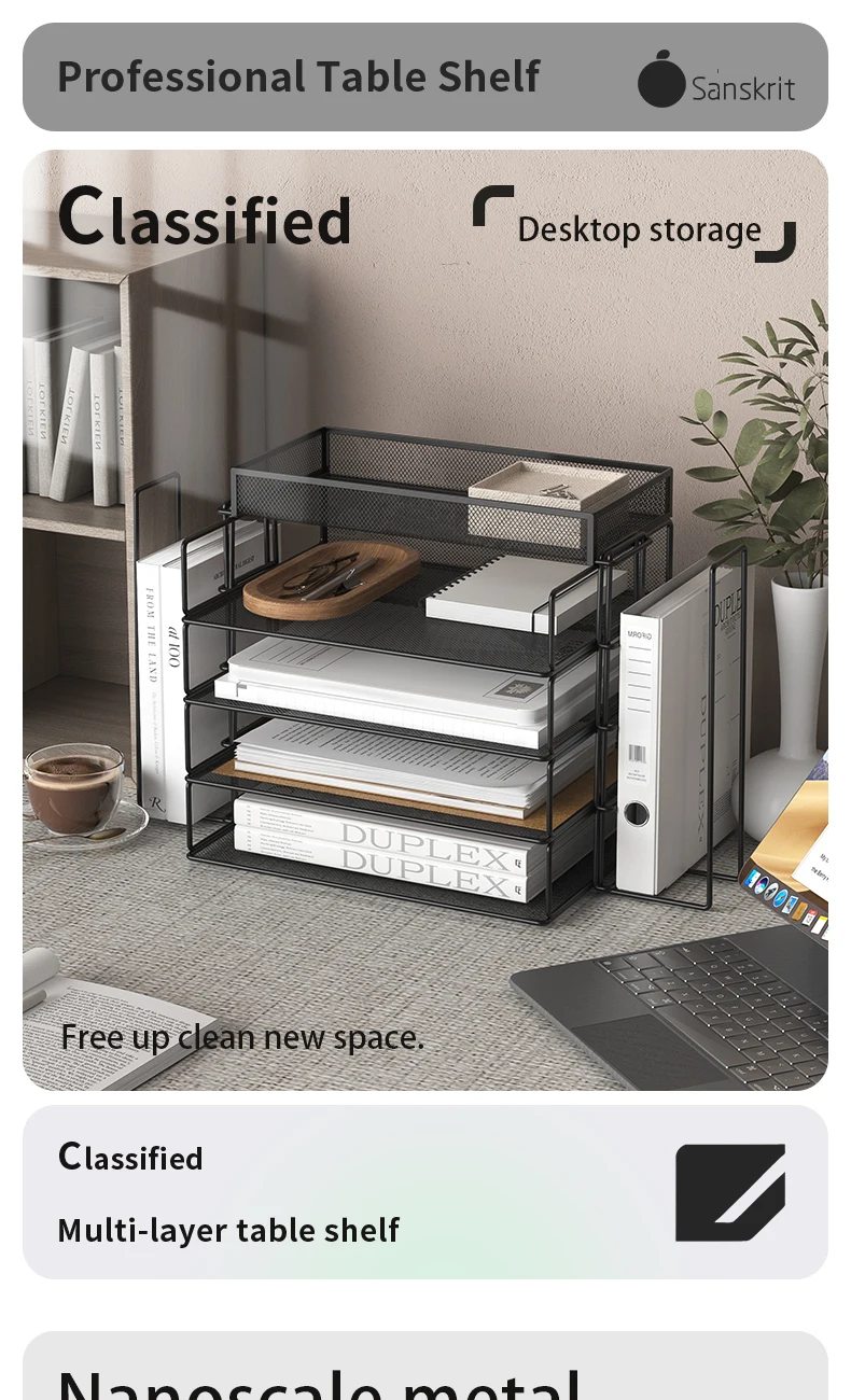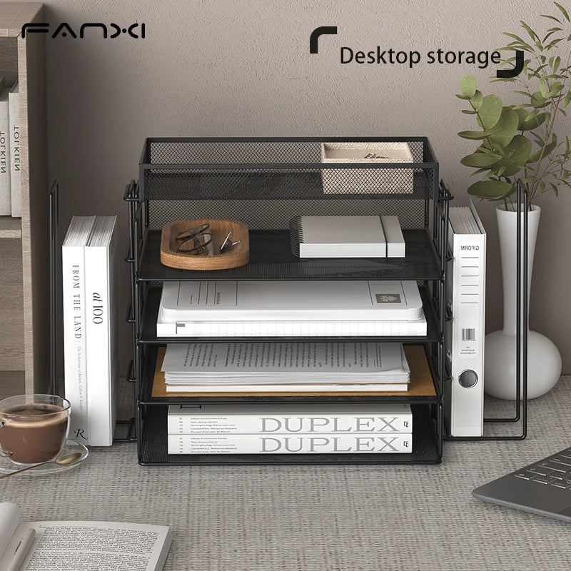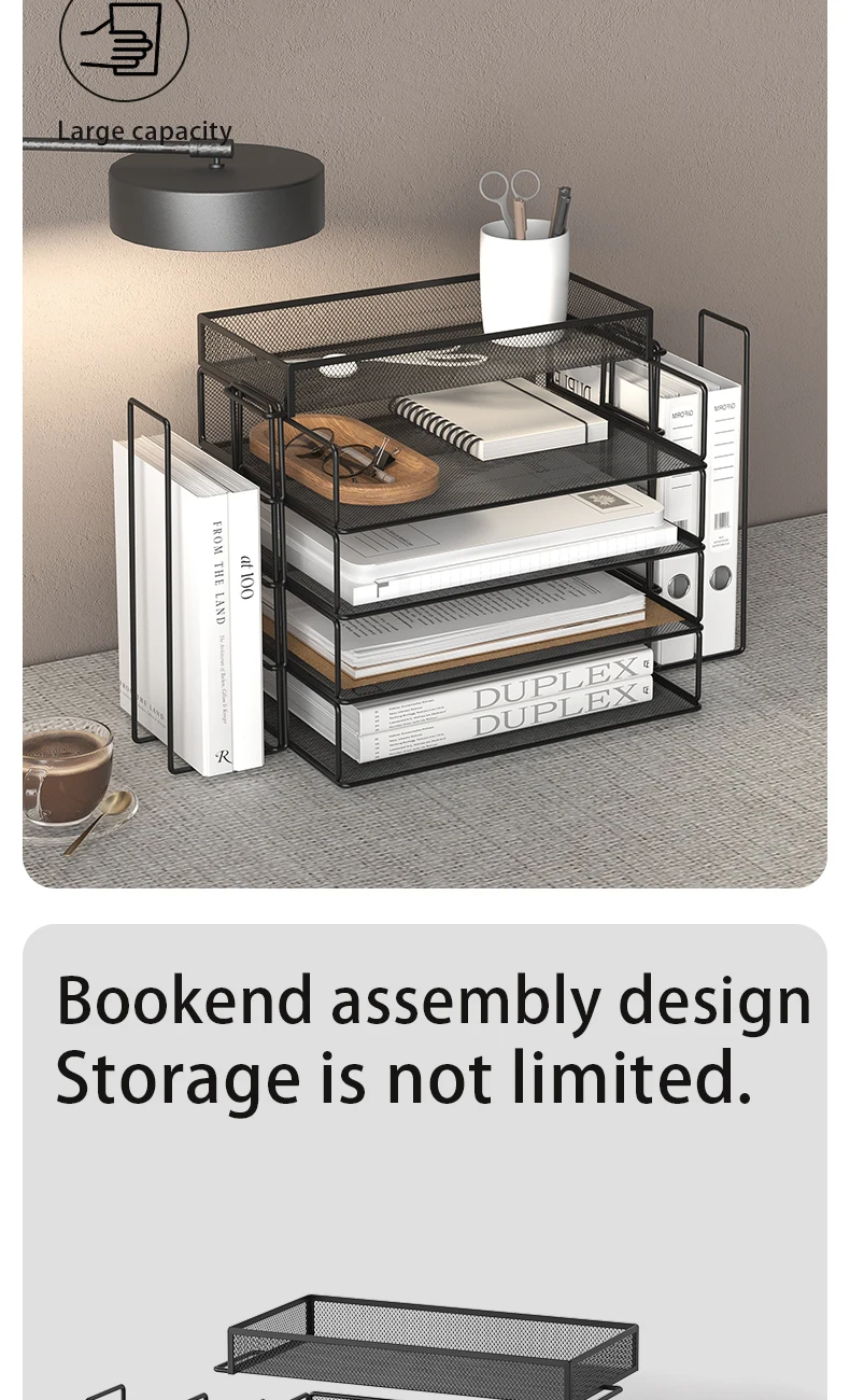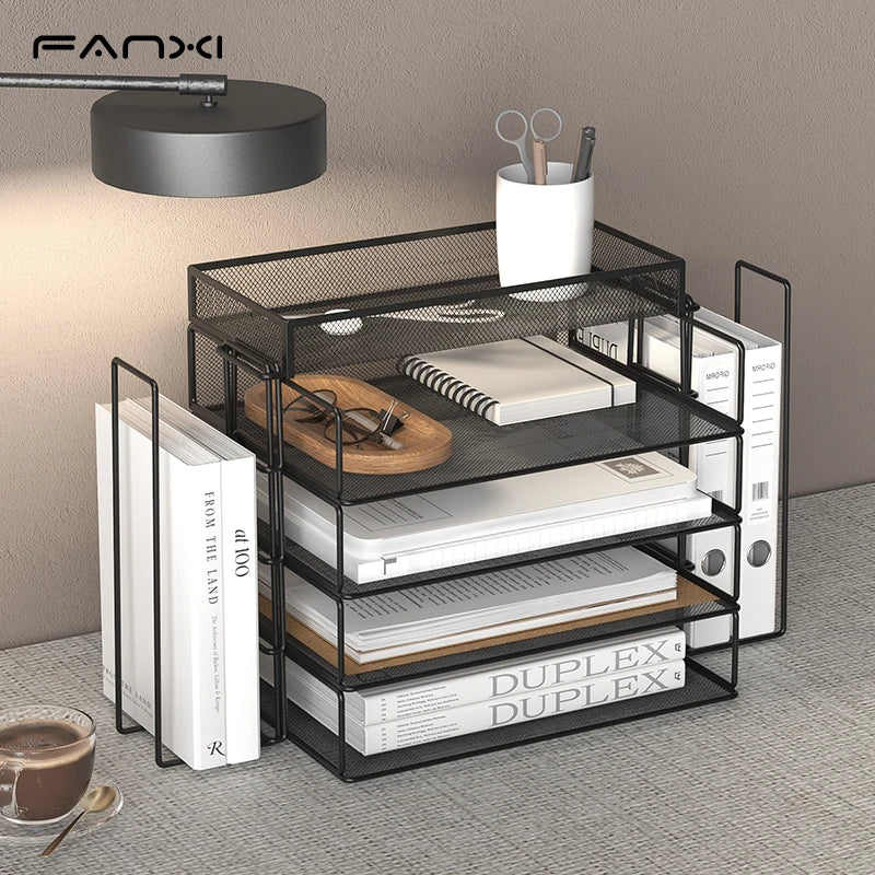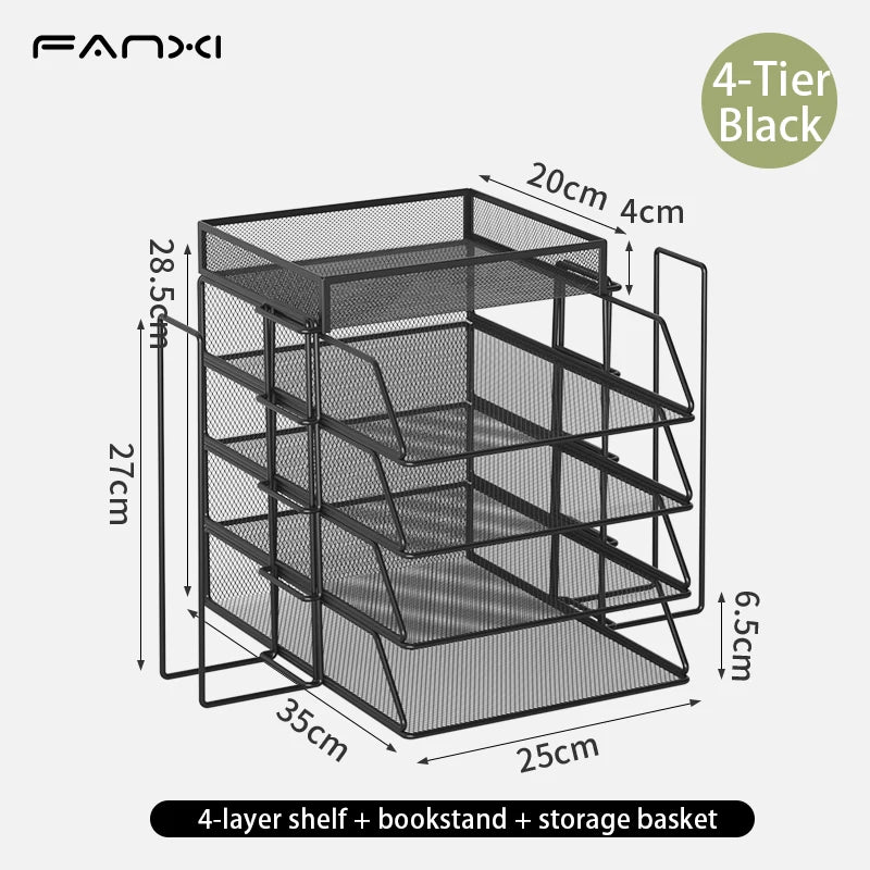 4-Tier Desk Organizer Stackable Paper Tray Paper File Organizer for Desk Mesh Stackable Paper Tray Desktop Document for School