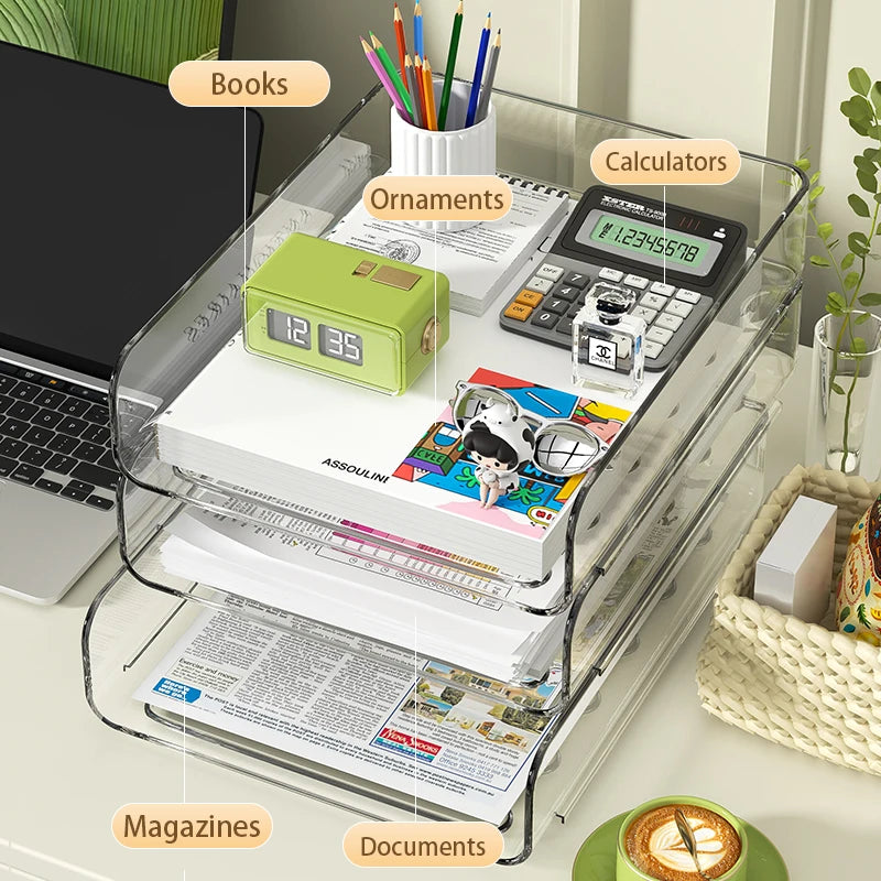 4-Tier Paper Organizer for Desk, Stackable Desk Organizer Paper Tray, Desk Accessories & Workspace Organizers, Ideal for Office