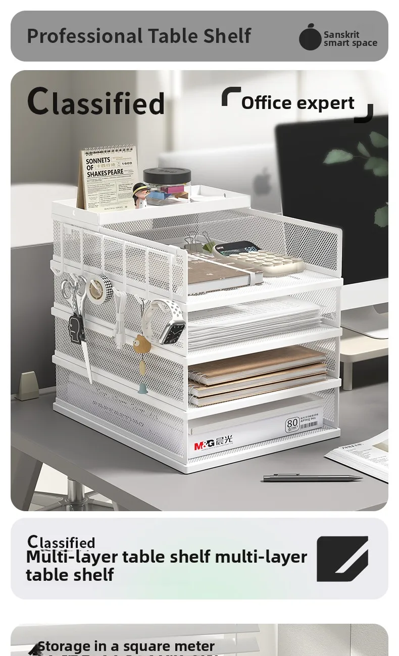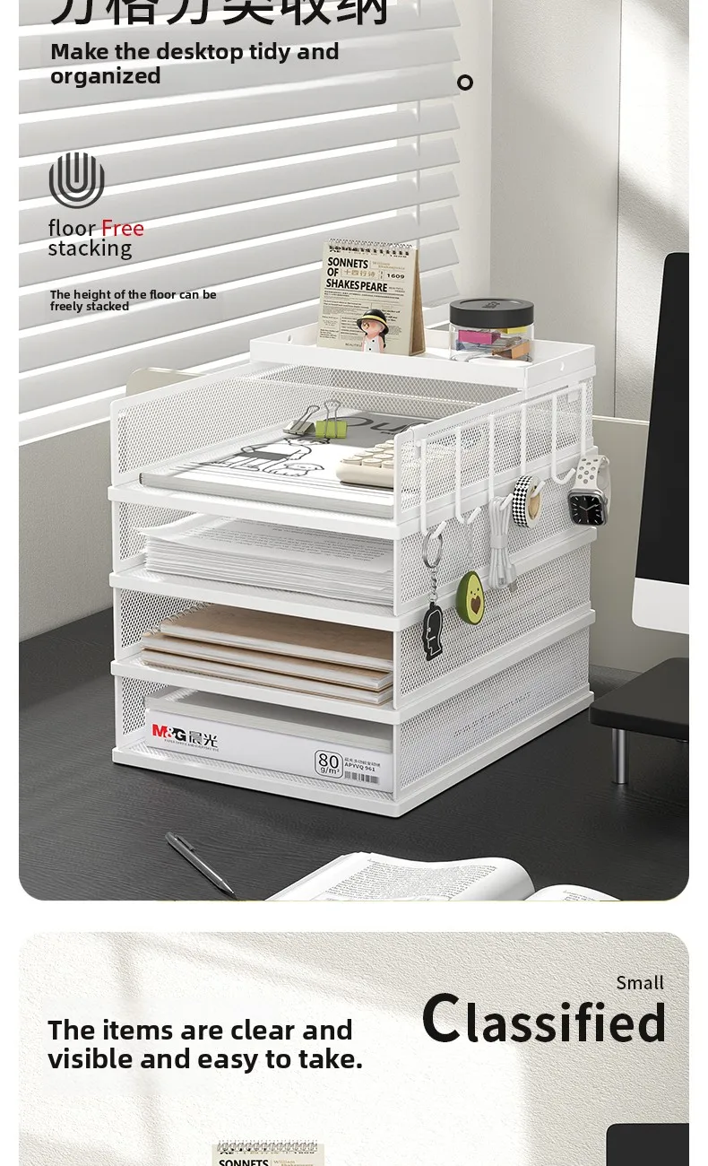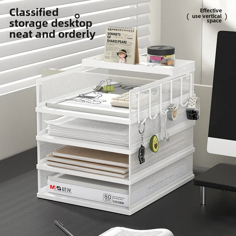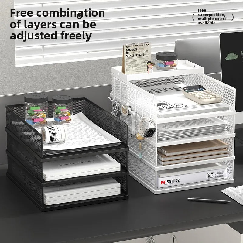 4-Tier Stackable Paper Tray, Metal Mesh Desktop Organizer, Paper Sorter, Letter Trays,File Document Storage Rack for for Office