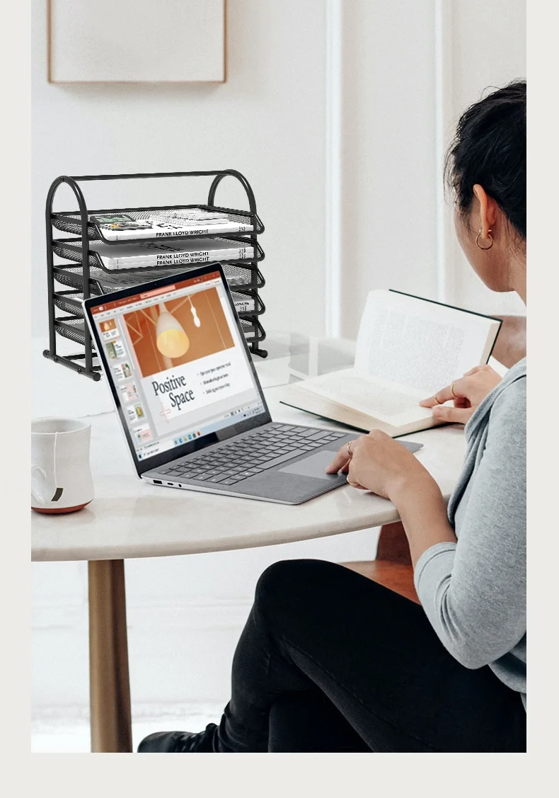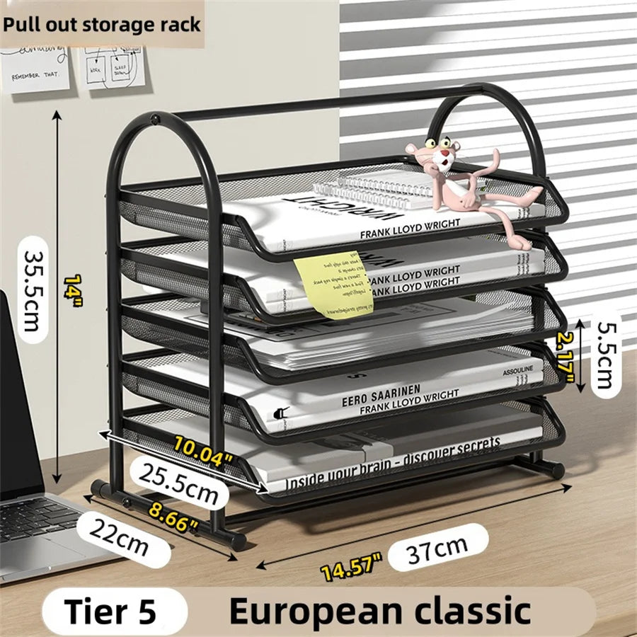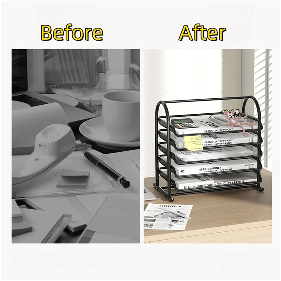 5-Tier Mesh File Holder Stand OrganizerTray for Magazine Letter PaperDocument Home Office Desk supplies