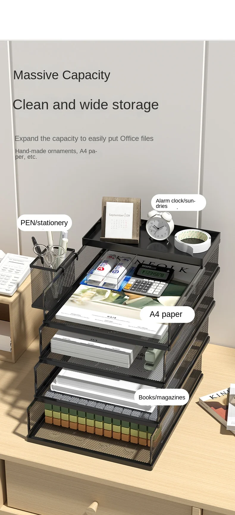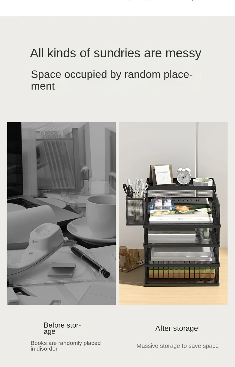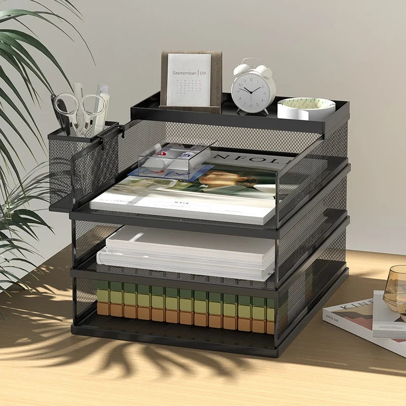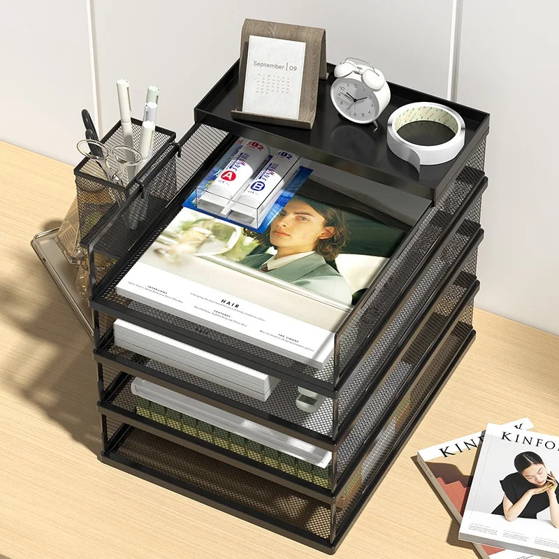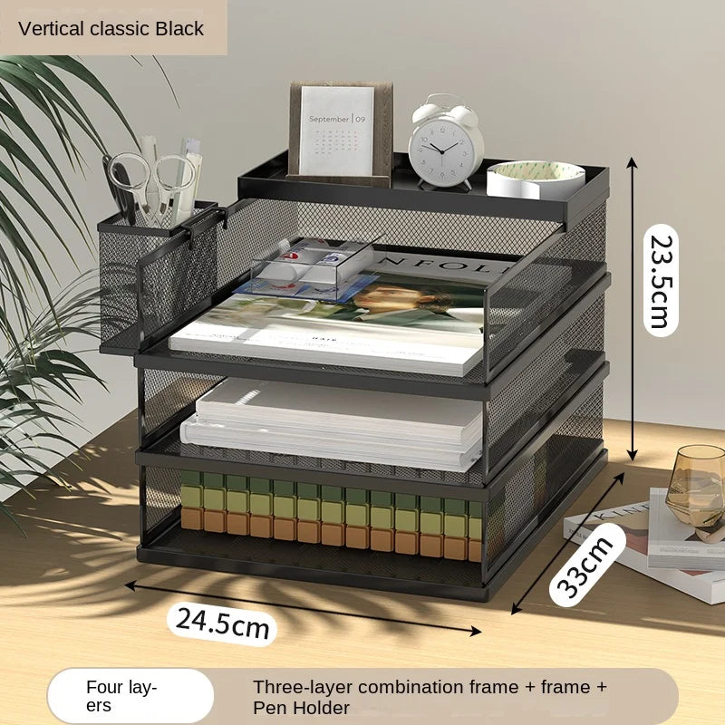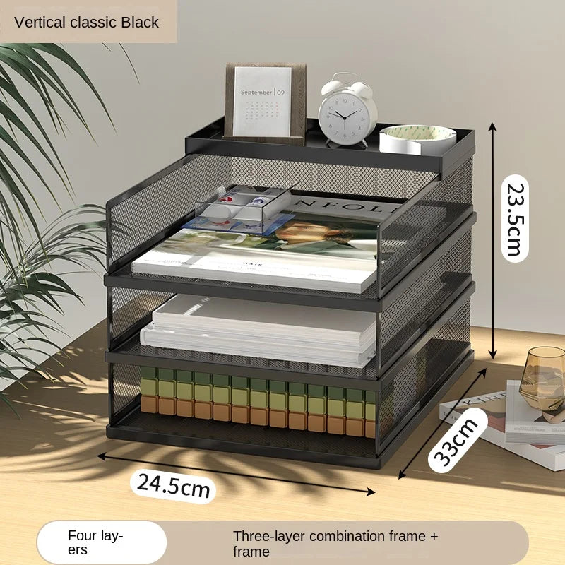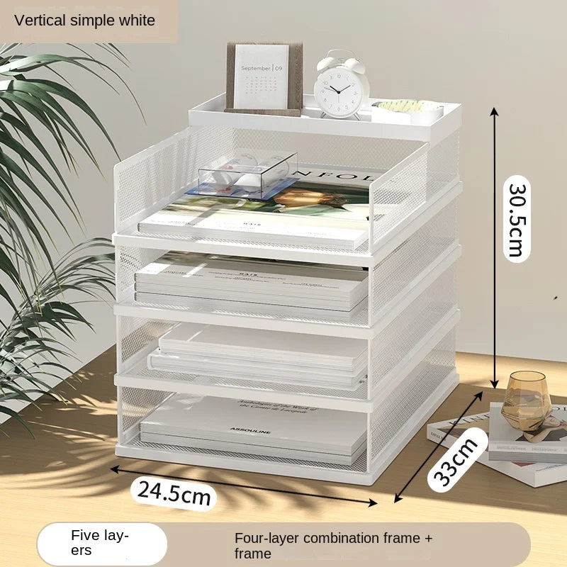 A3A4 Desktop File Rack Metal File Box Storage Rack Metal Multi-Layer File Folder Rack Storage Box Bookshelf Office Data Sorting