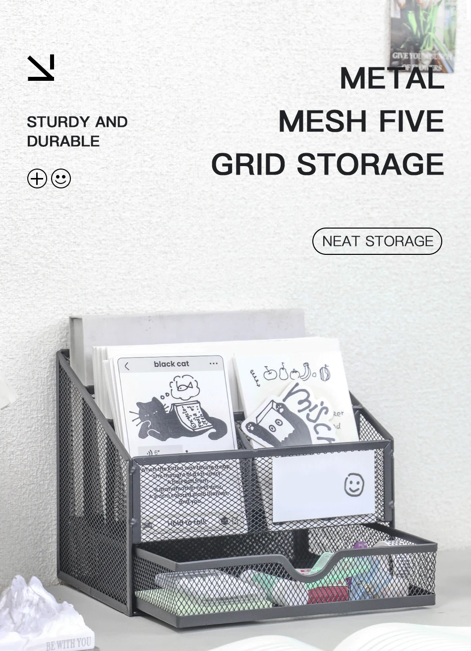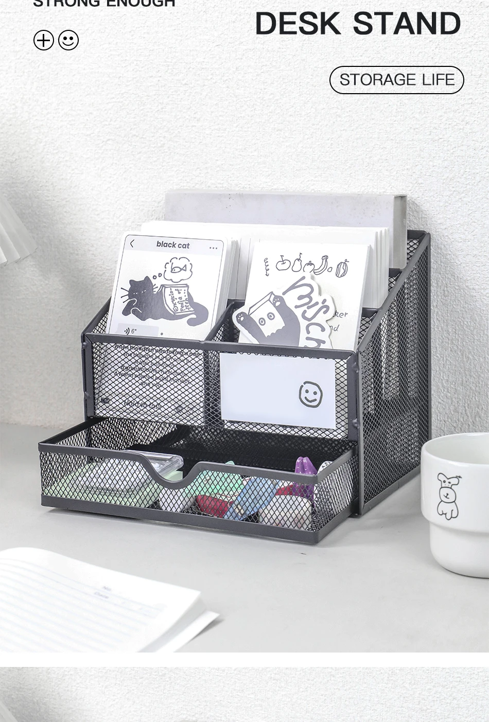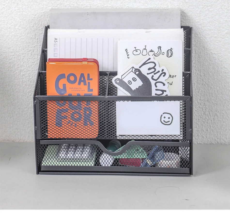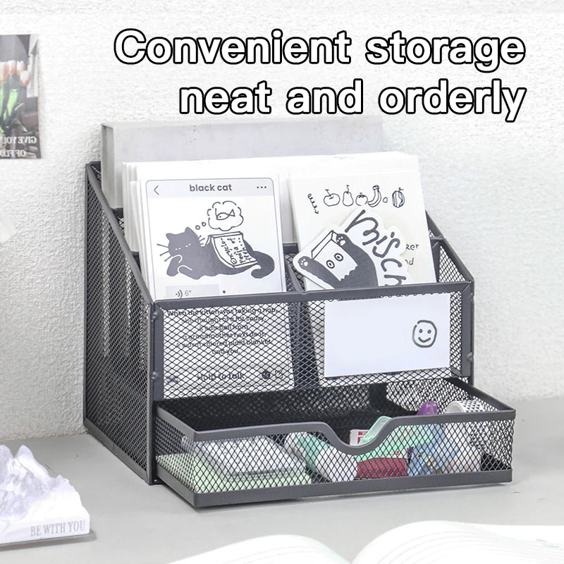 Desk Organizer Black Desk Accessories Office storage Desktop pen holder with drawer Home workspace