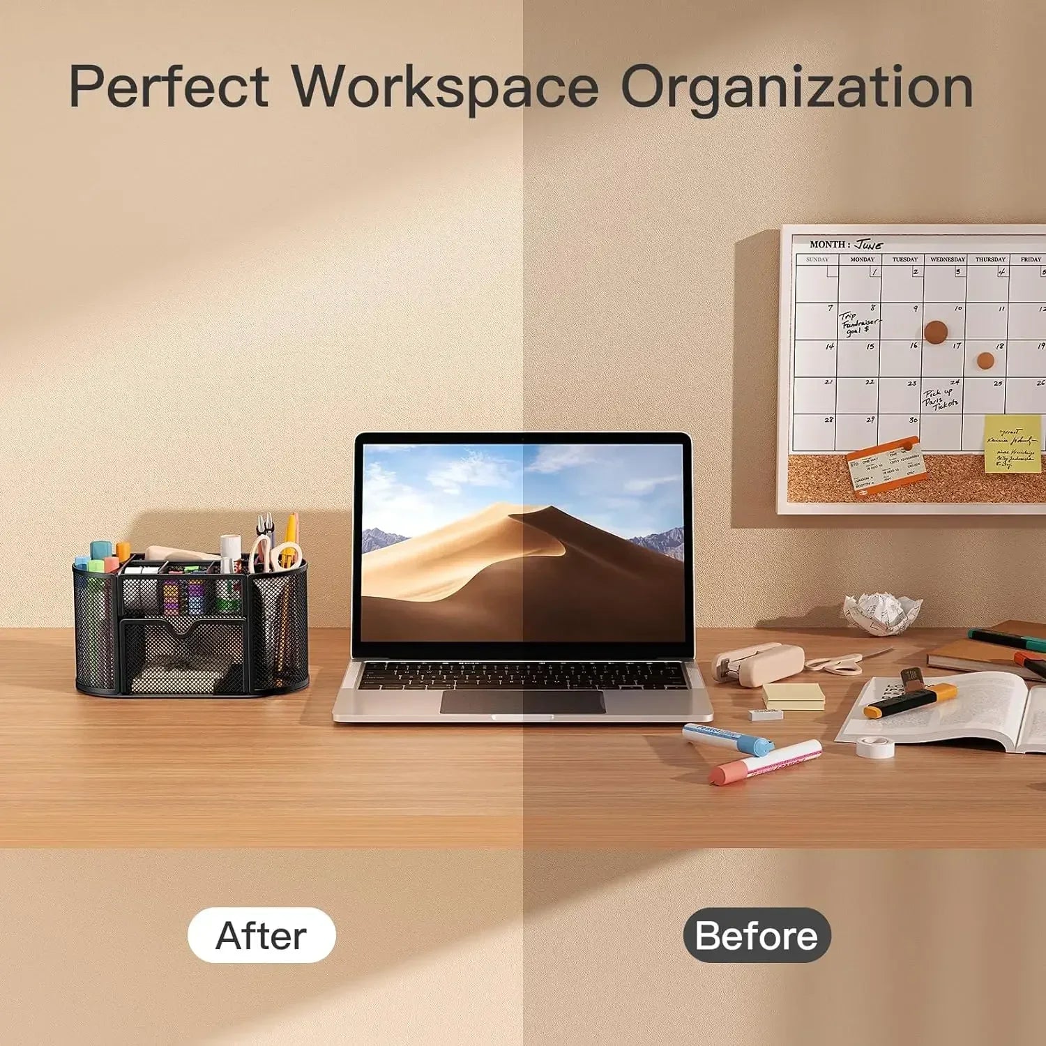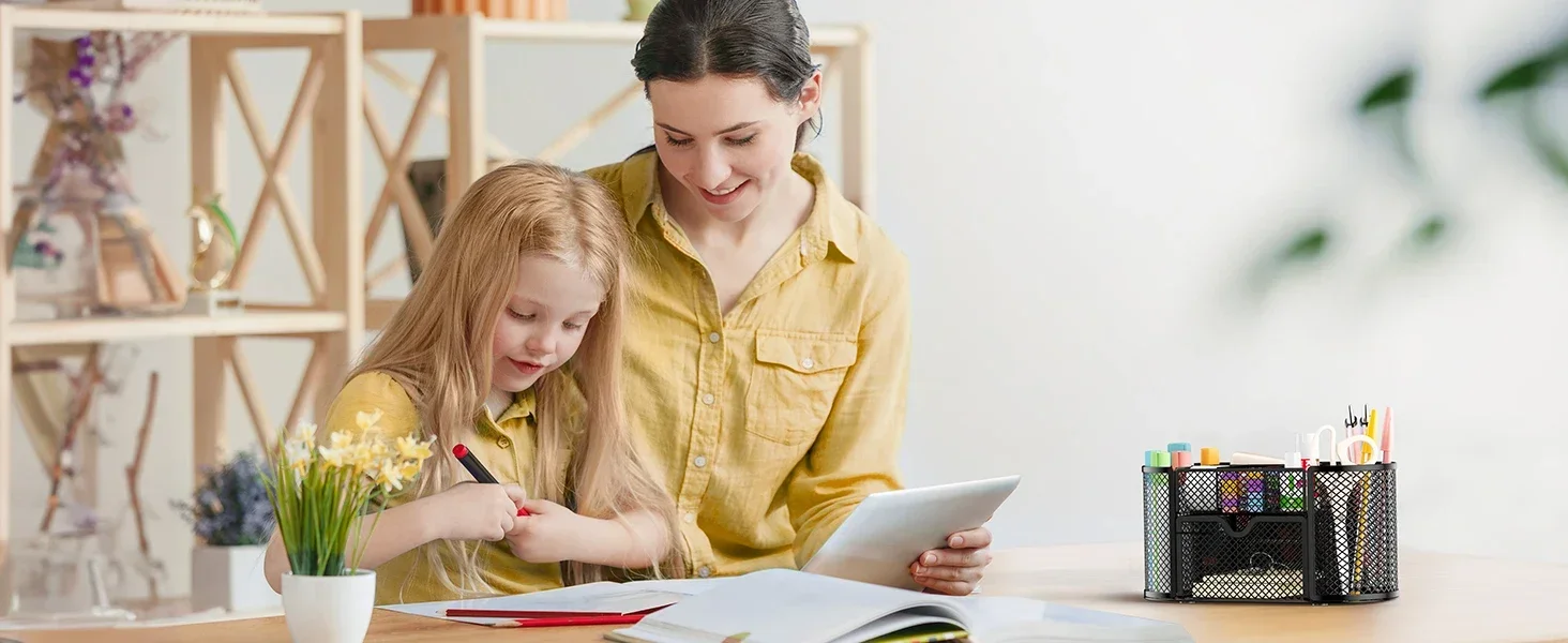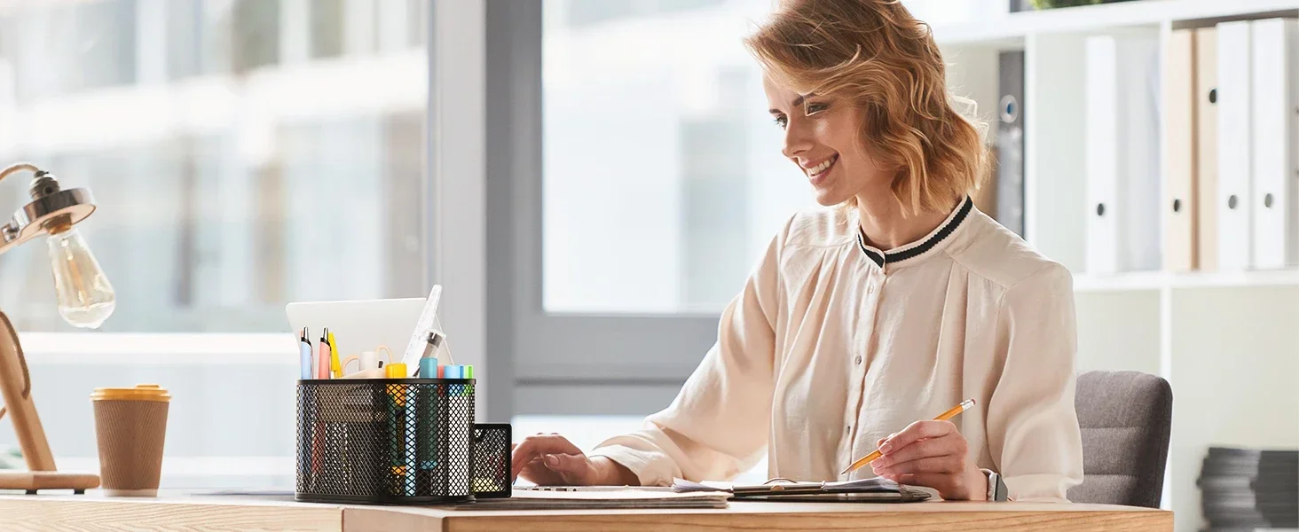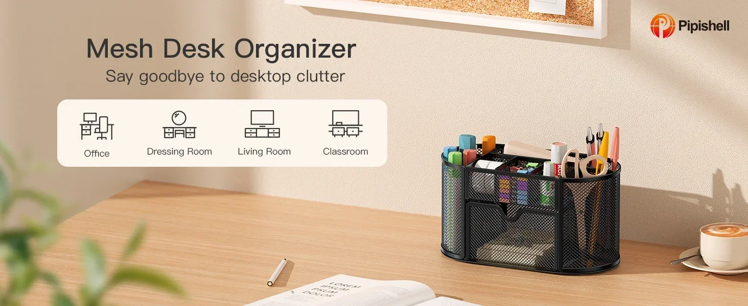 Pipishell mesh multi-functional stationery organizer's efficient layout keeps your workspace looking tidy and gives you easy access to whatever you need.