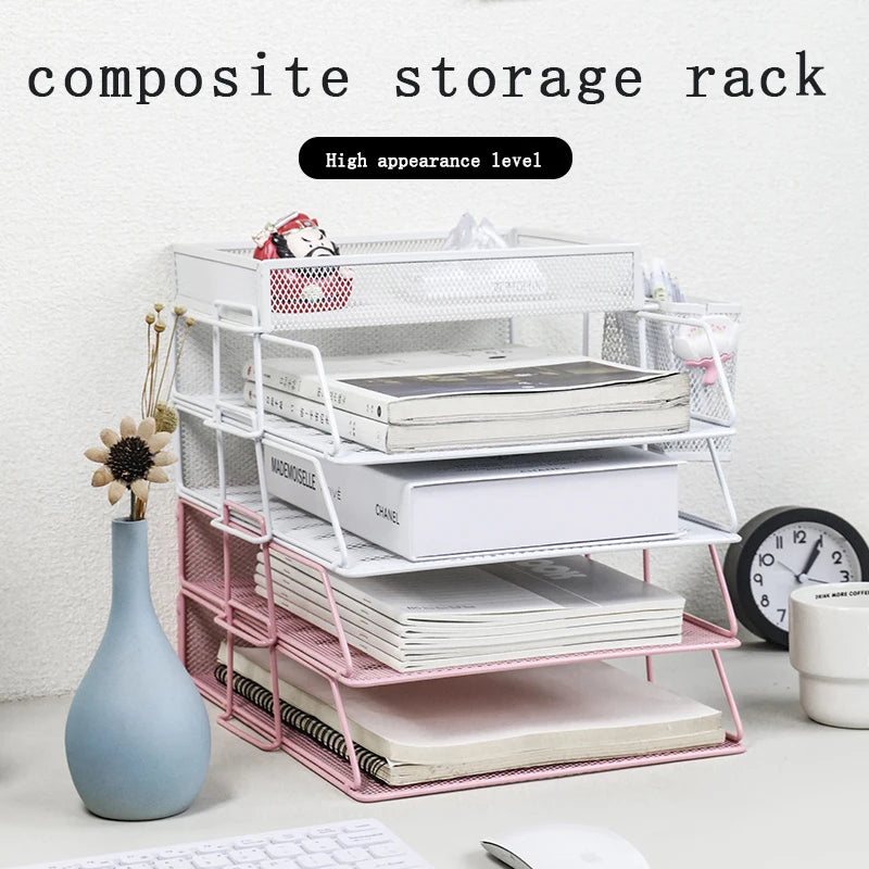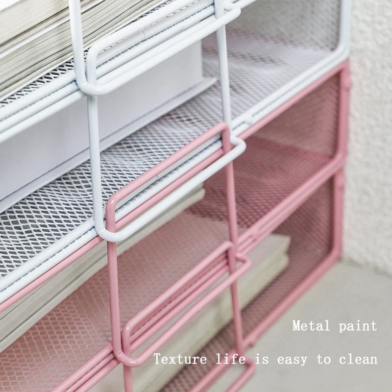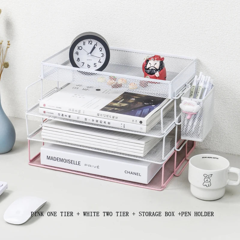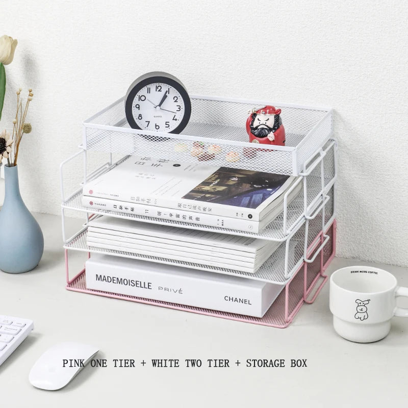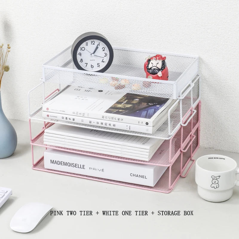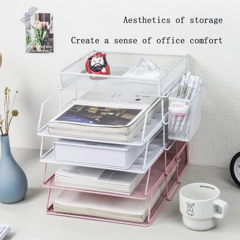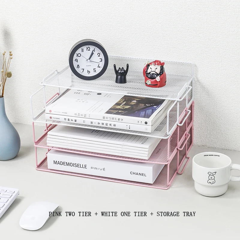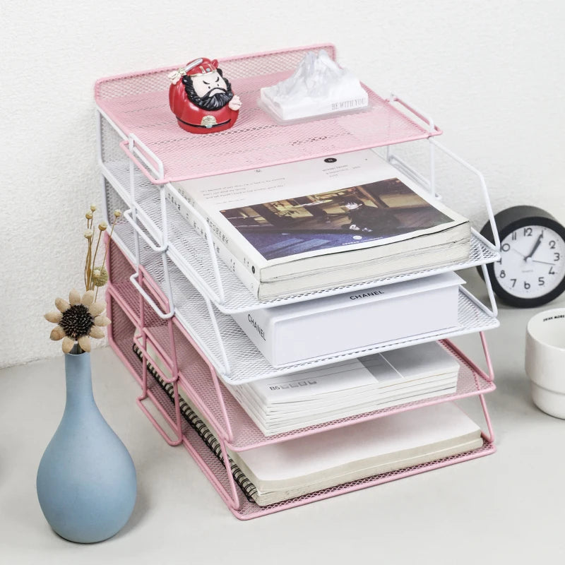 Desk organizer - Stackable paper tray,4 layer pink desk organizer,5 tray metal paper organizer, suitable for desk, file organize