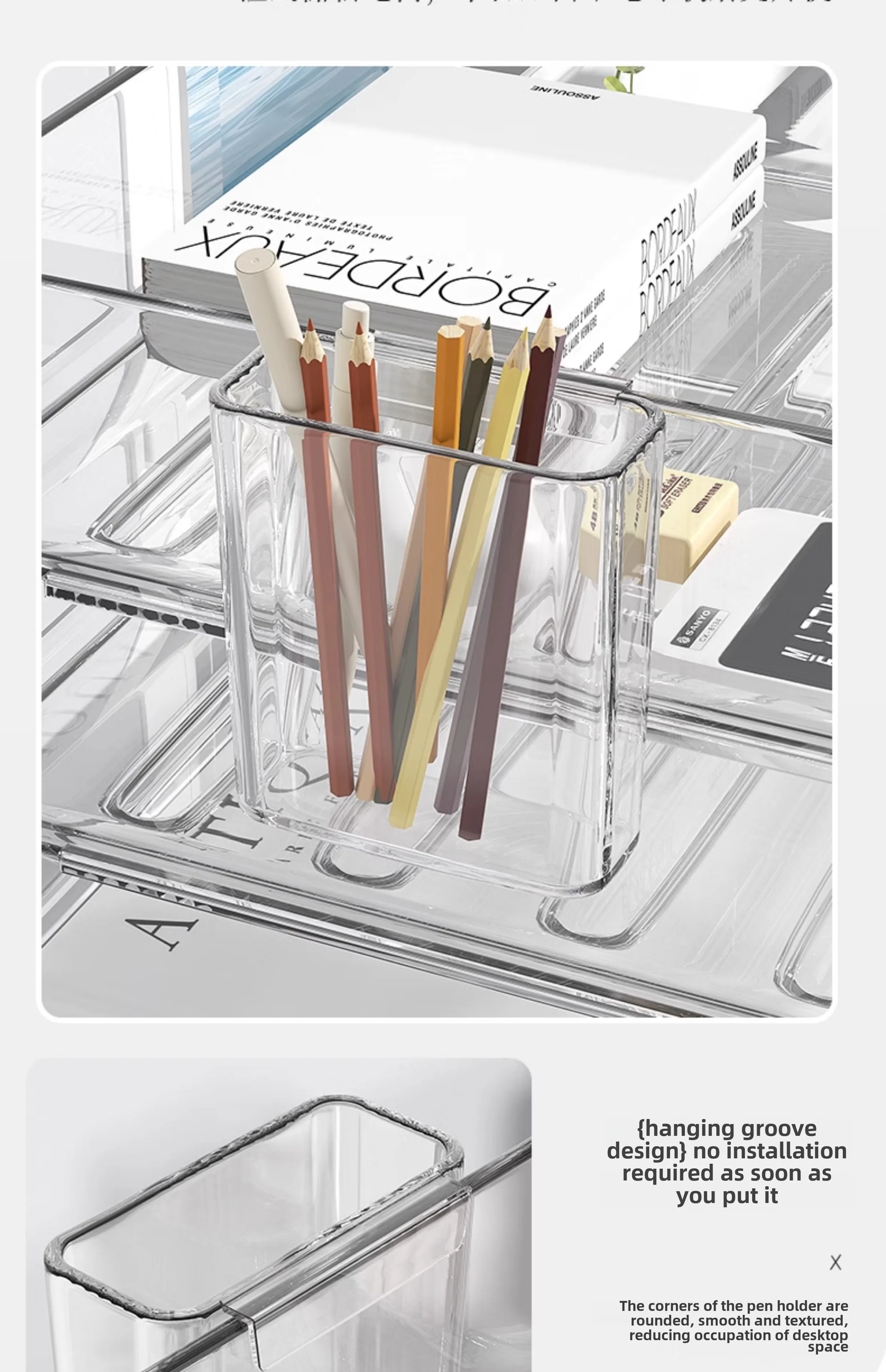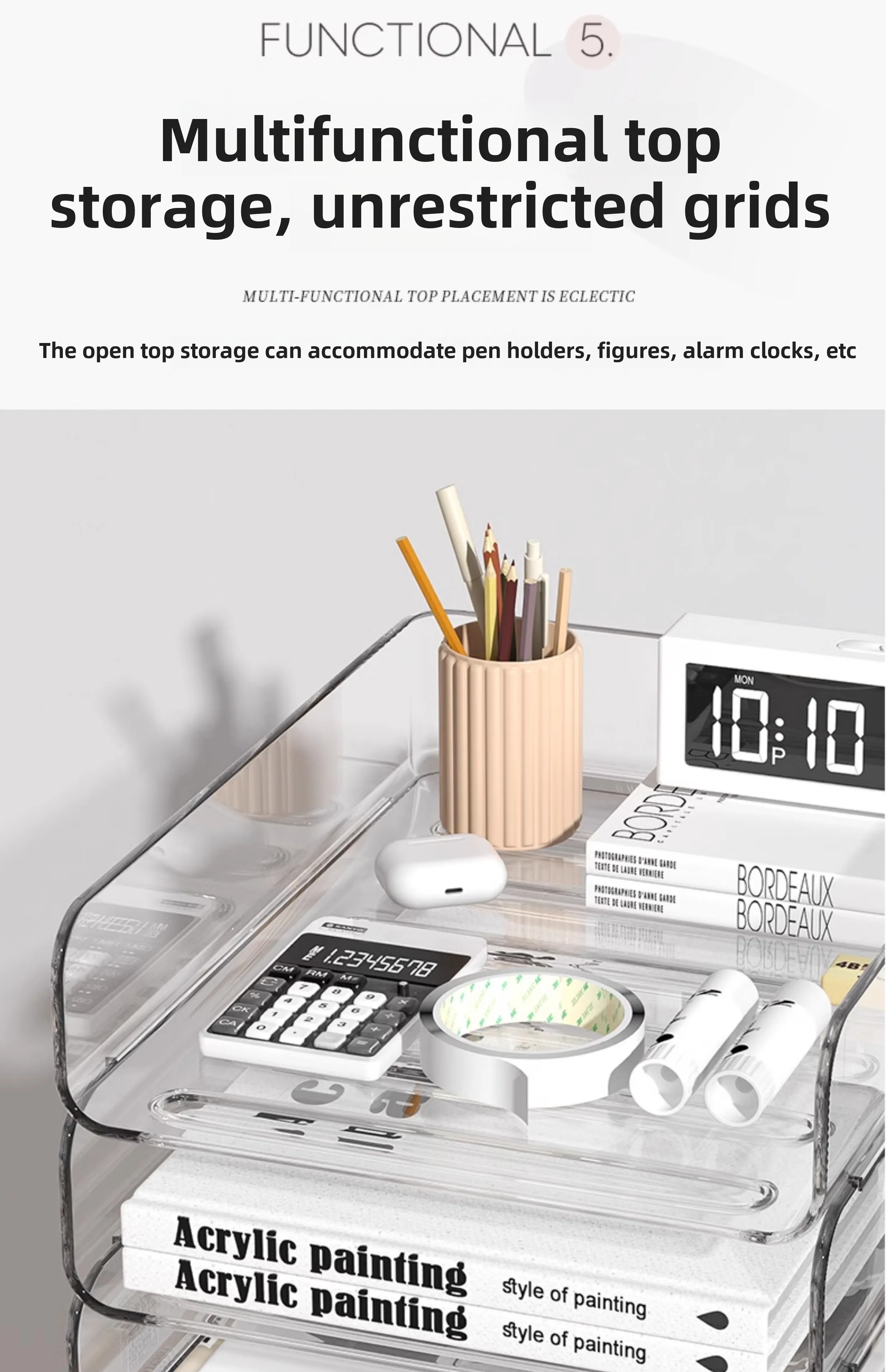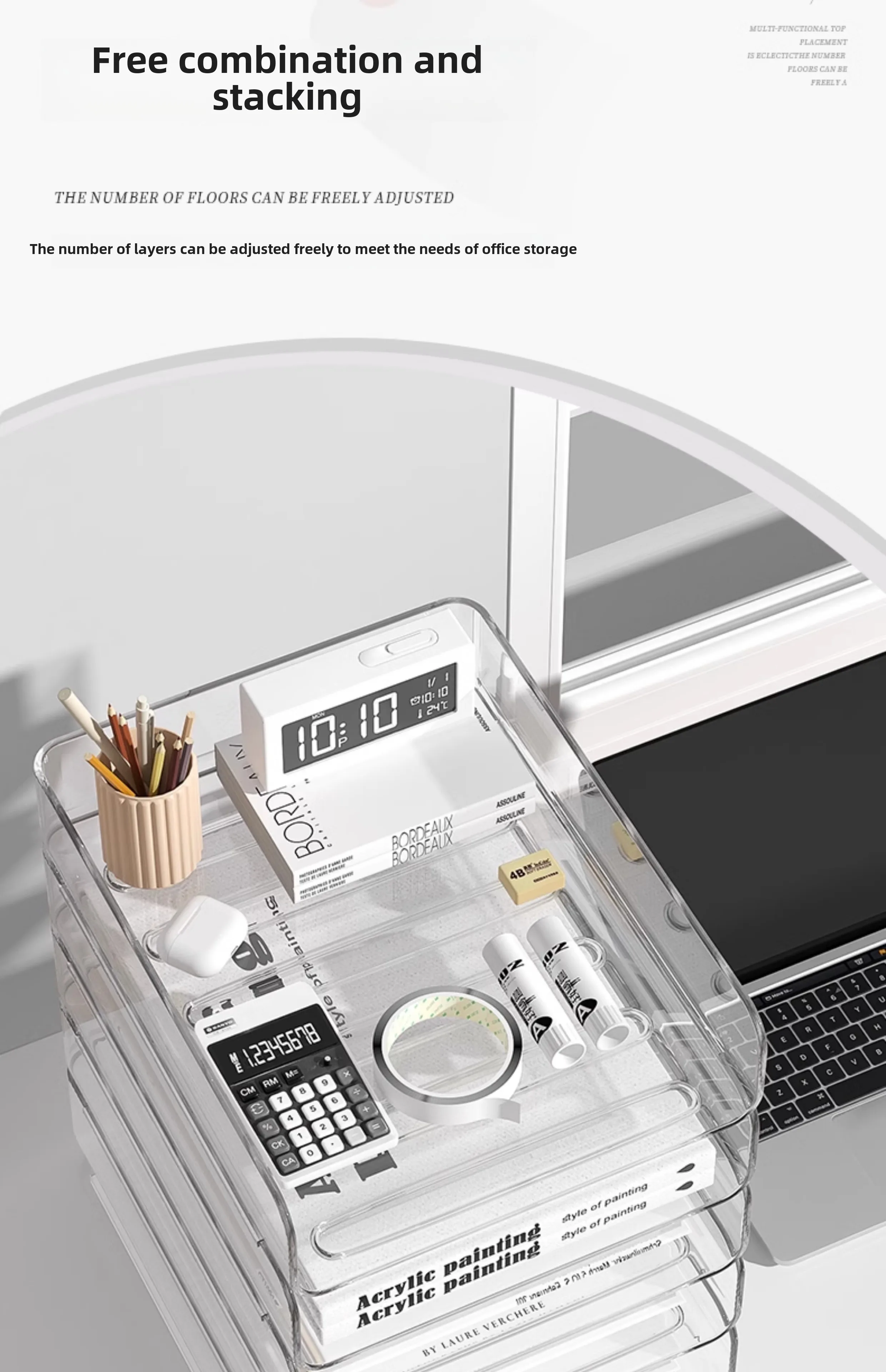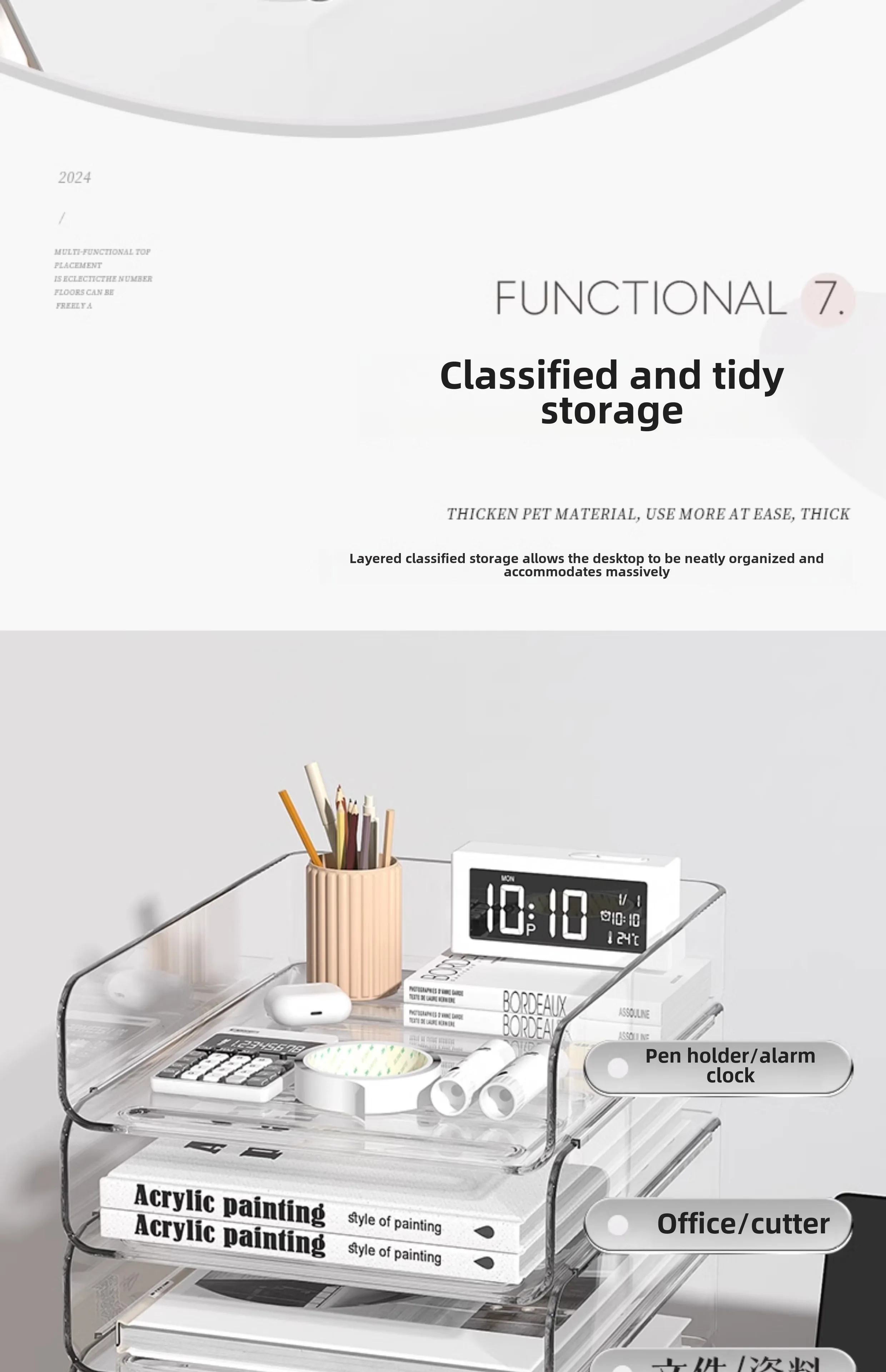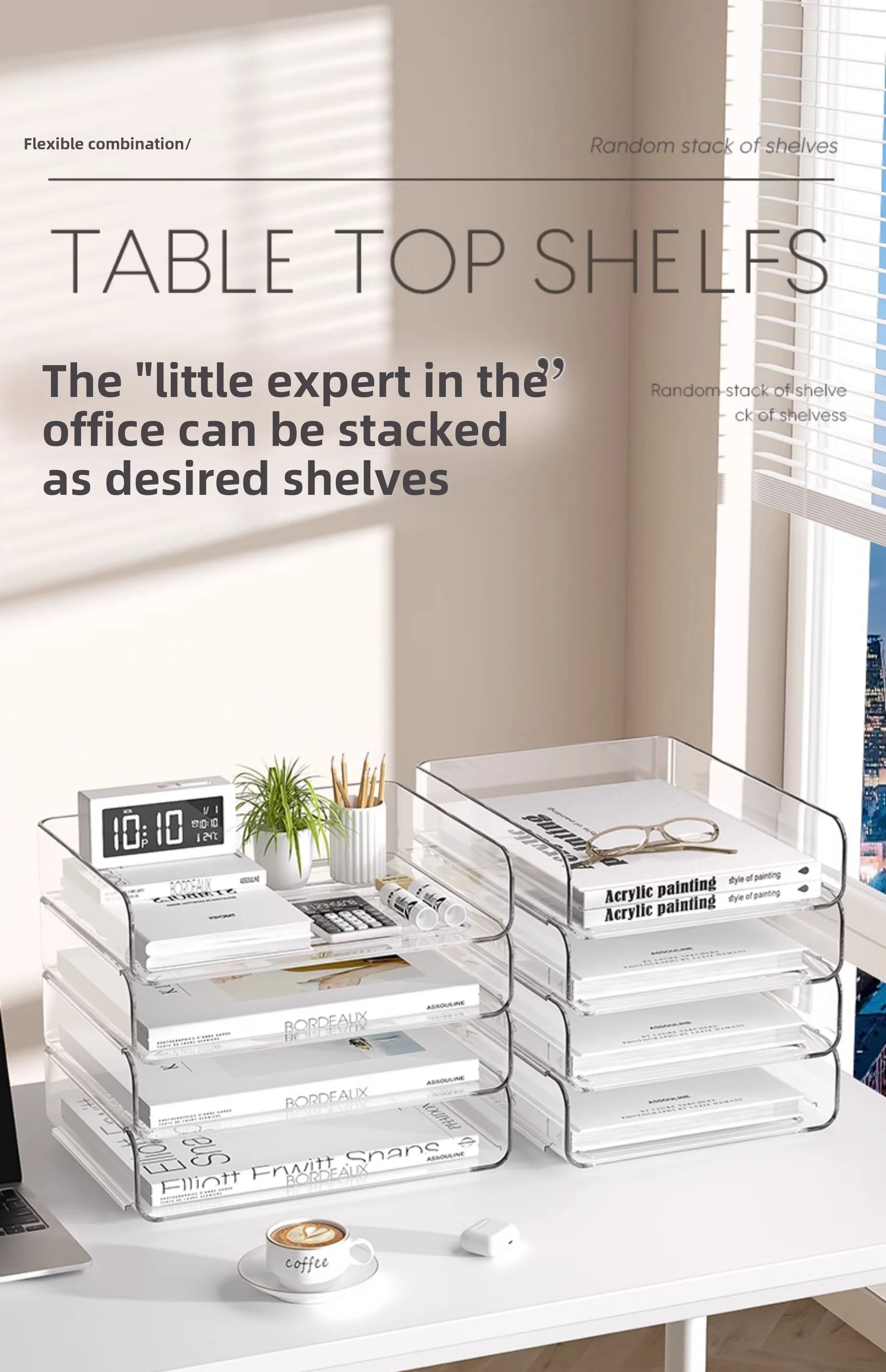 Desk Organizer with 2 Vertical File Holder, 4 Tier Stackable Paper Letter Tray File Organizer with Pen Holder,Desk Organizer