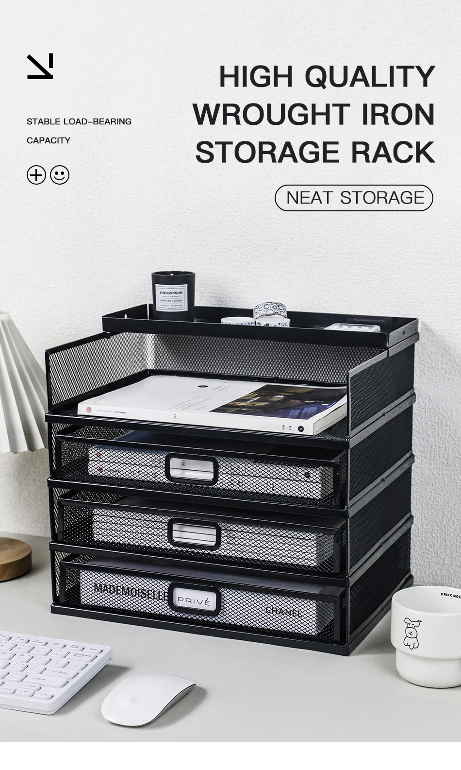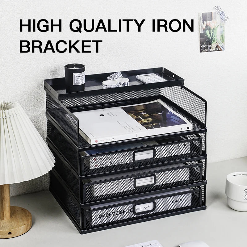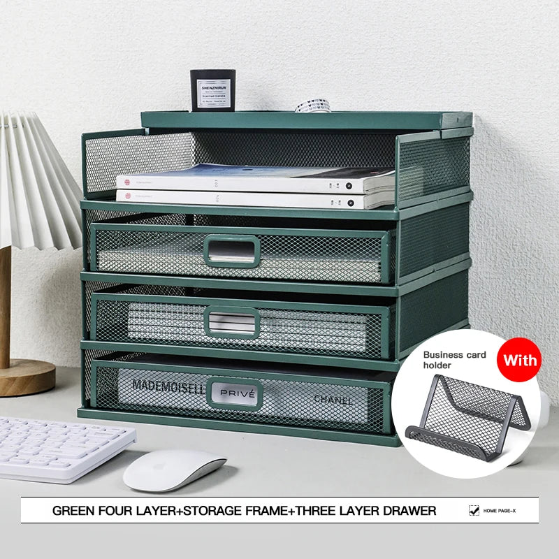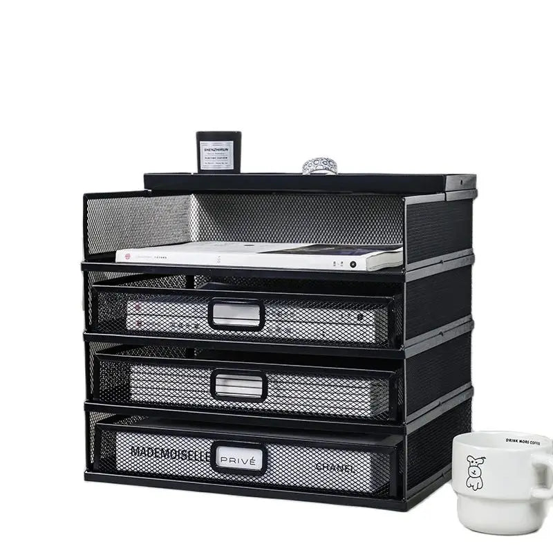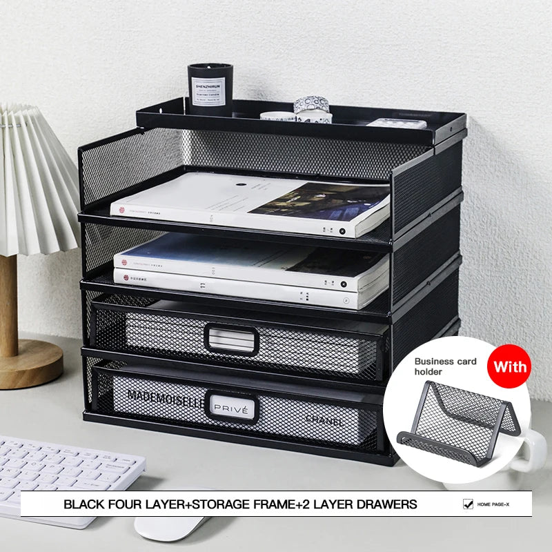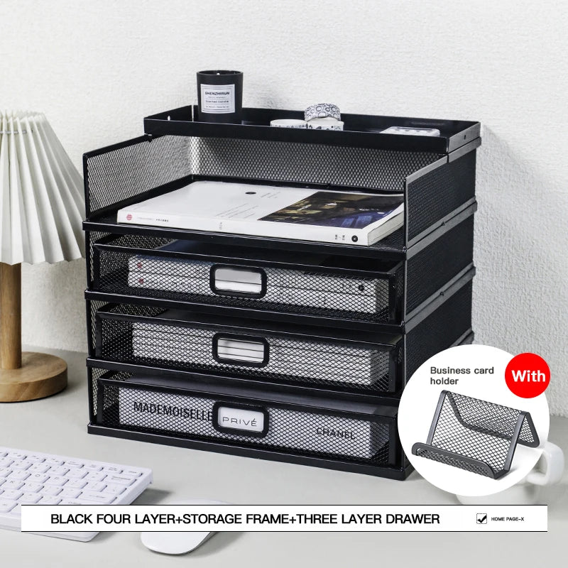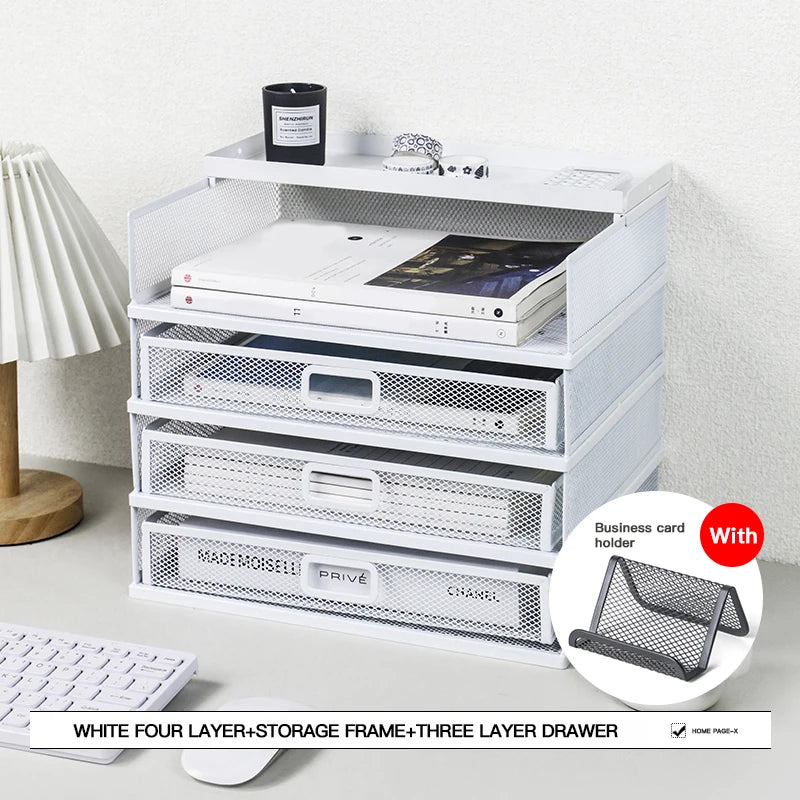 Desk storage rack with drawer, screen storage tray, multi-function classifier file rack, home office supplies storage