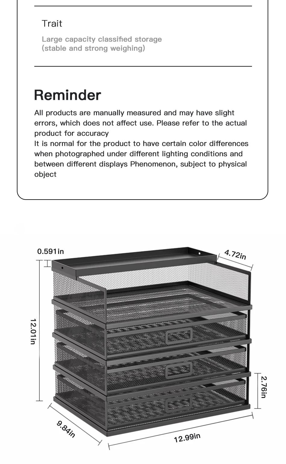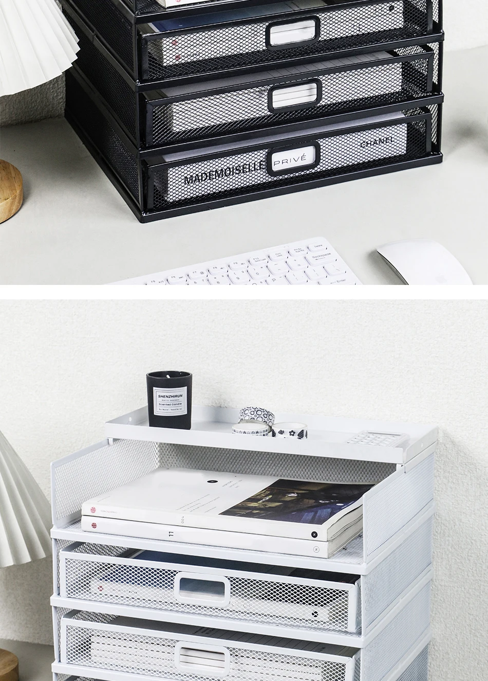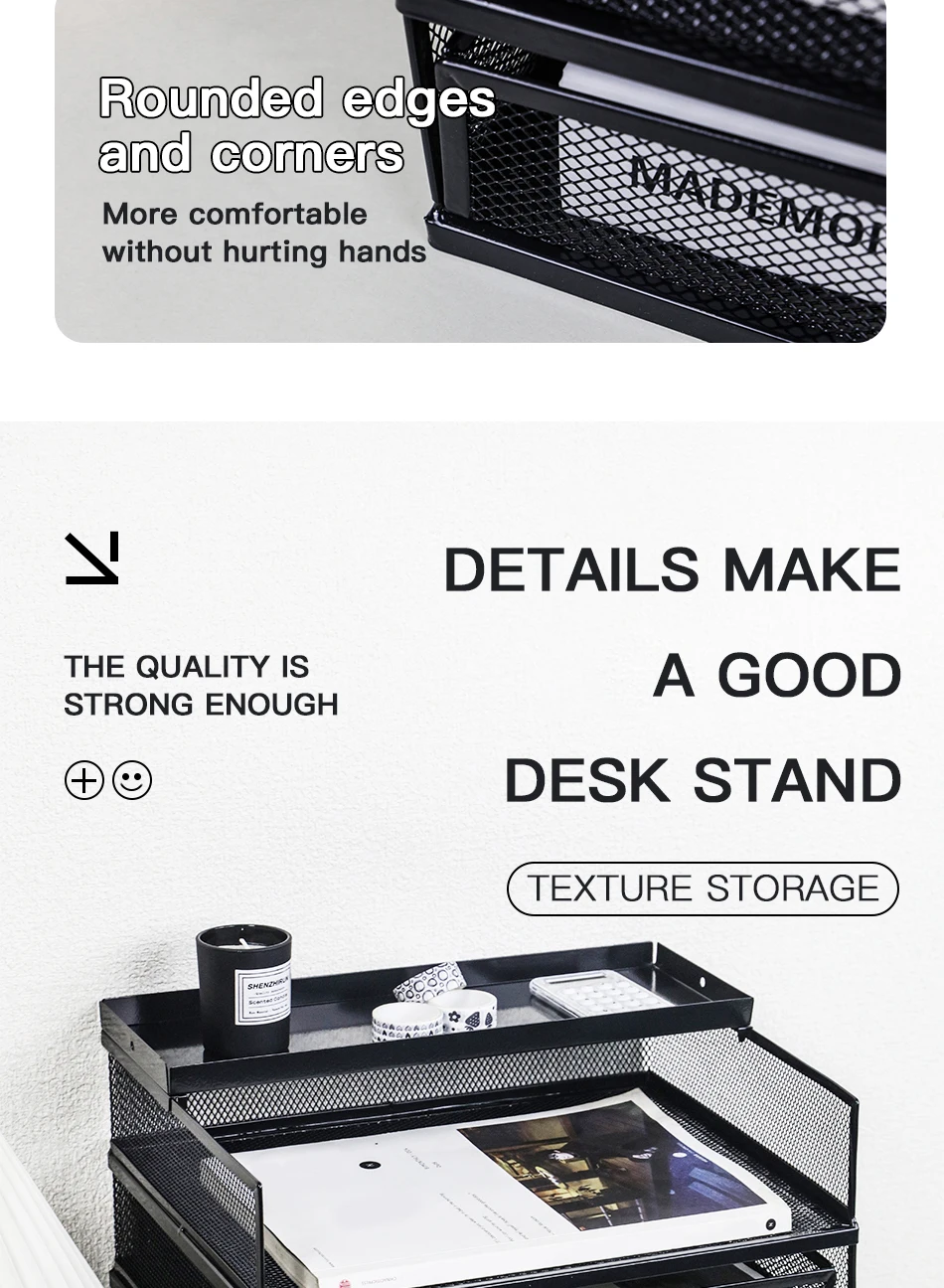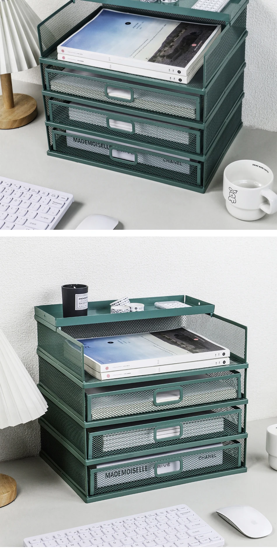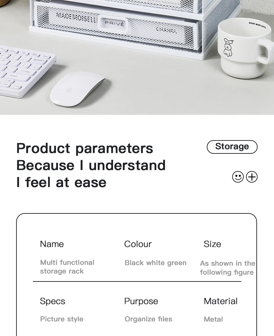Desk storage rack with drawer, screen storage tray, multi-function classifier file rack, home office supplies storage