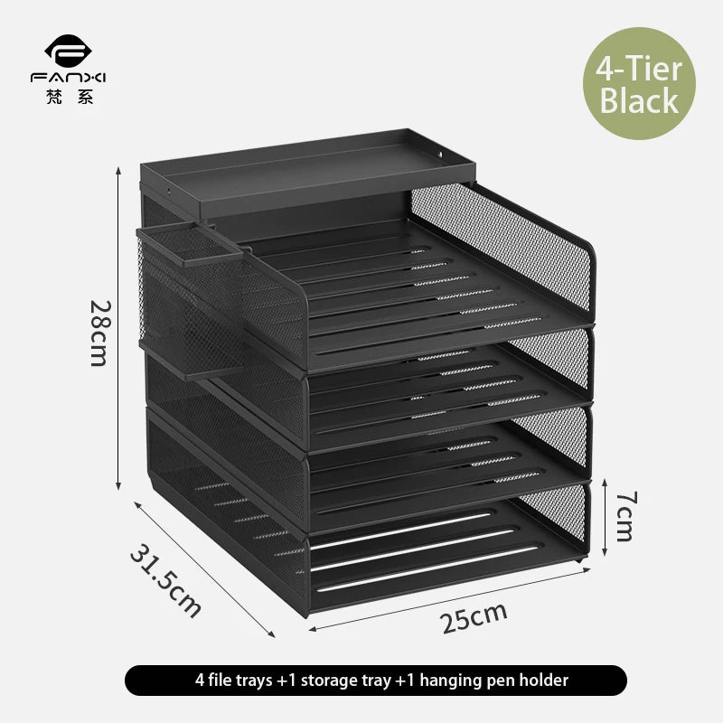 Desktop metal file tray Thickened metal tray Desktop file rack Metal file frame Office storage rack Paper storage for documents