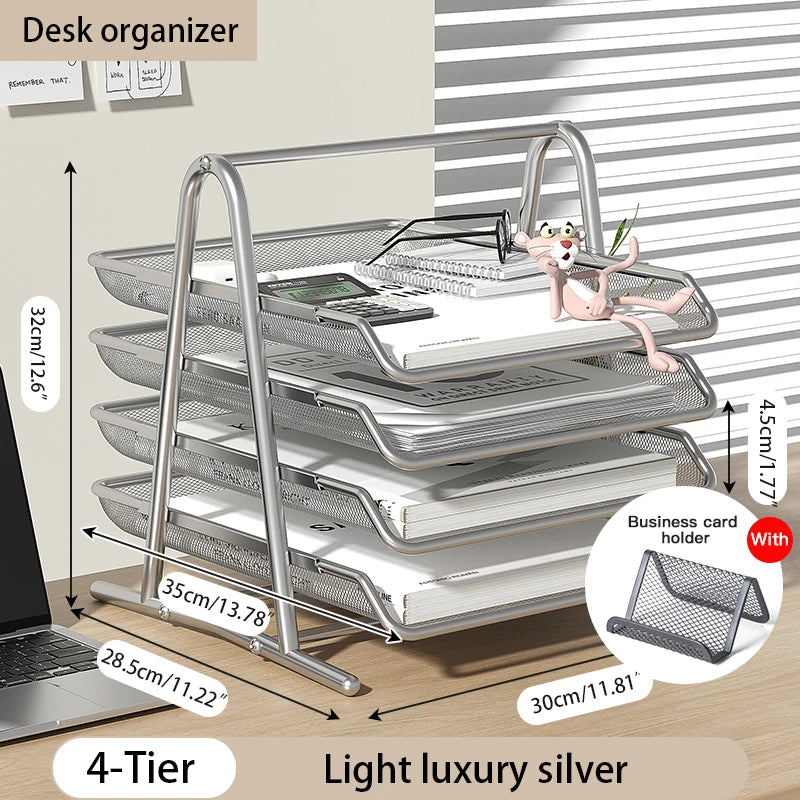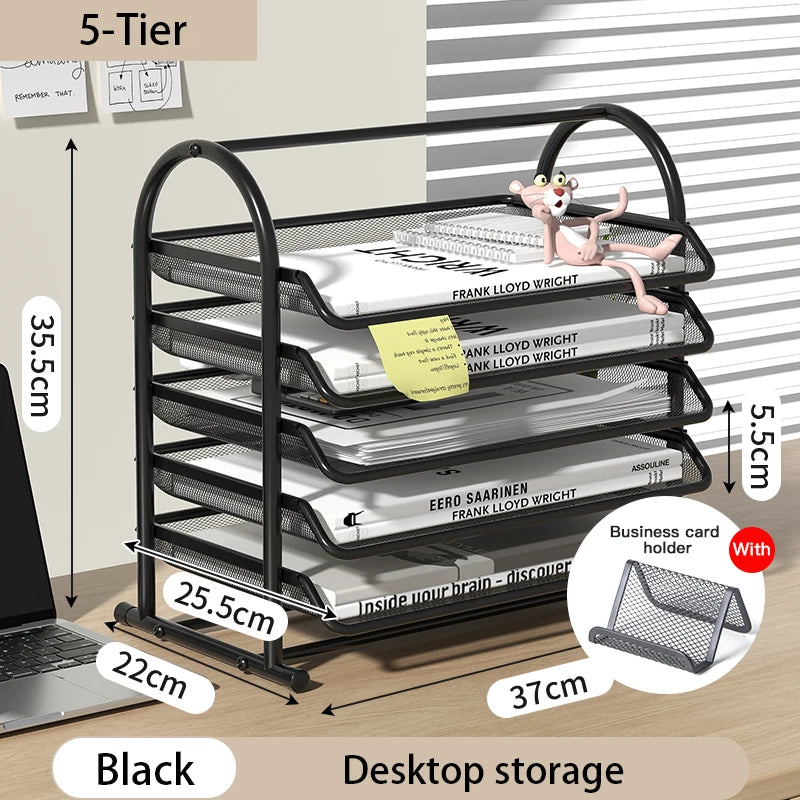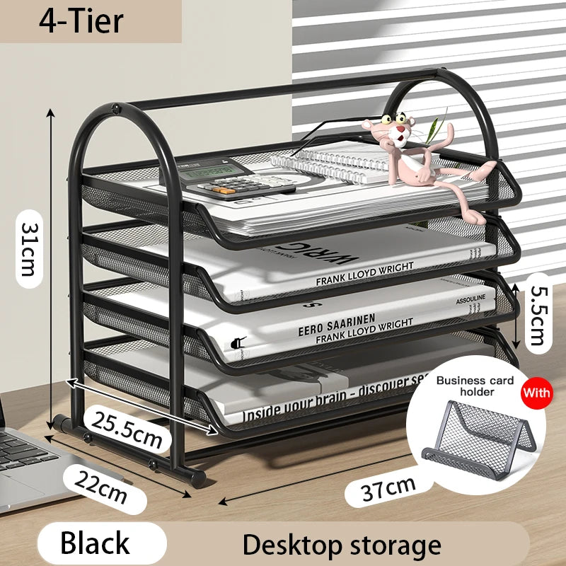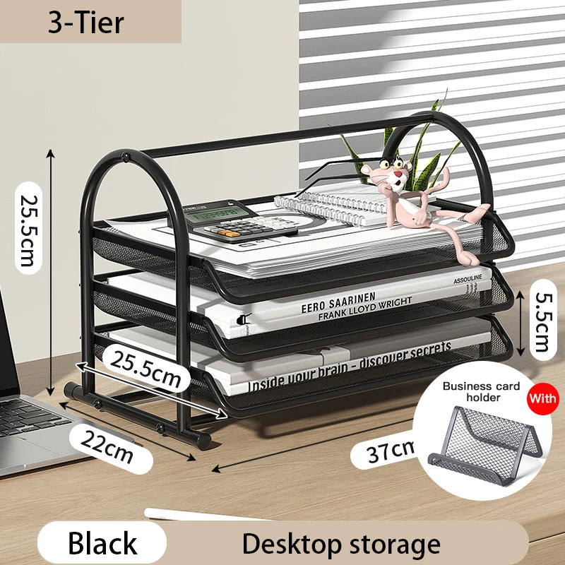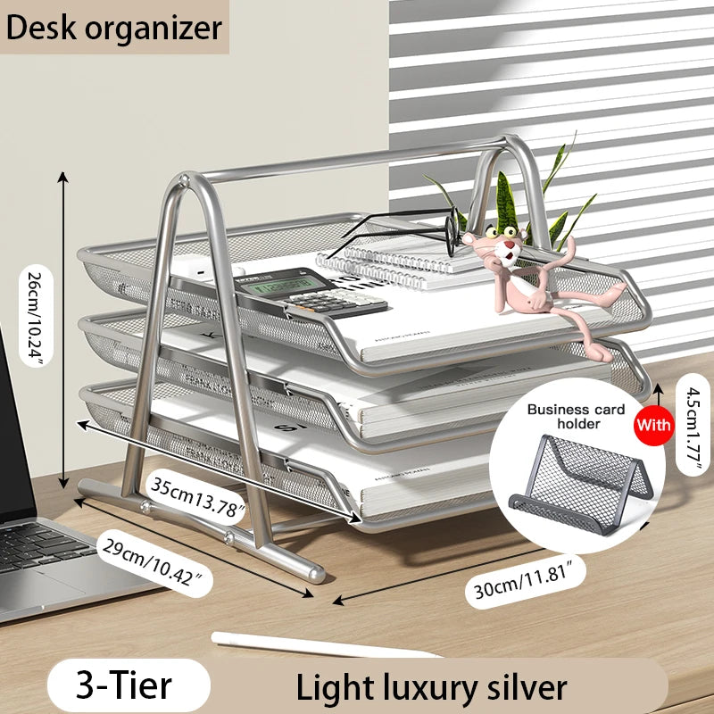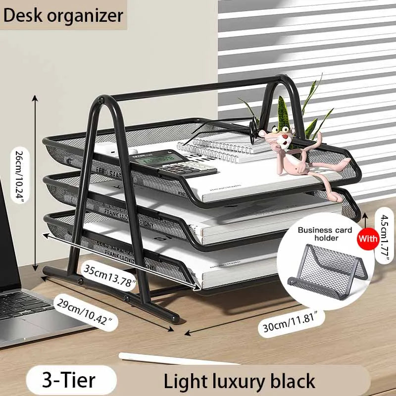Desktop paper tray with 3-tier desktop file manager, office storage and stacking file rack, file organizing