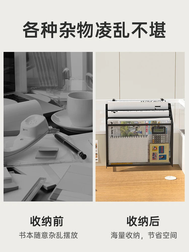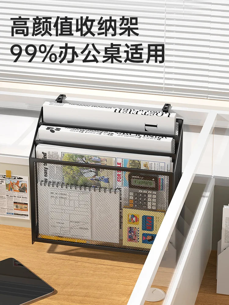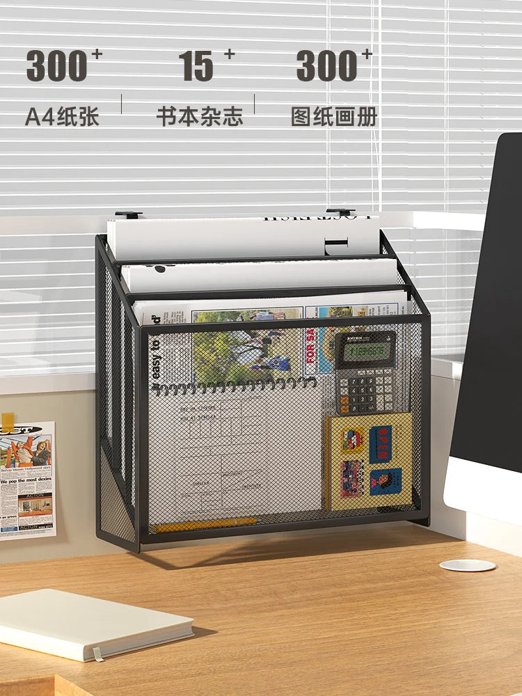 Folder storage rack, office supplies organizing rack, home desktop, multi-layer file frame, office metal book stand