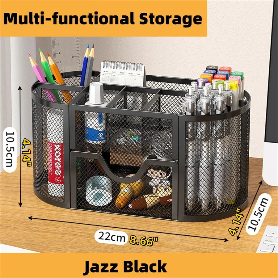 Mesh Desk Organizer, Desk Accessories & Workspace Organizers with Drawers, Pencil Holder for Desk with 9 Compartments for Office