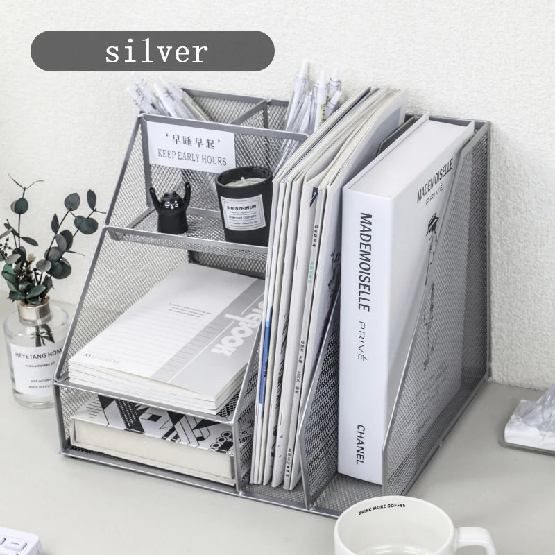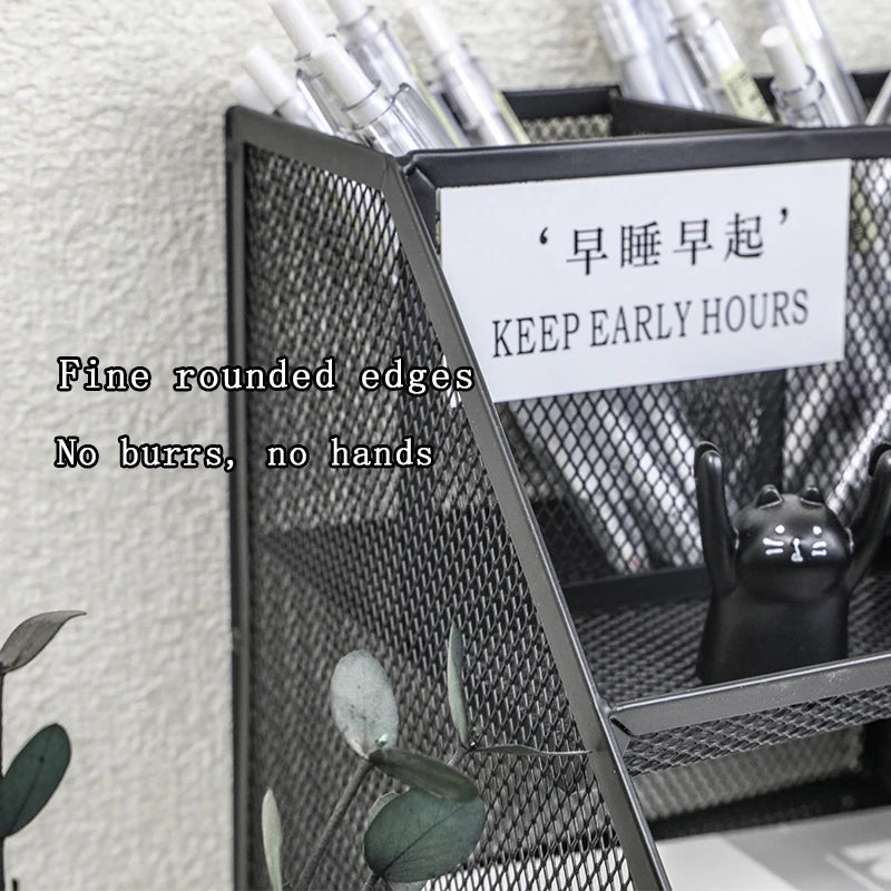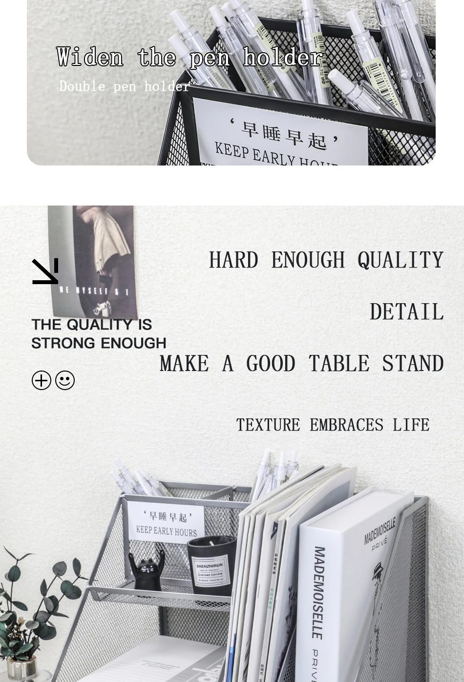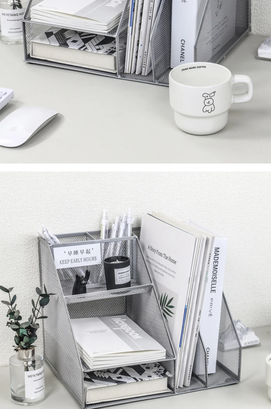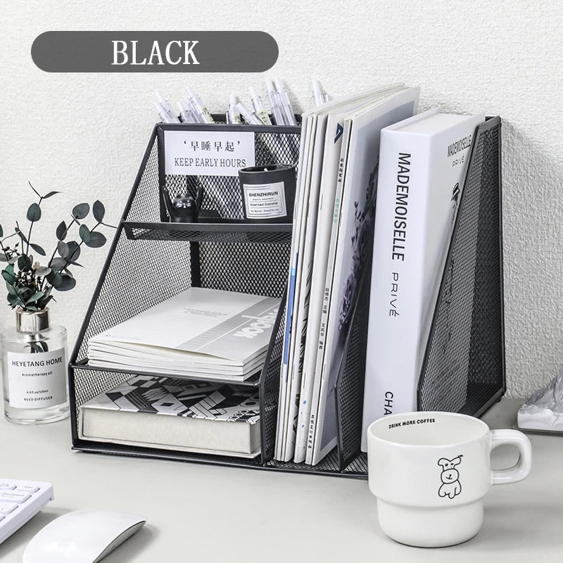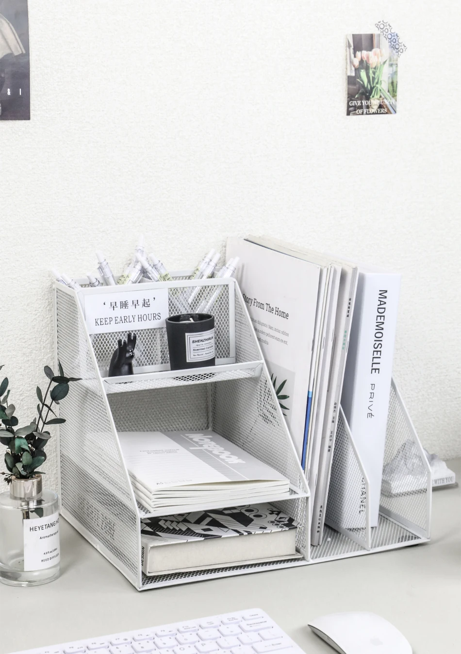 Mesh storage frame multi-functional layer desktop file letter tray for folders, mail, stationery, desk accessories White black