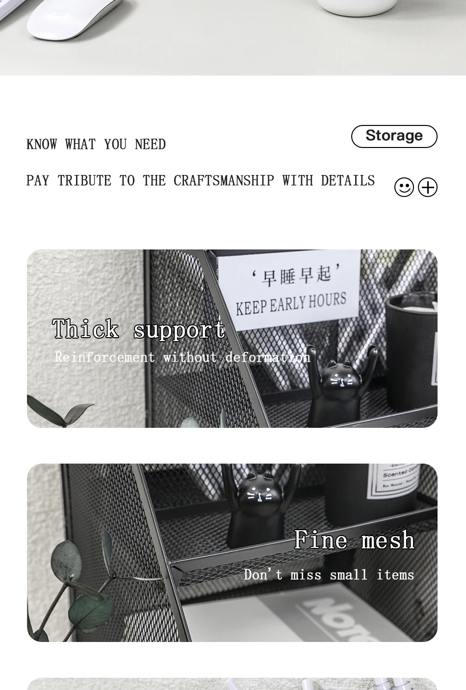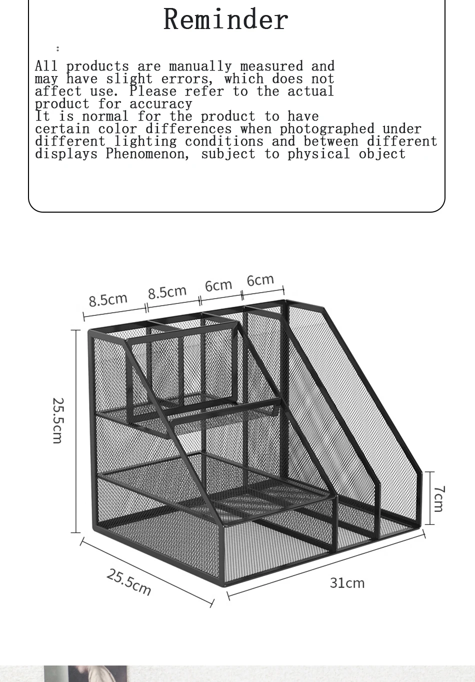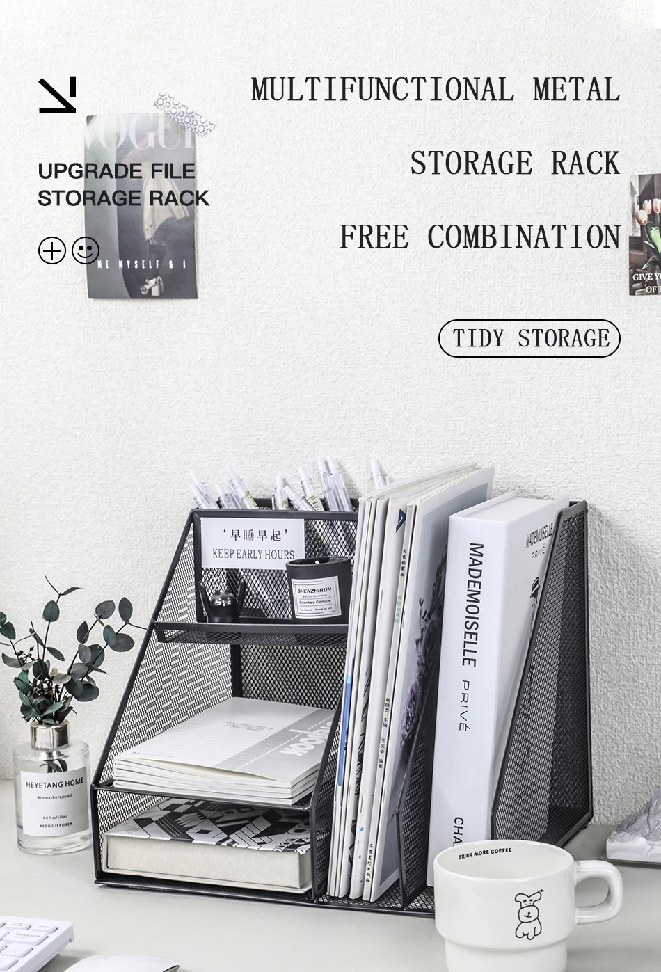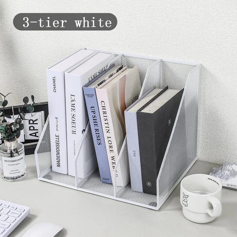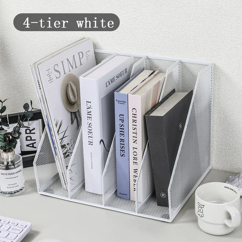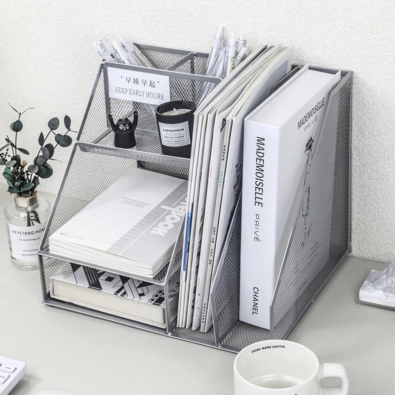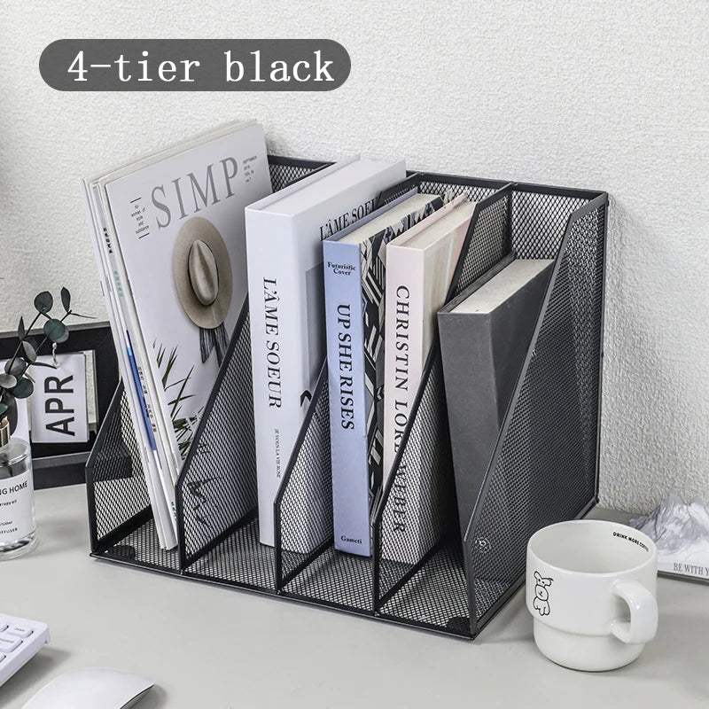 Mesh storage frame multi-functional layer desktop file letter tray for folders, mail, stationery, desk accessories White black
