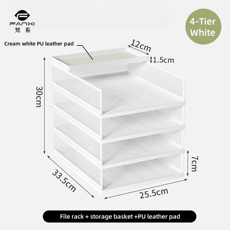 Metal File Stack Stackable Desk Organizer Office Desktop Organizer Multilayer File Tray with a Hanging Pen Holder Desk Organizer