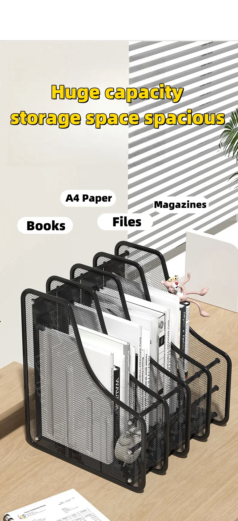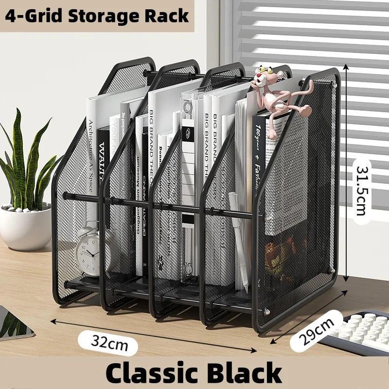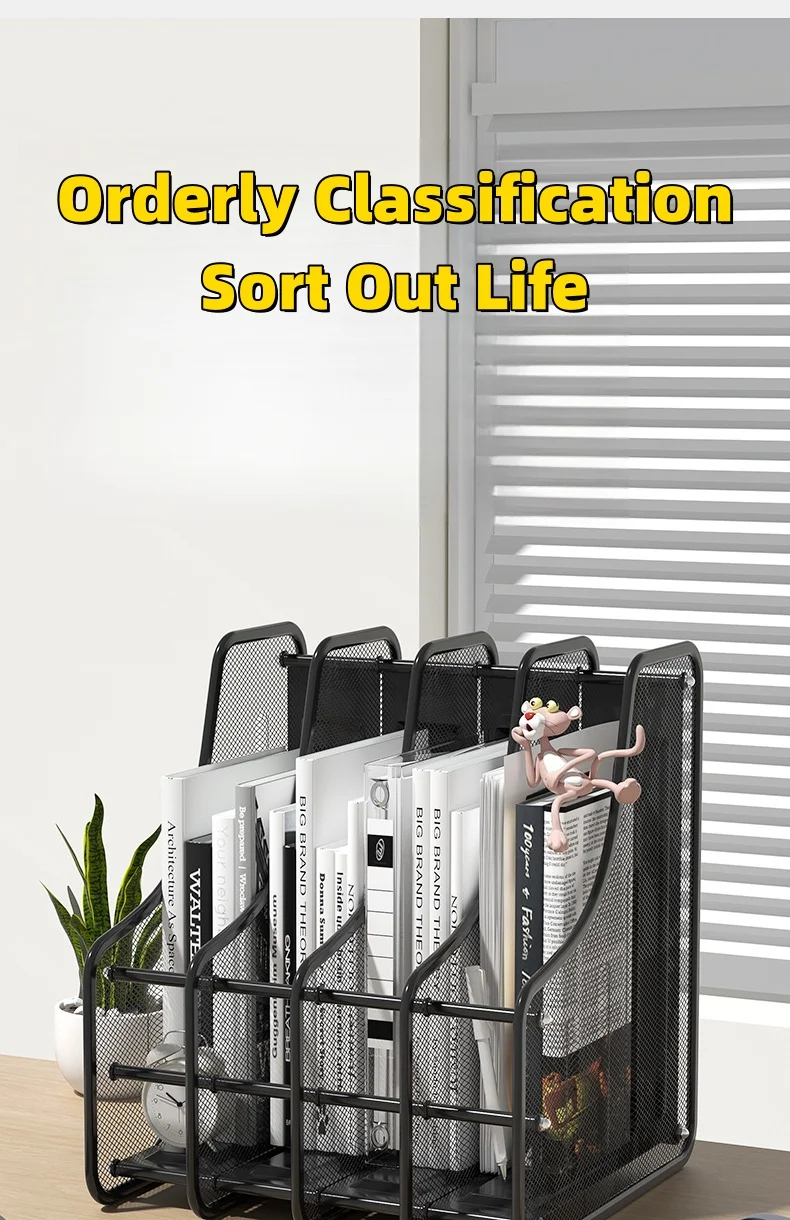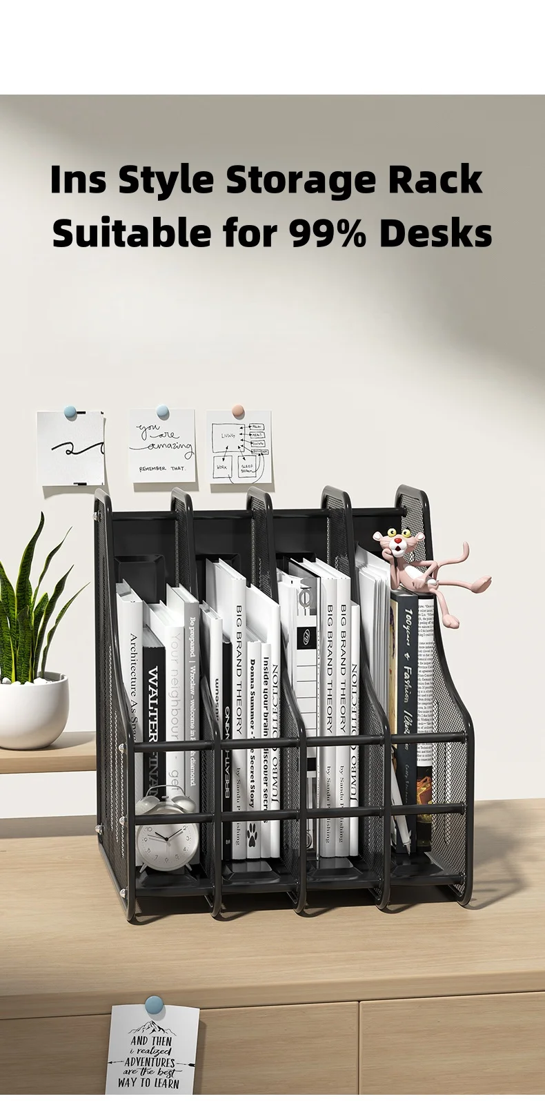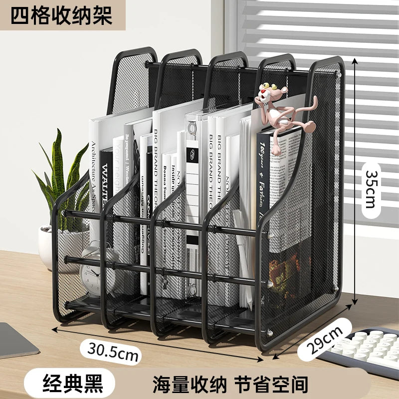 Metal Iron Mesh Quadruple-Column File Rack Four-Gear Bookshelf Data Rack Desktop File Box Four-Grid Metal Multi-Layer File