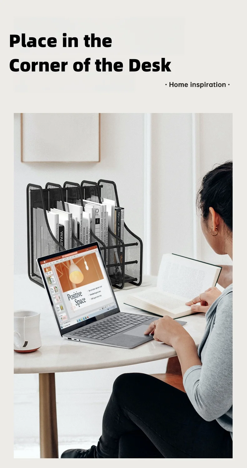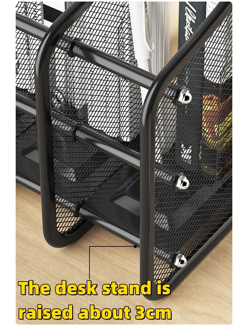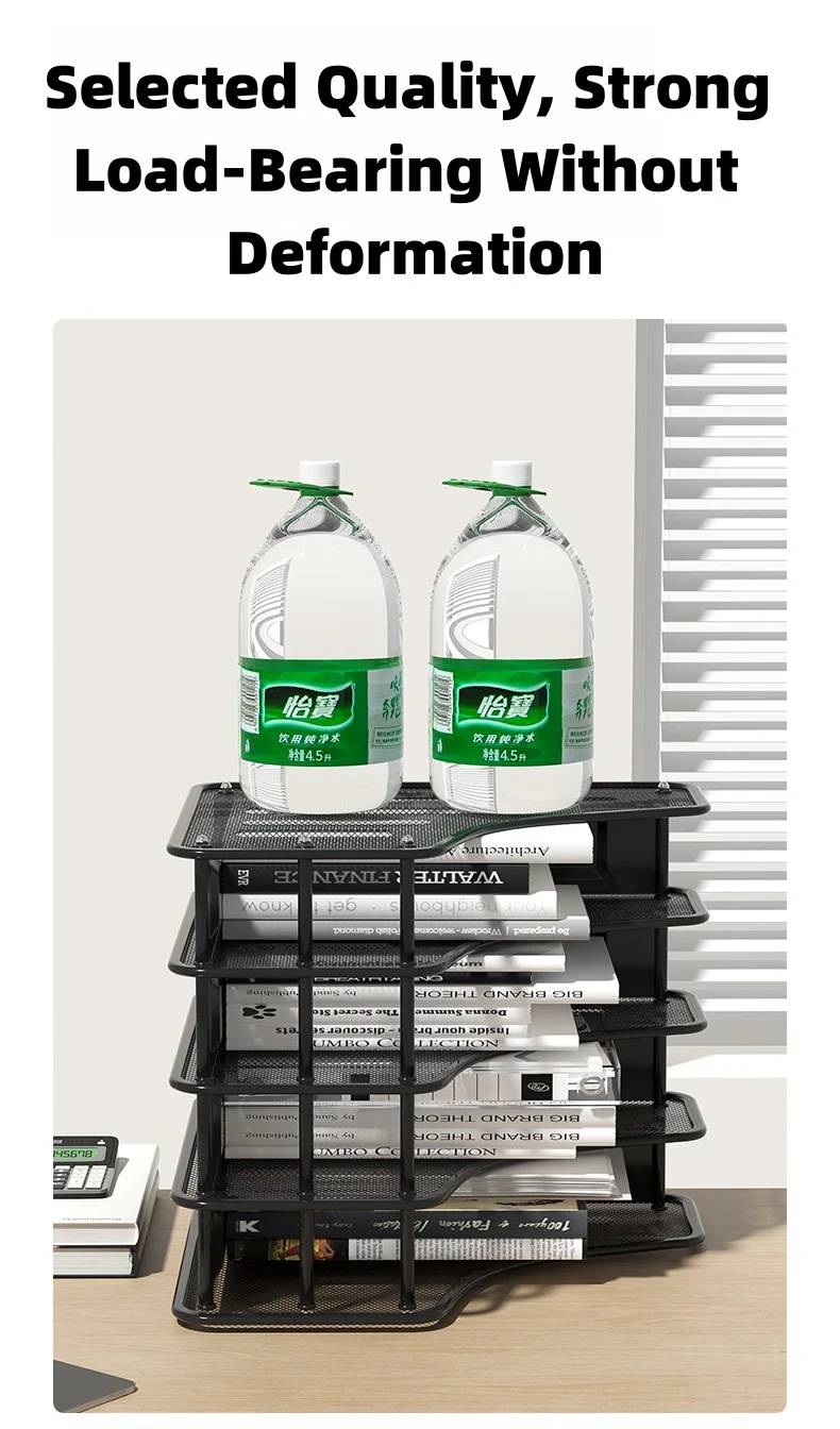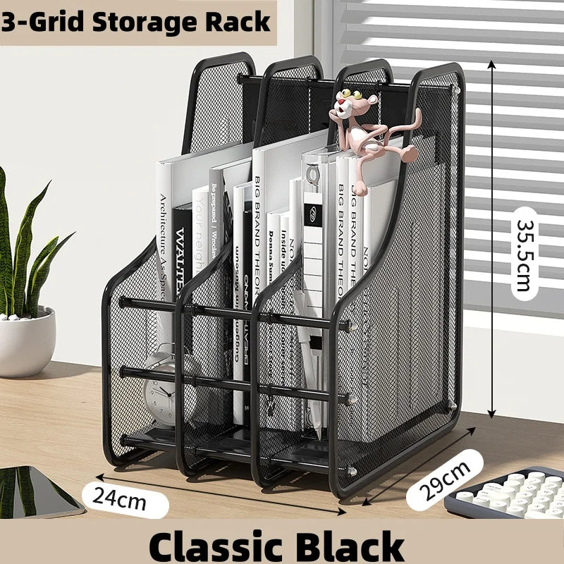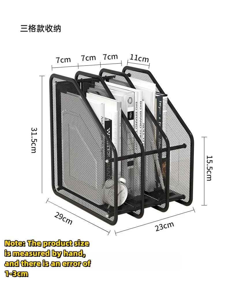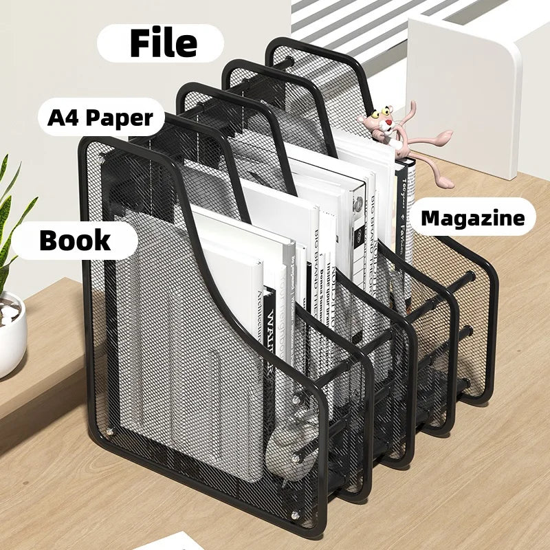 Metal Iron Mesh Quadruple-Column File Rack Four-Gear Bookshelf Data Rack Desktop File Box Four-Grid Metal Multi-Layer File