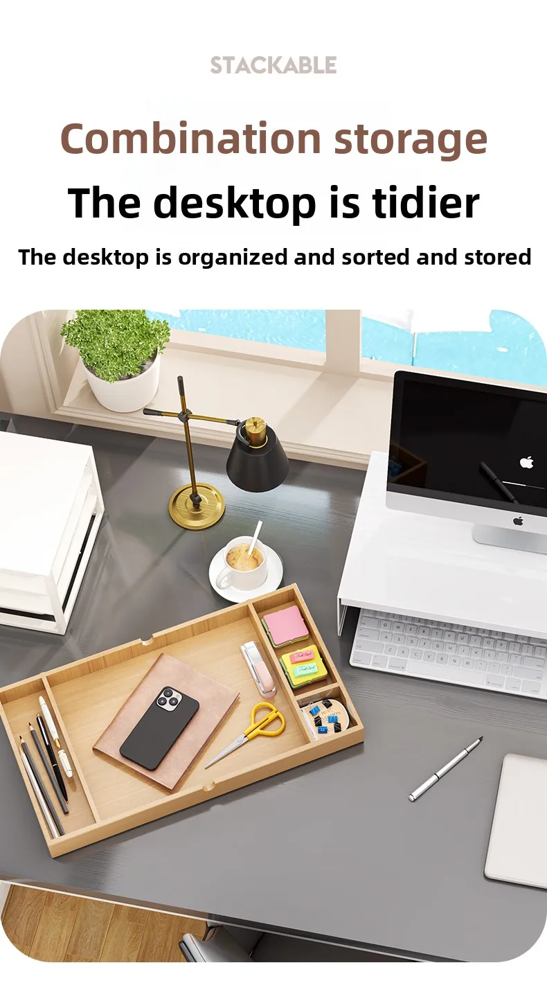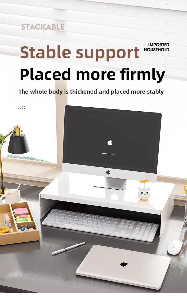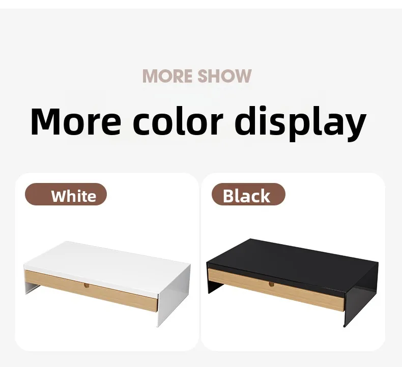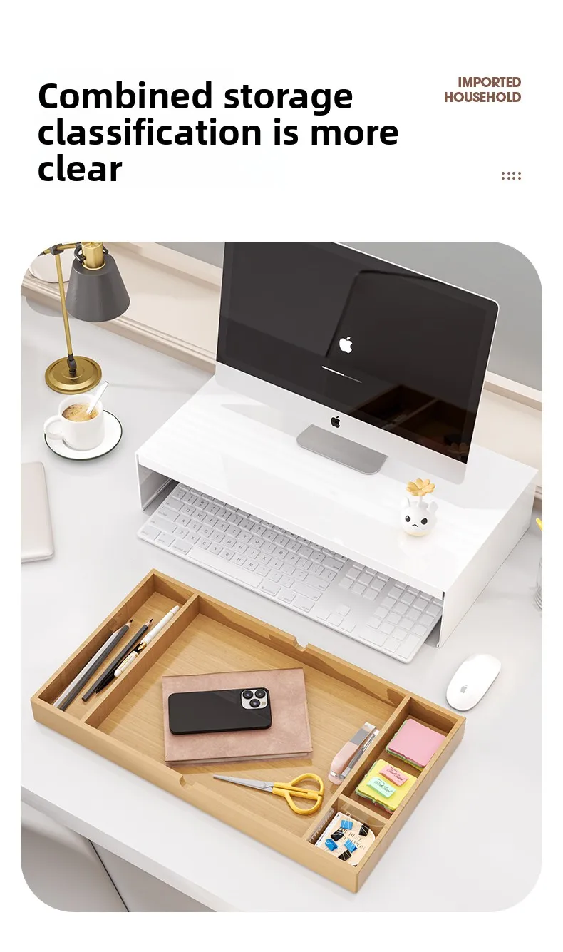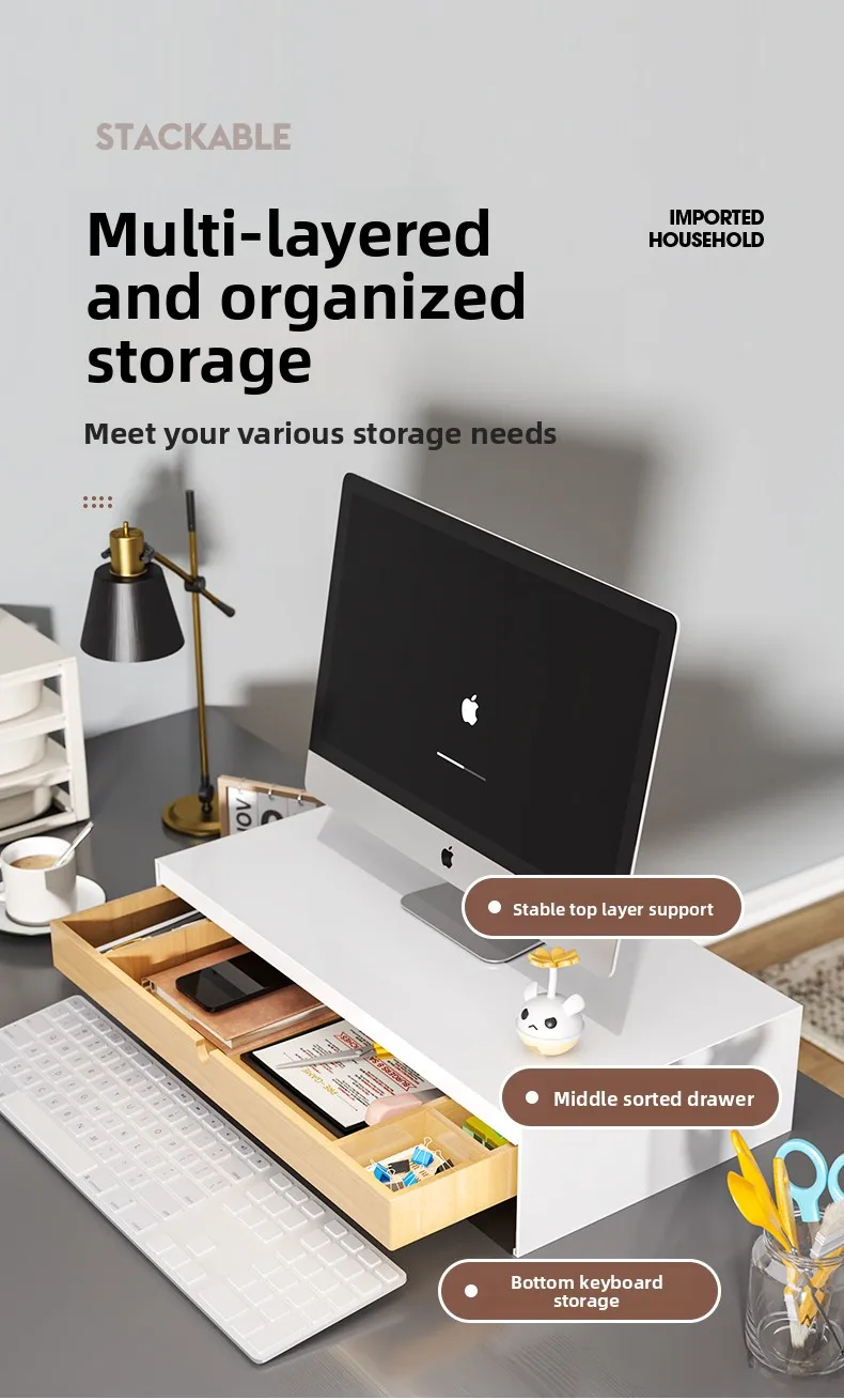 Monitor Stand Riser with Bamboo Drawer, Ergonomic Desk Organizer with Storage and Cable Management, White Monitor Stand Riser