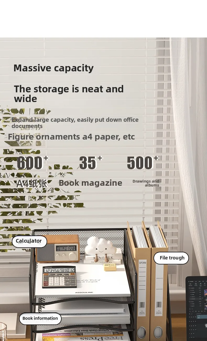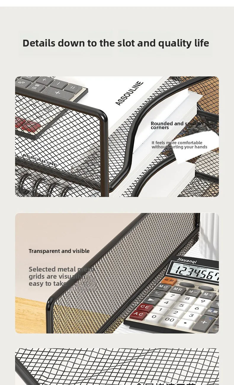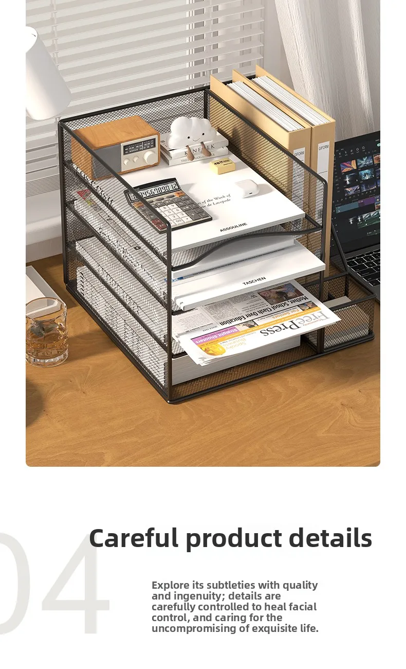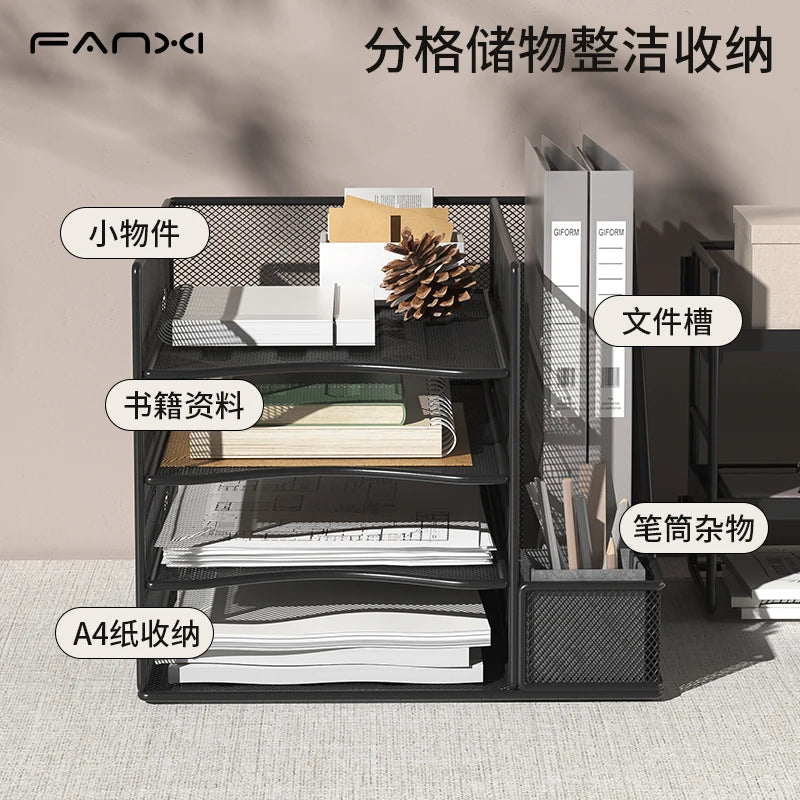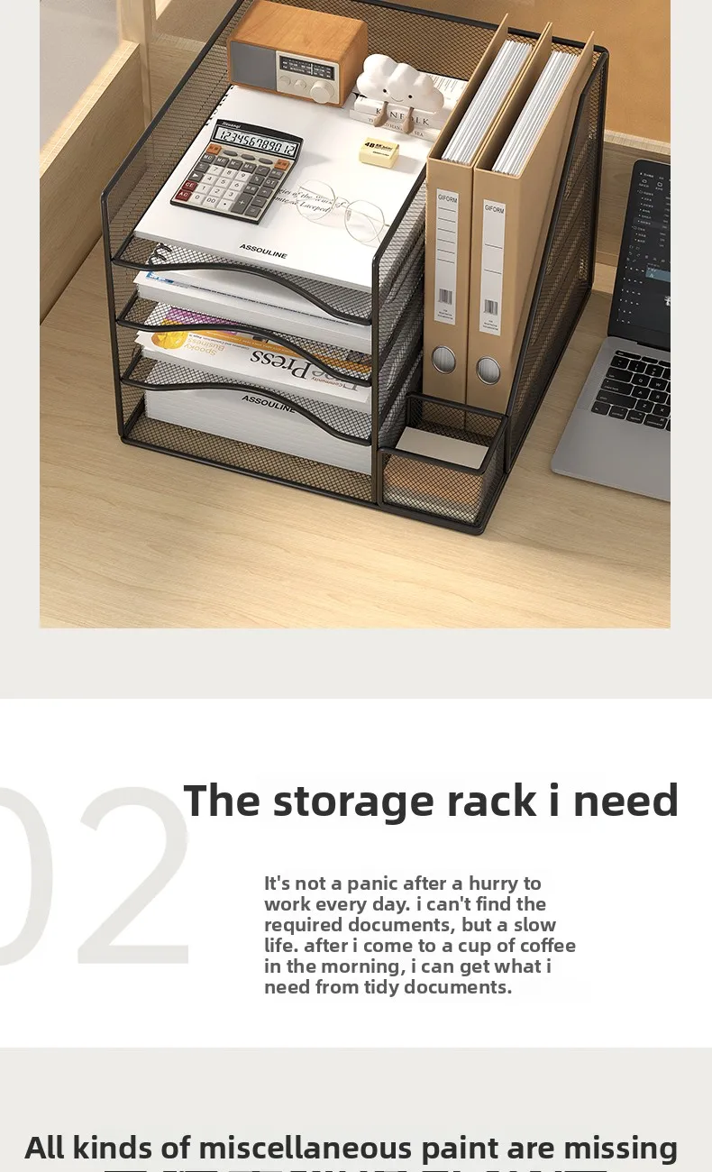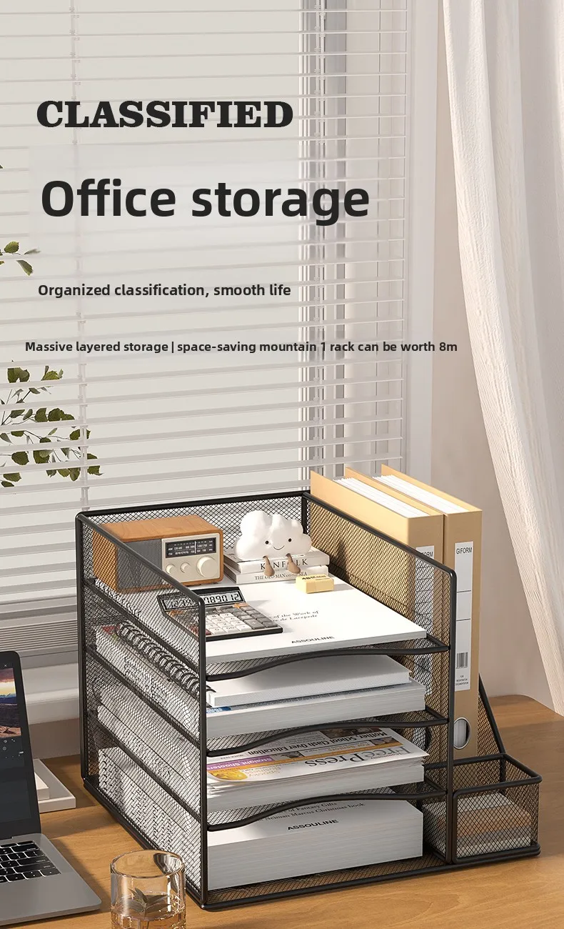 Office desktop file rack metal book stand, multi-functional integrated storage rack office supplies folder storage box organizer