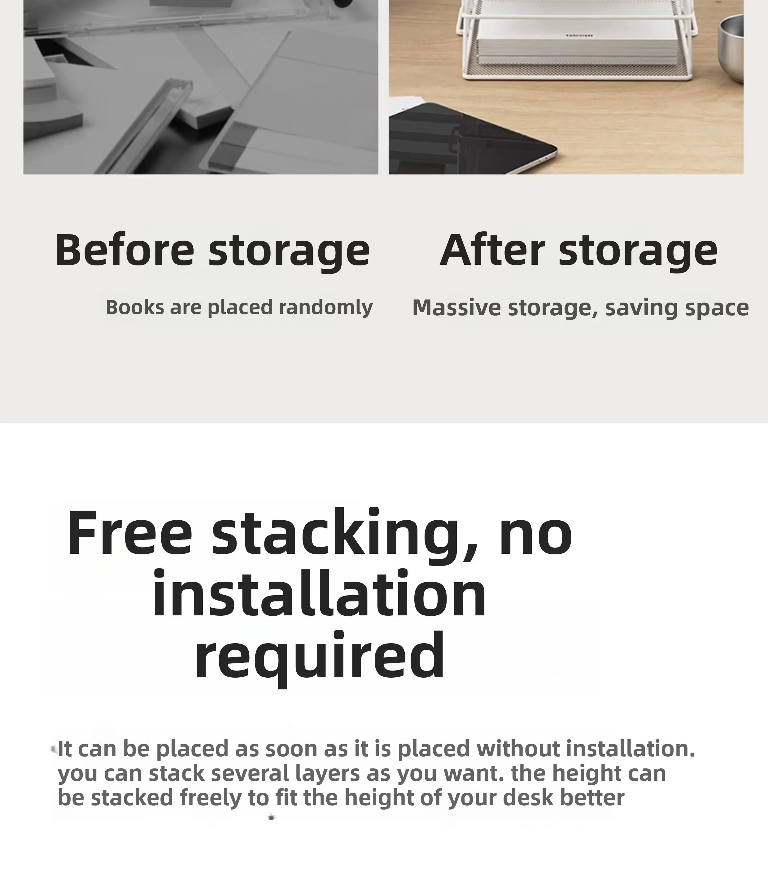 Office File Box Desktop A4 Document Organizer Stackable Laminated Papers Rack All-purpose Bathroom Storage Tray for Home