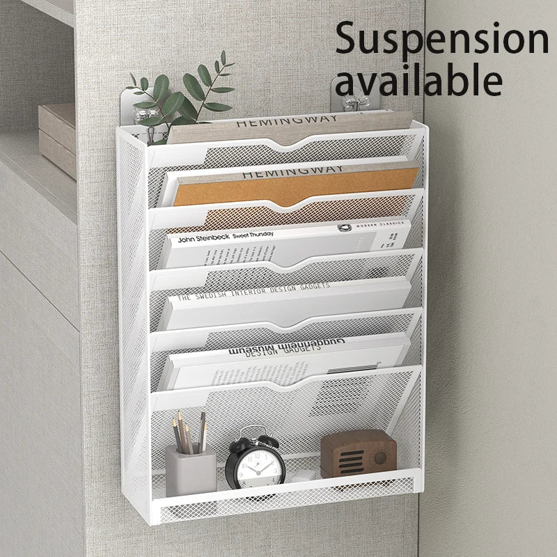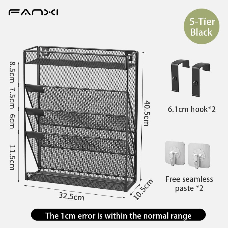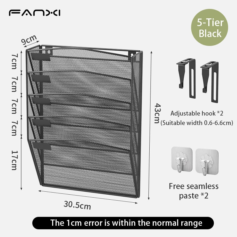 Wall File Organizer Mesh 5 Tier Wall File Holder Desktop Vertical Hanging File Folder Organizer with Bottom Flat Tray