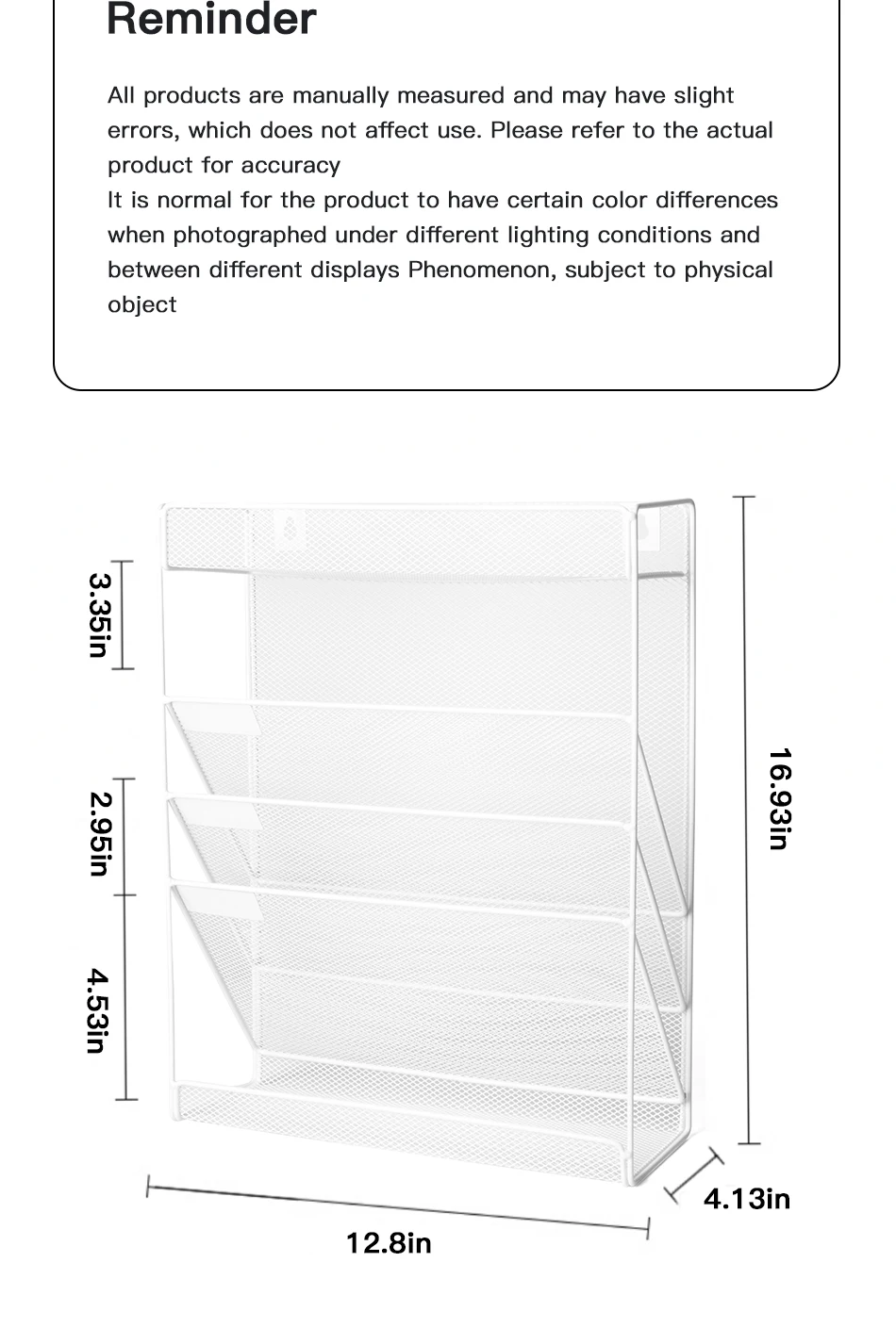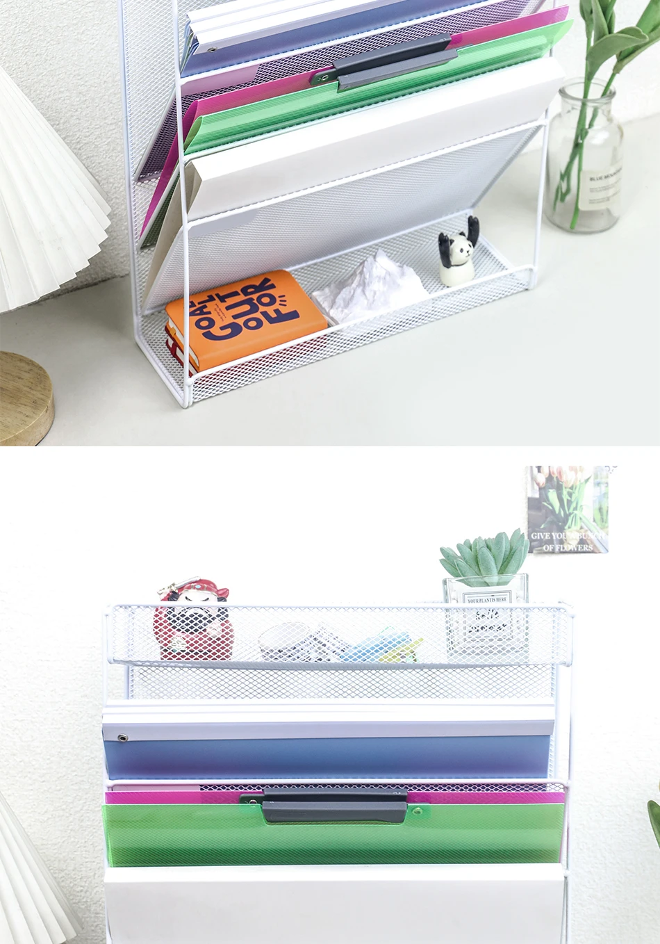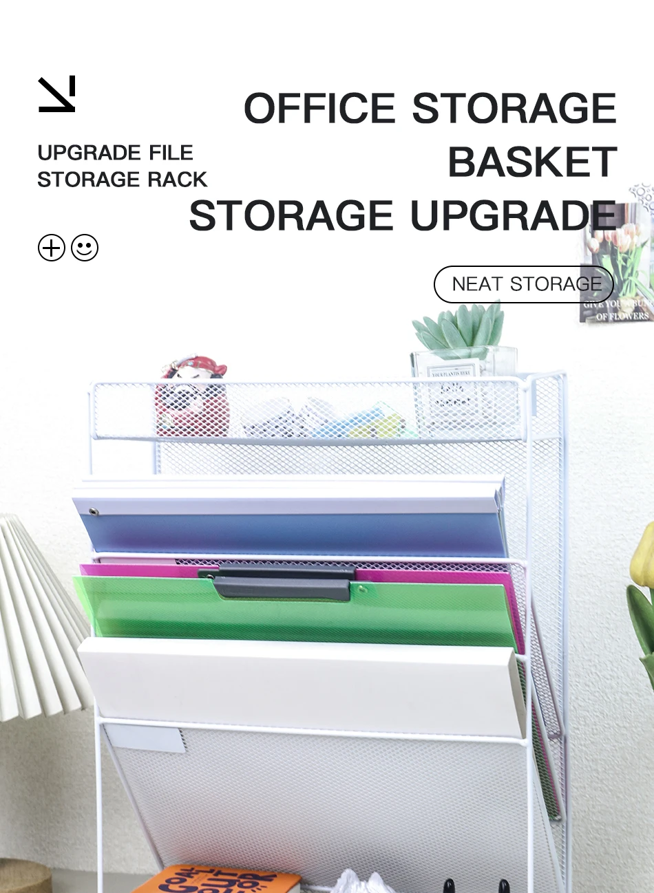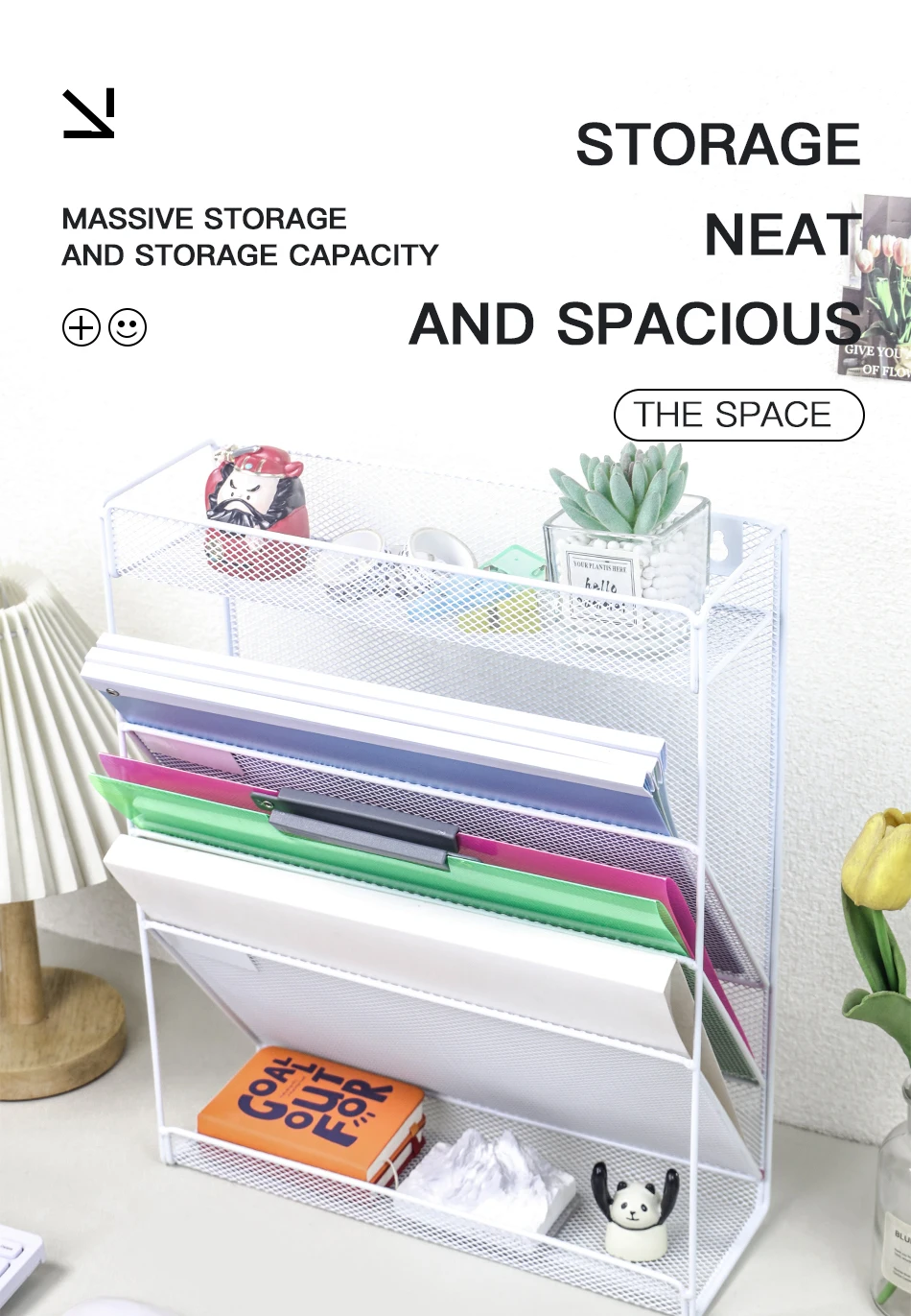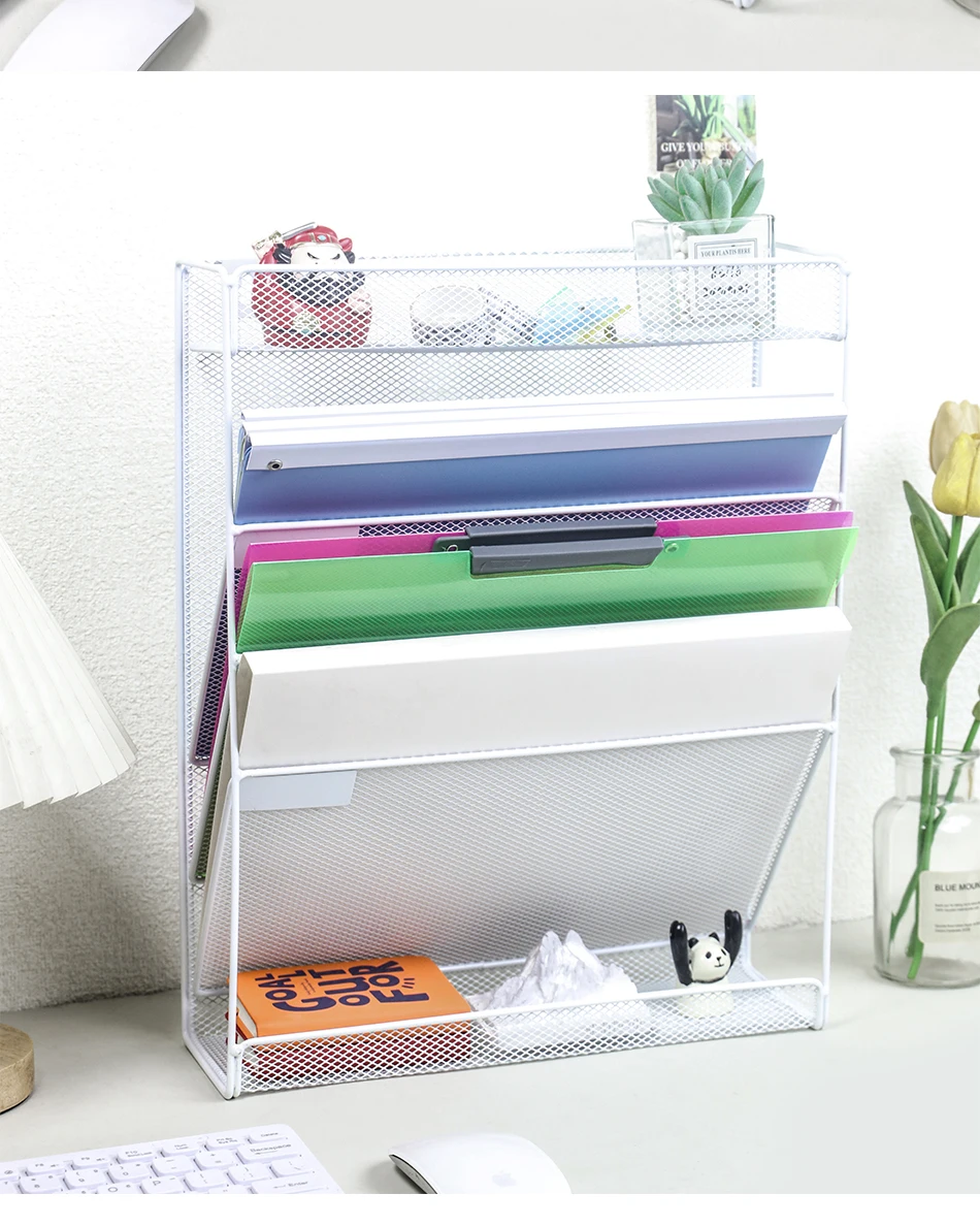 Wall-mounted file organizer Office mesh wall file holder Magazine paper holder with category name tag