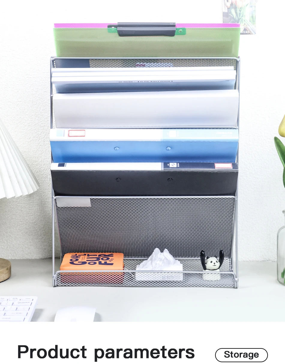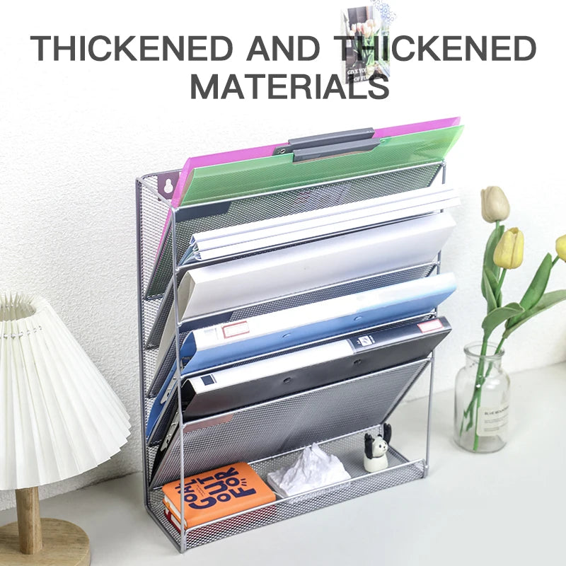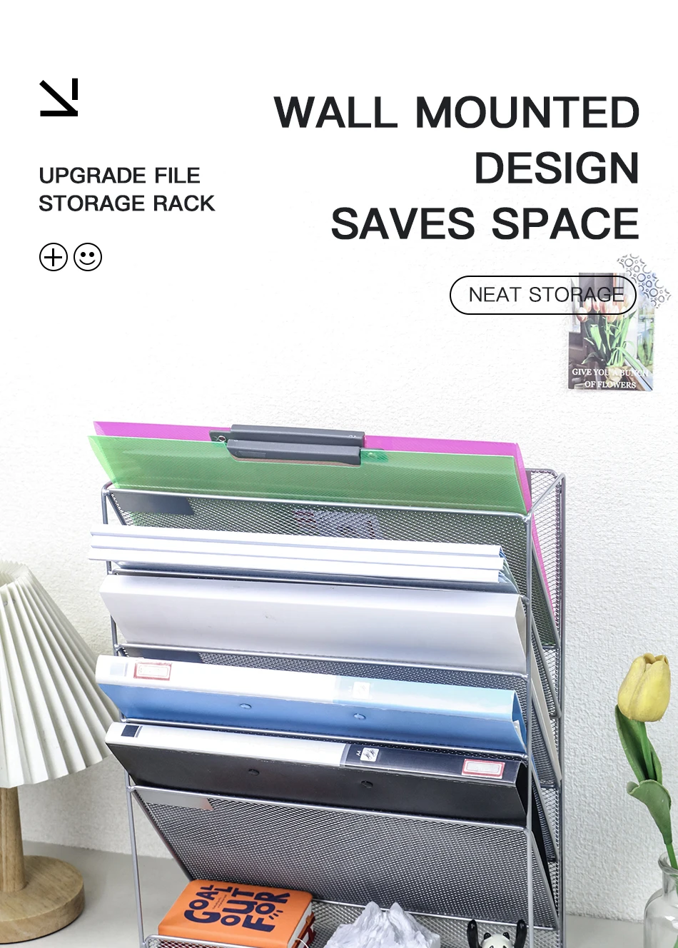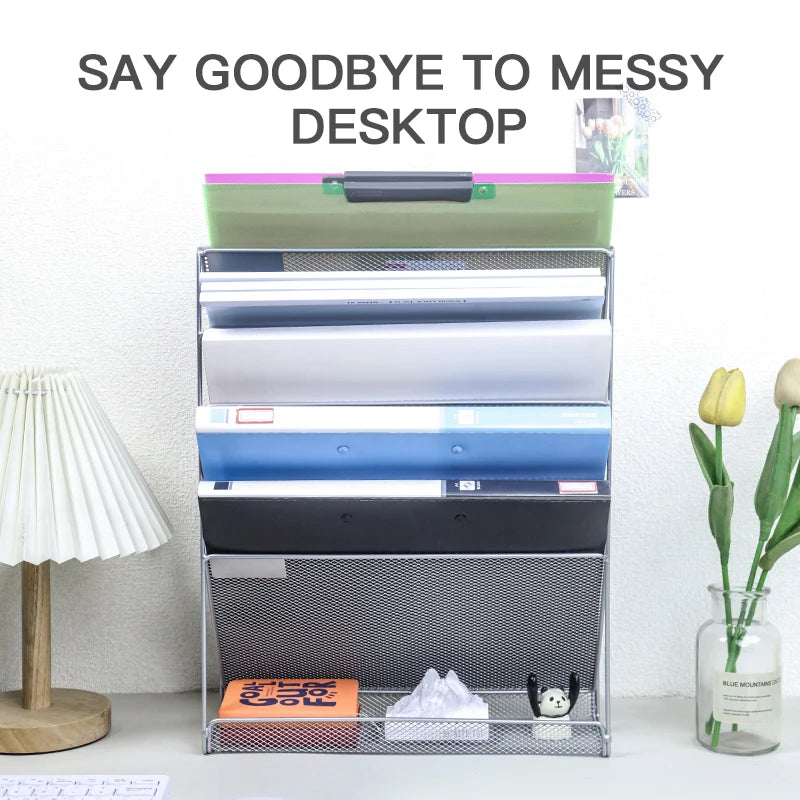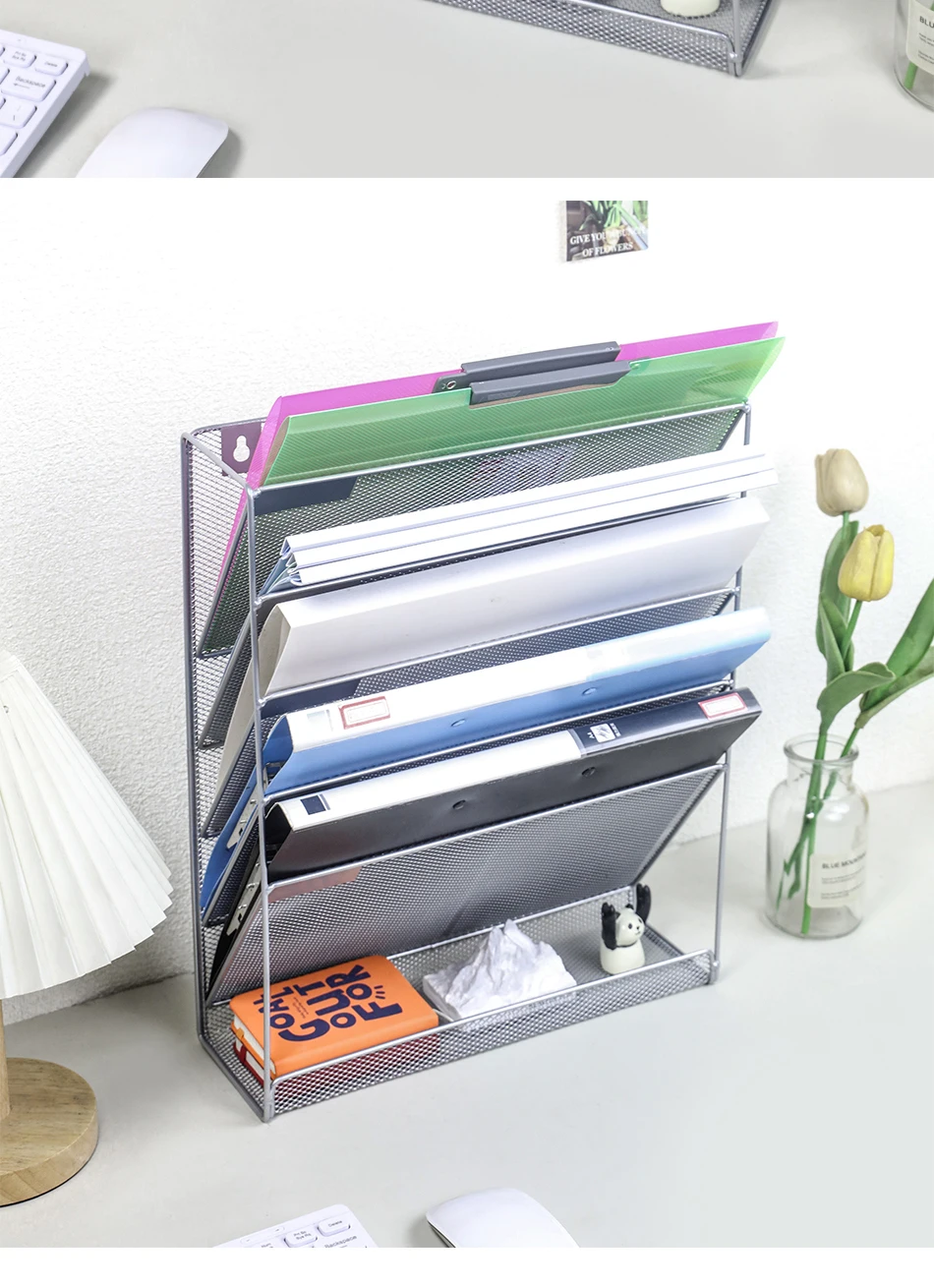 Wall-mounted office storage rack 5-level vertical file/letter rack Rugged mesh design for desktop or cubicle storage, silver
