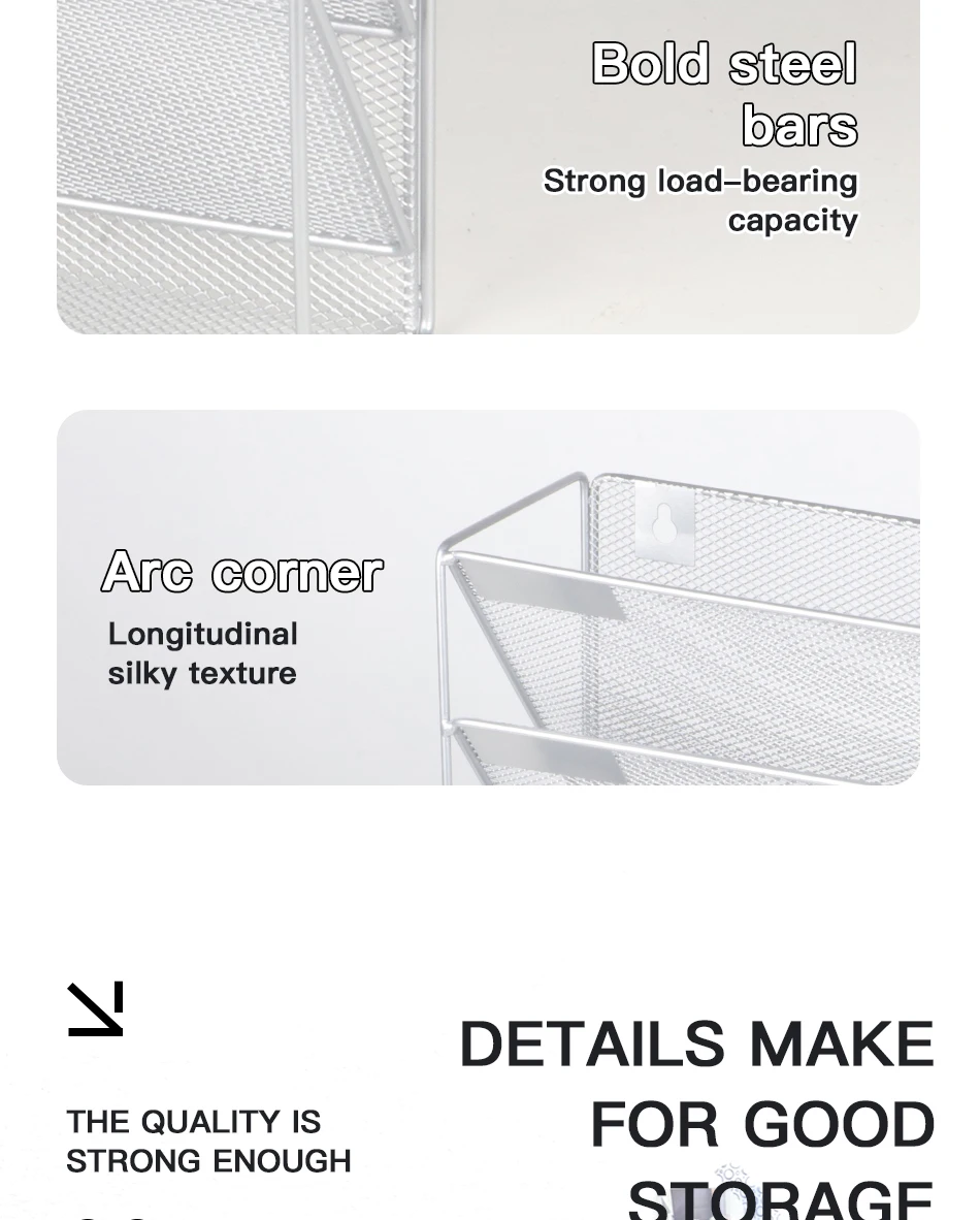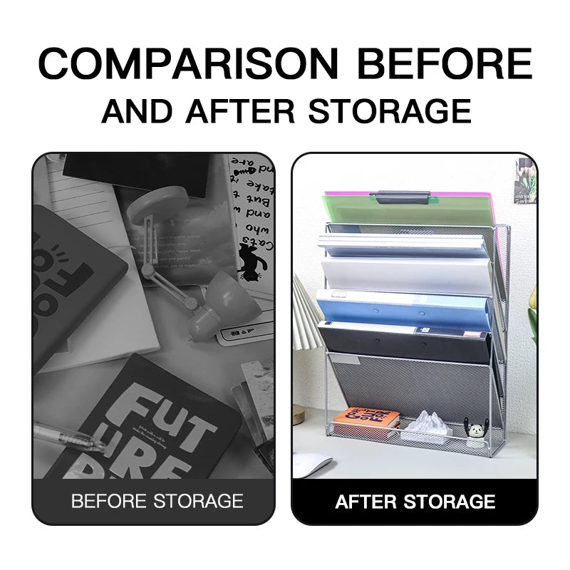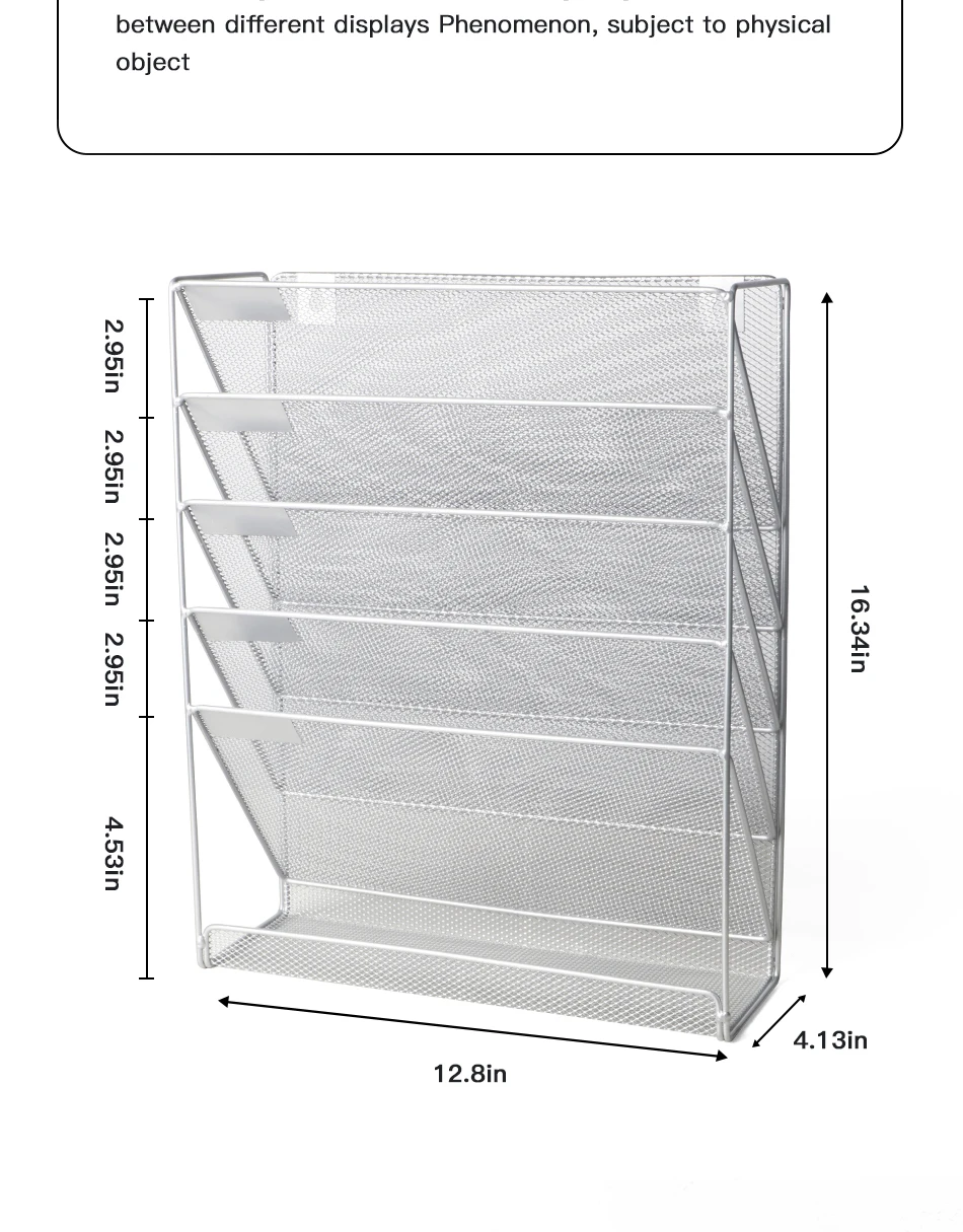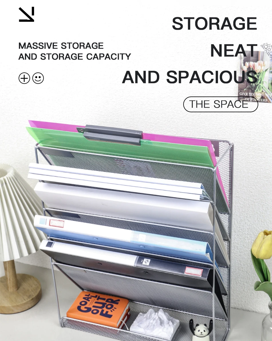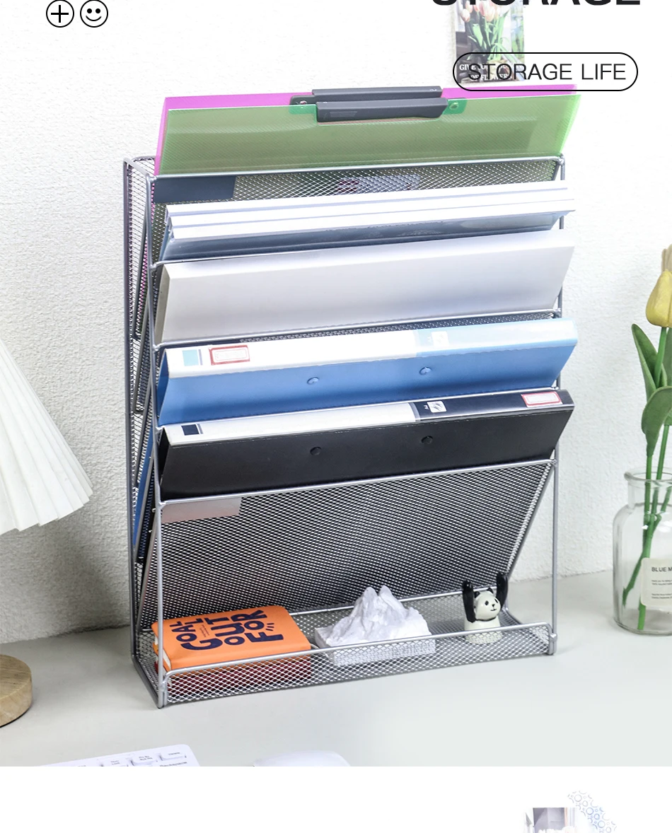 Wall-mounted office storage rack 5-level vertical file/letter rack Rugged mesh design for desktop or cubicle storage, silver