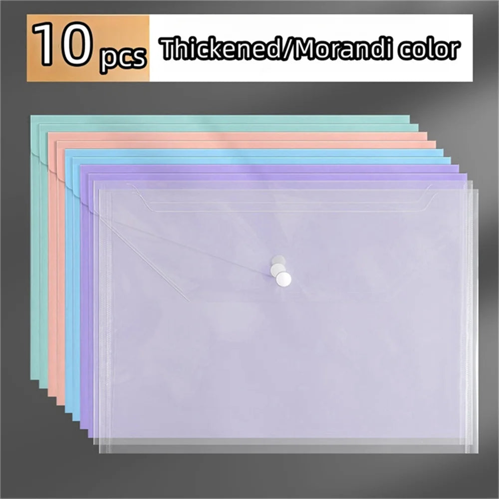 10pcs A4 Transparent Plastic File Bag Document Data Storage Bag With Snap Button Document Papers organizer Stationery supplies