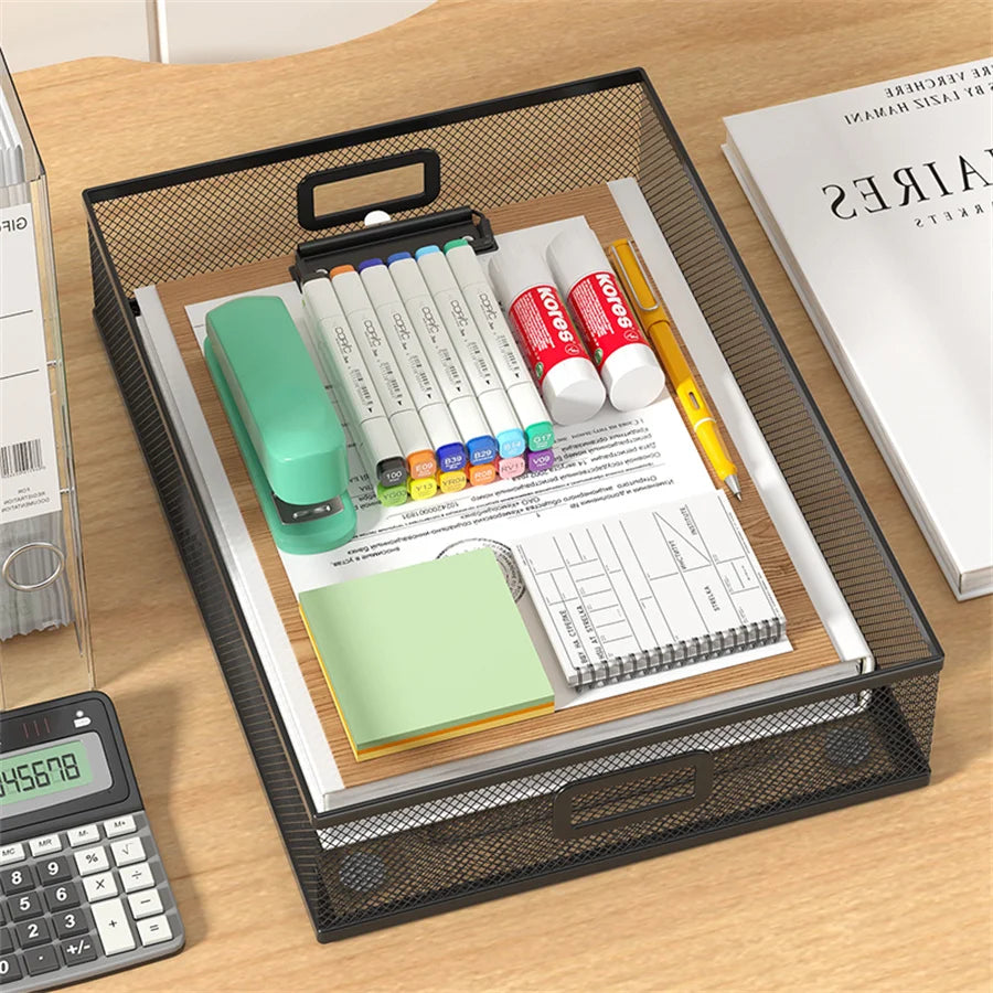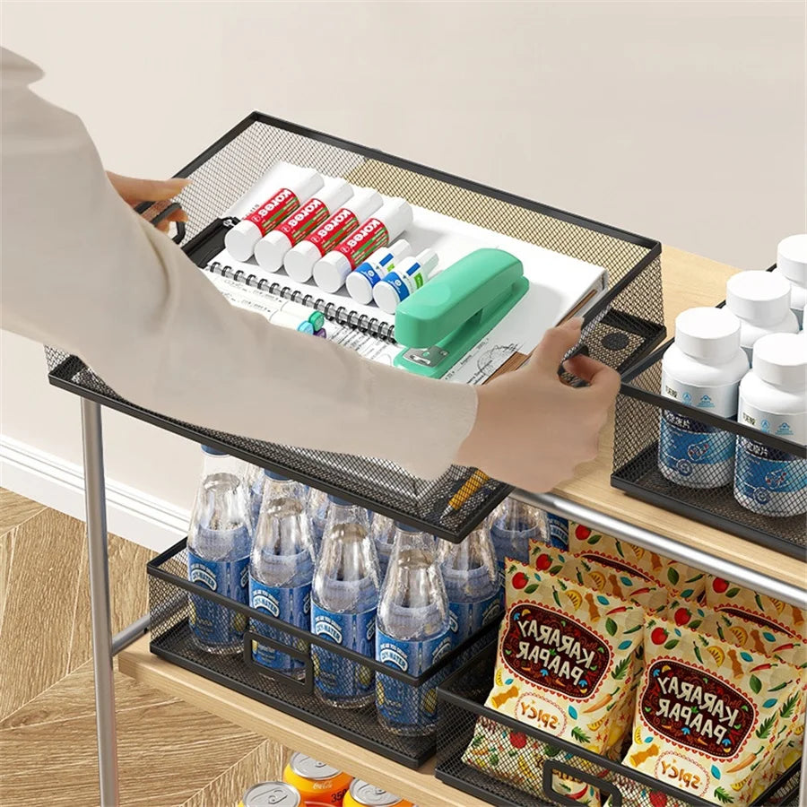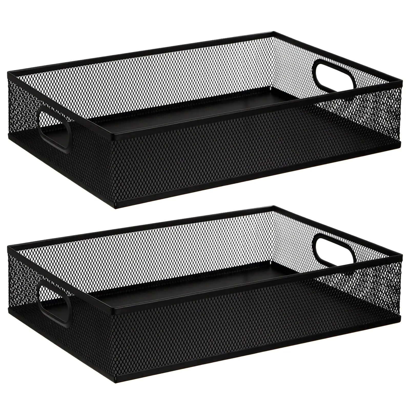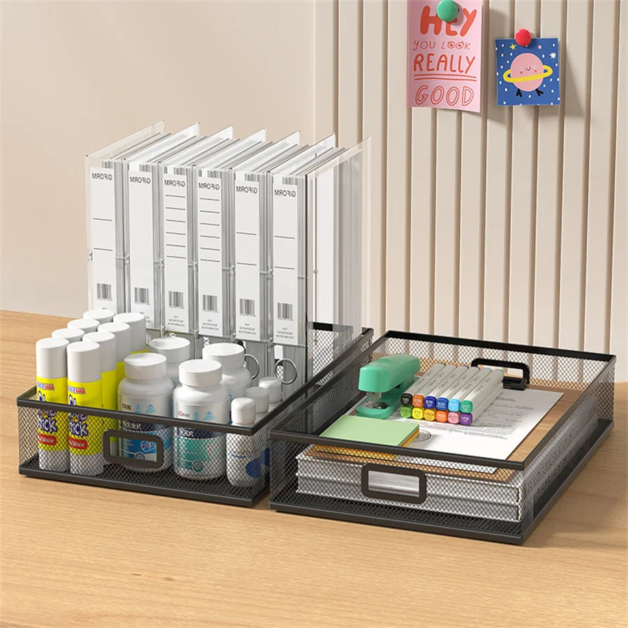 2 Pcs desktop drawer storage tray, metal mesh desktop storage tray with handle, portable large storage basket