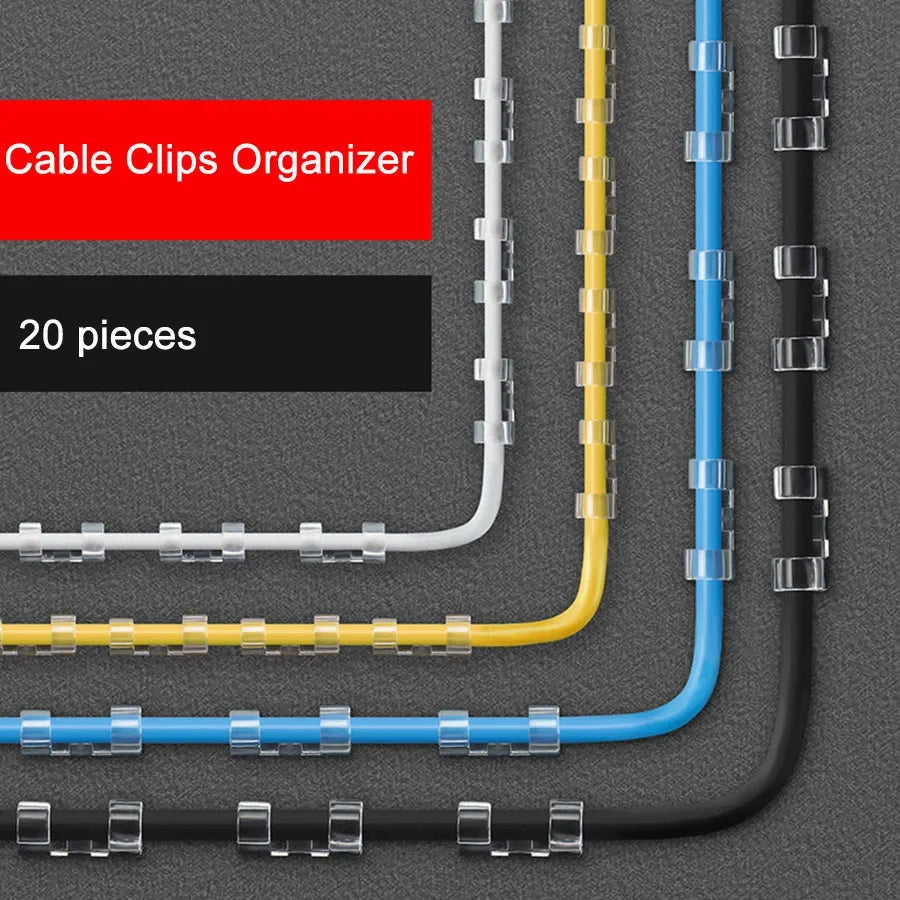 20pcs Organizer Cable Clips Manager Fixed Wire Holder Plastic Clamps Organizer Cord Desktop Tidy Wire Charger Management