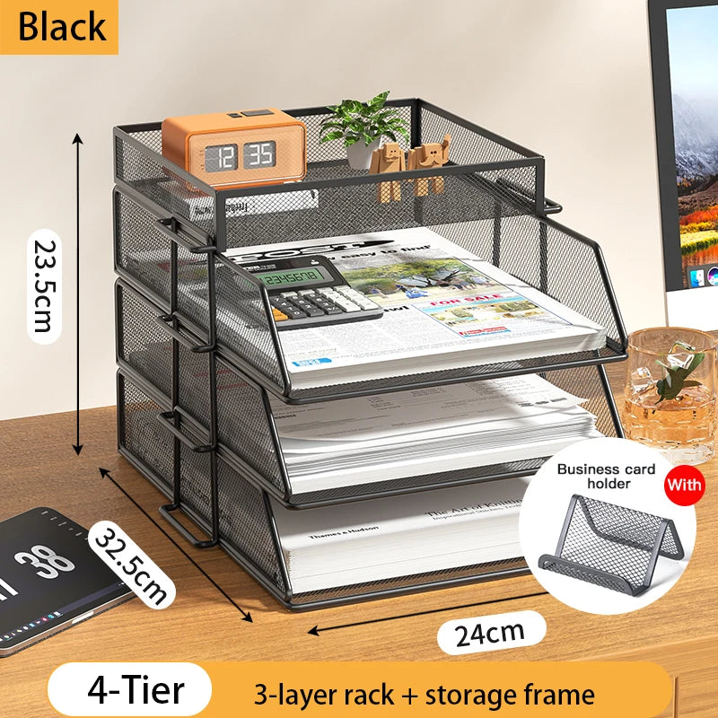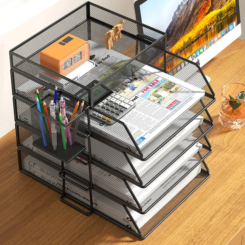 4 Tier Desk Organizer - Stackable Paper Tray, Paper File Organizer for Desk, 5 Trays Mesh Stackable Paper Tray Desktop Document