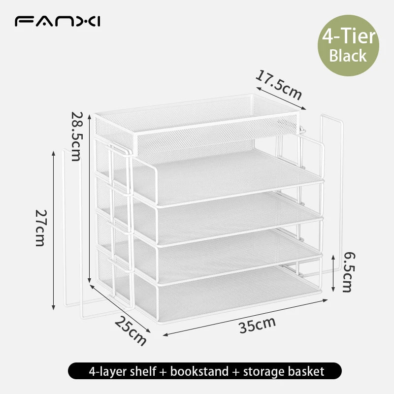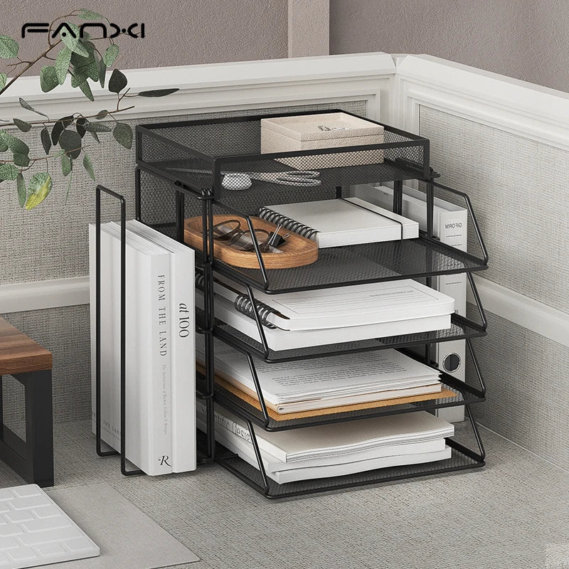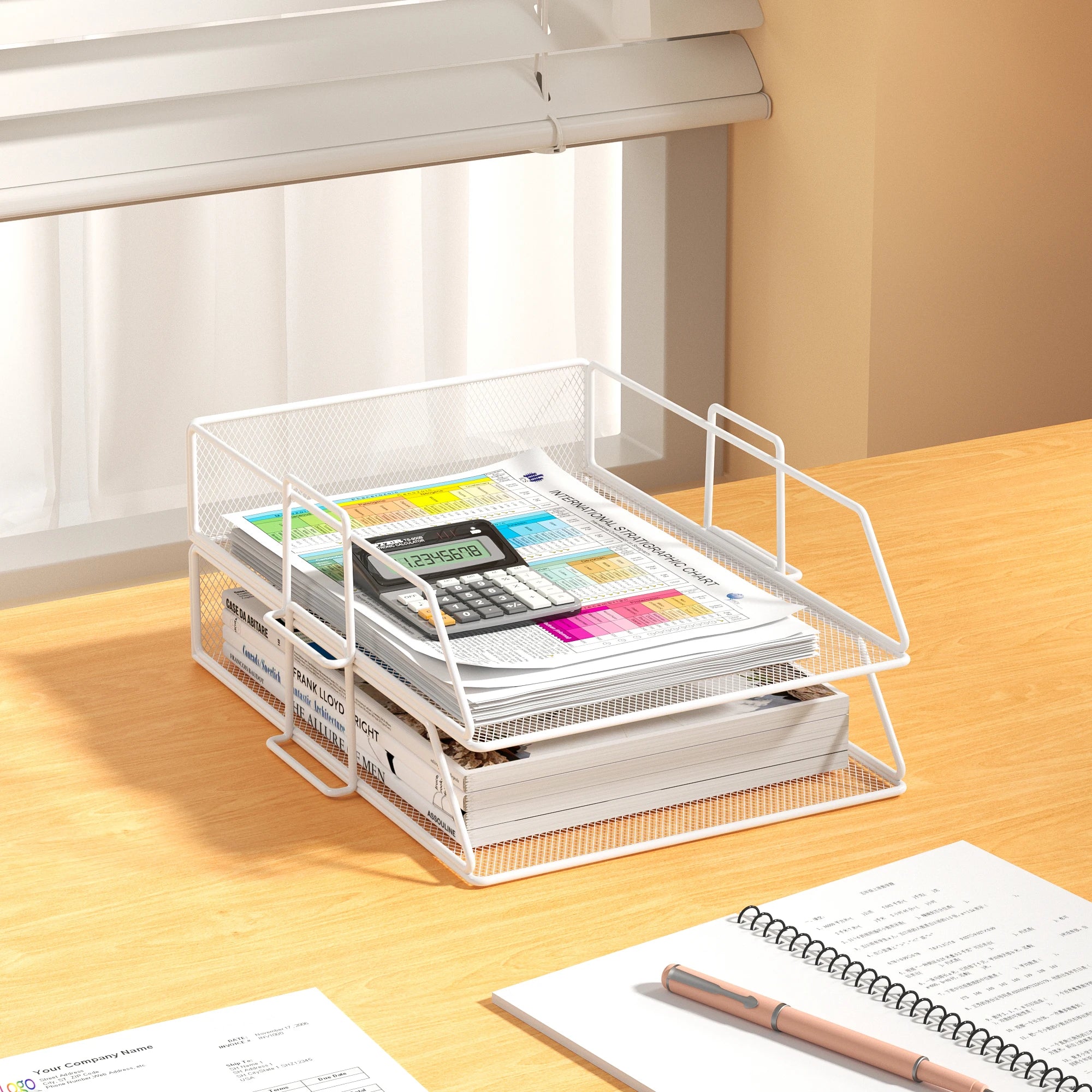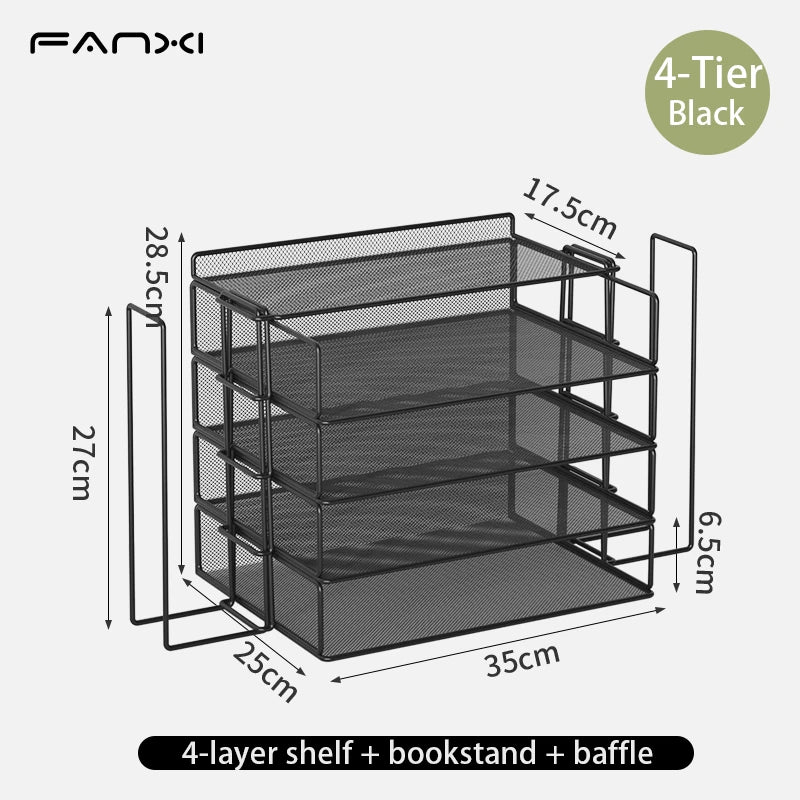4-Tier Desk Organizer Stackable Paper Tray Paper File Organizer for Desk Mesh Stackable Paper Tray Desktop Document for School