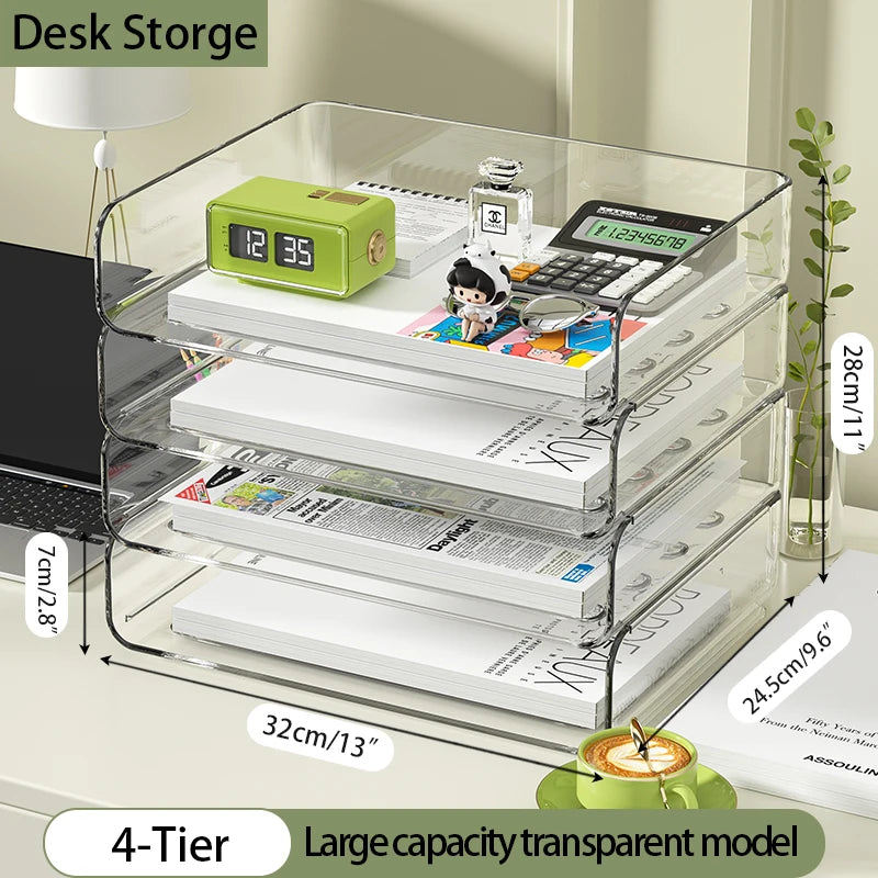 4-Tier Paper Organizer for Desk, Stackable Desk Organizer Paper Tray, Desk Accessories & Workspace Organizers, Ideal for Office