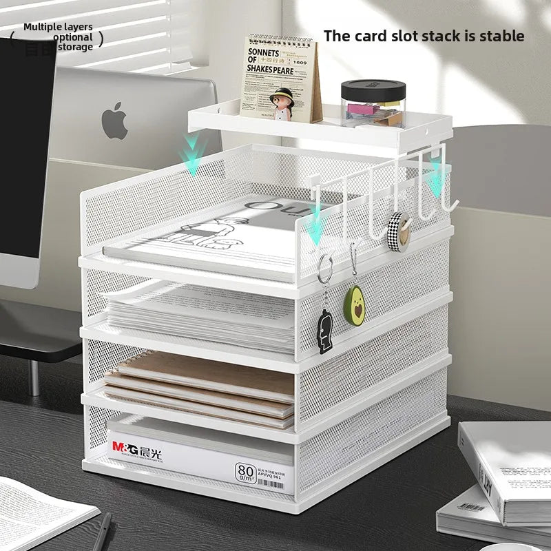 4-Tier Stackable Paper Tray, Metal Mesh Desktop Organizer, Paper Sorter, Letter Trays,File Document Storage Rack for for Office