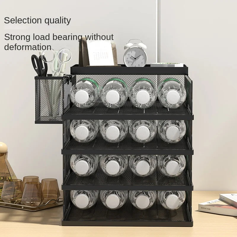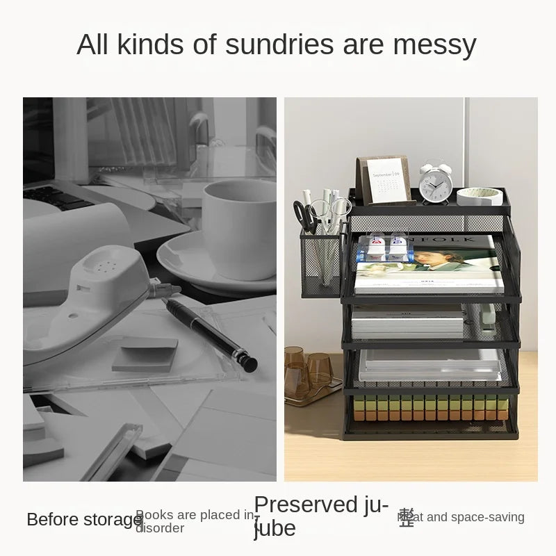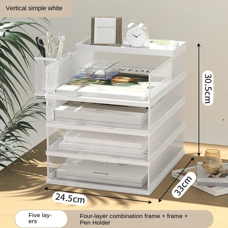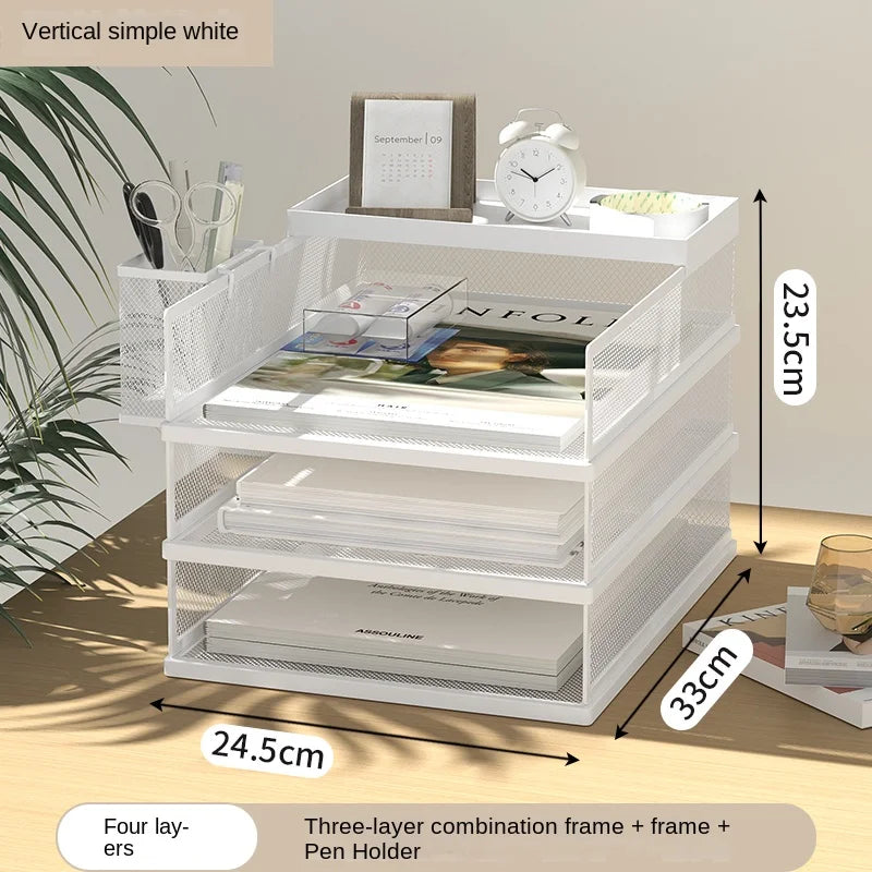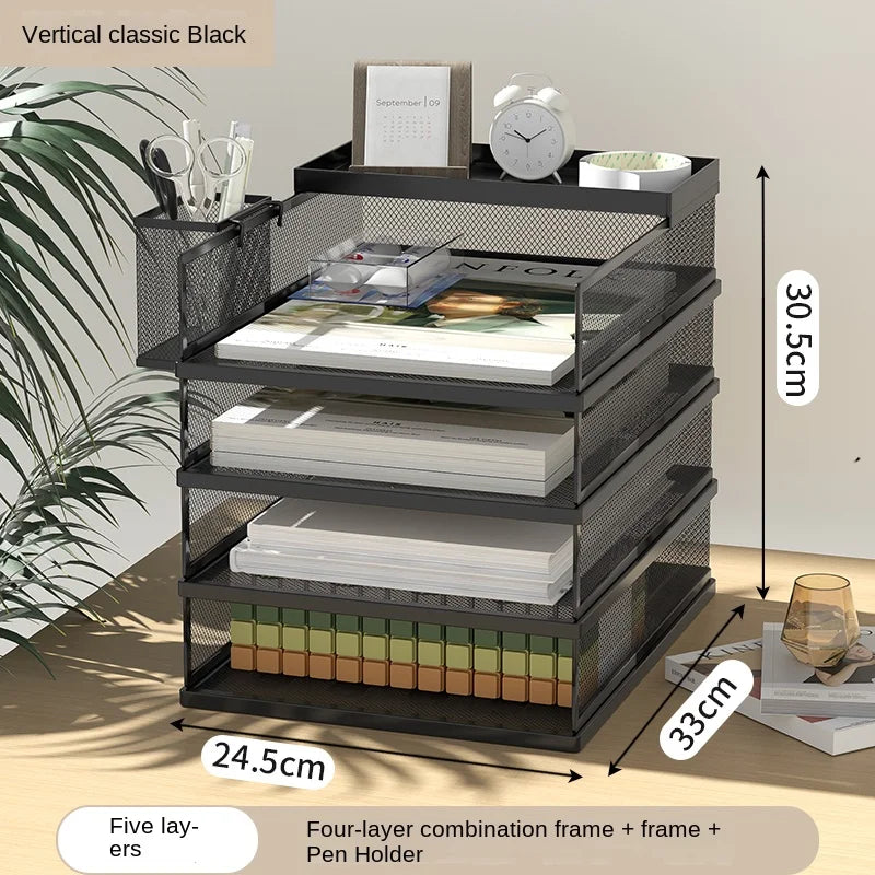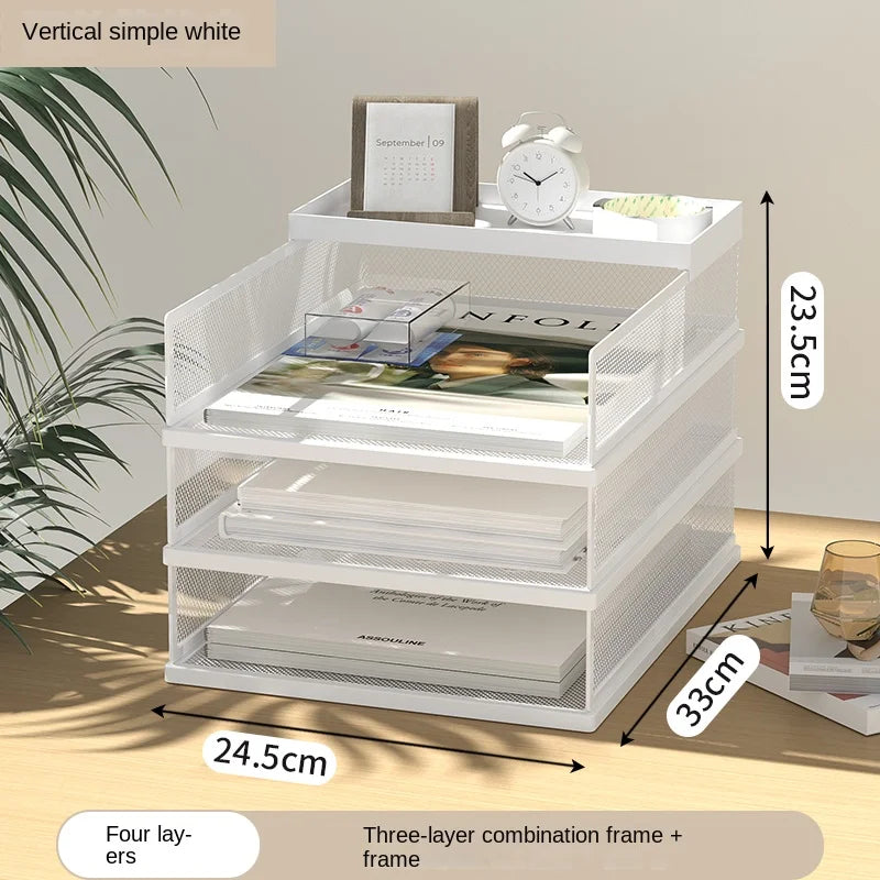 A3A4 Desktop File Rack Metal File Box Storage Rack Metal Multi-Layer File Folder Rack Storage Box Bookshelf Office Data Sorting