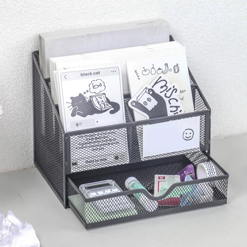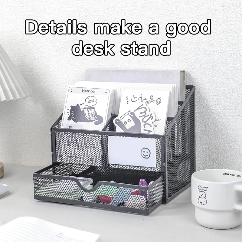 Desk Organizer Black Desk Accessories Office storage Desktop pen holder with drawer Home workspace