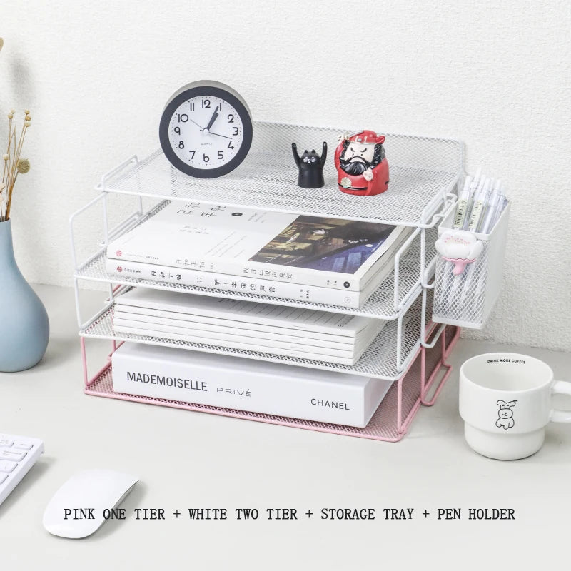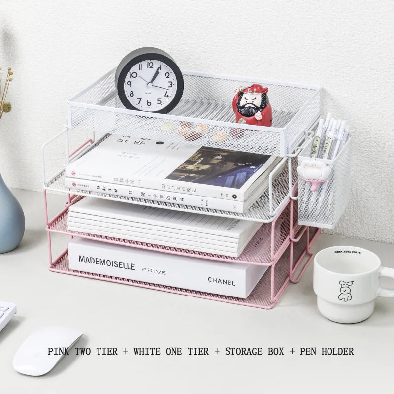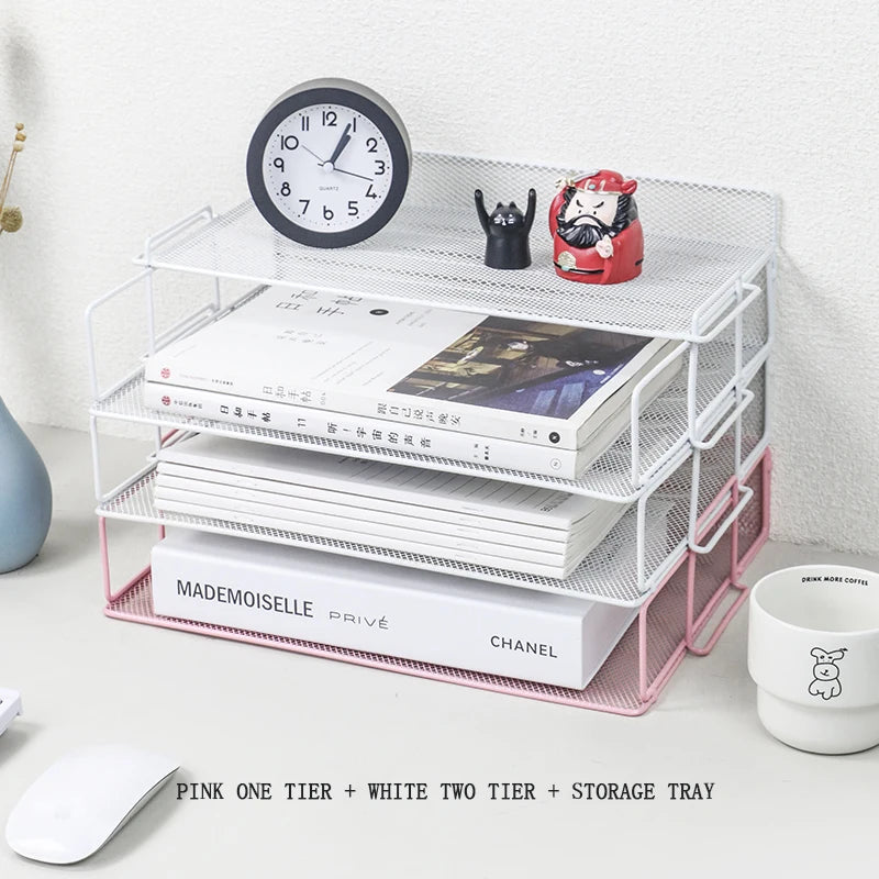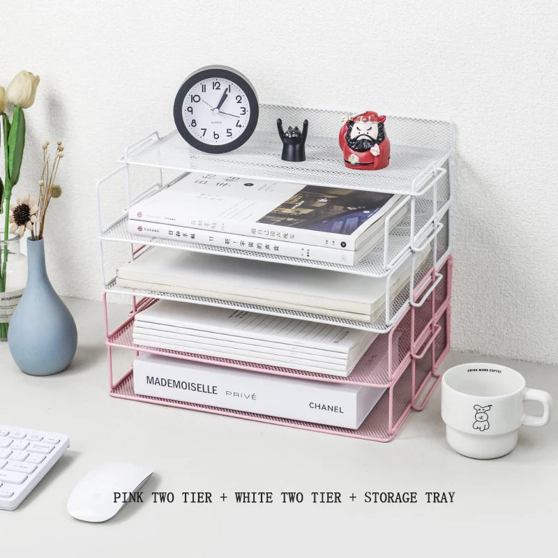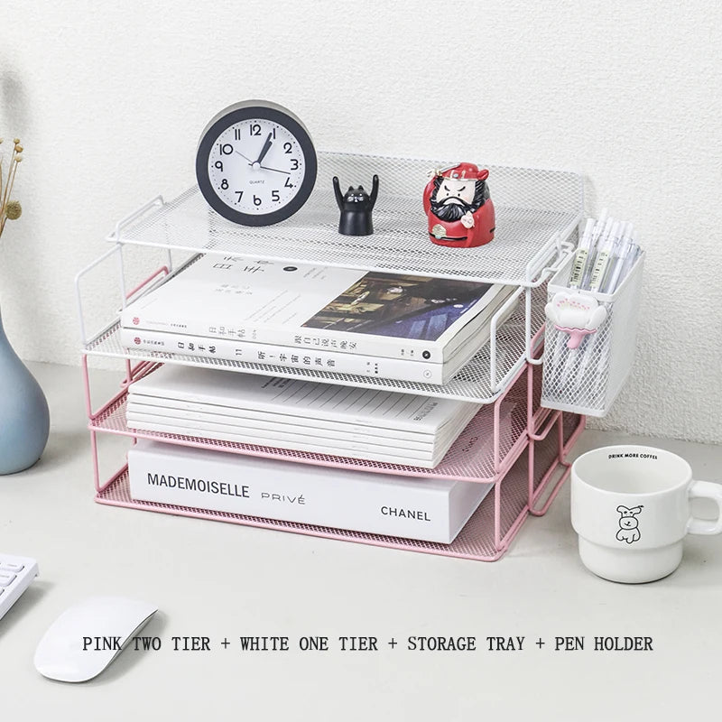 Desk organizer - Stackable paper tray,4 layer pink desk organizer,5 tray metal paper organizer, suitable for desk, file organize
