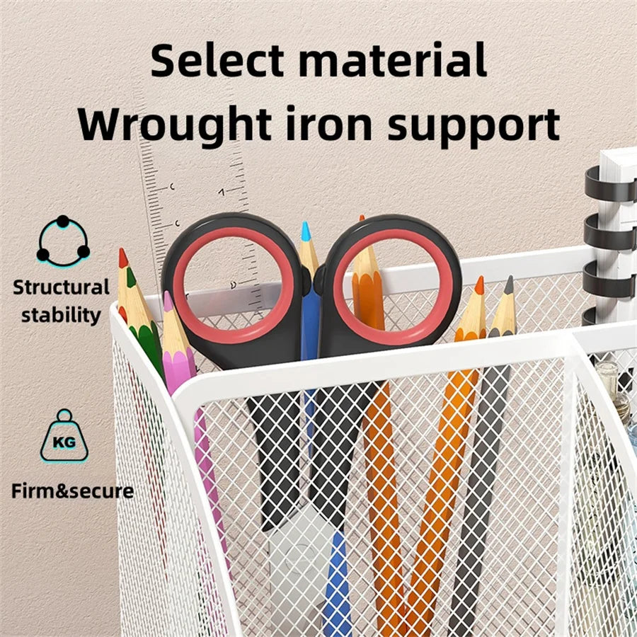 Desk Stationery Organizer Creative Metal Pen Holder Pencil File Storage Rack 7 Grid Storage Box Divided Container Office Access