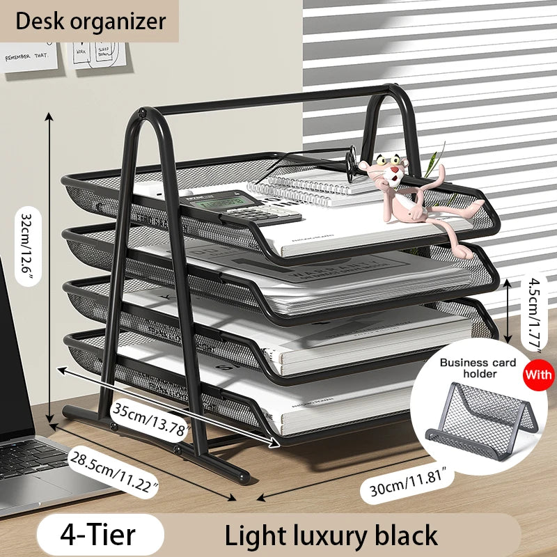 Desktop paper tray with 3-tier desktop file manager, office storage and stacking file rack, file organizing