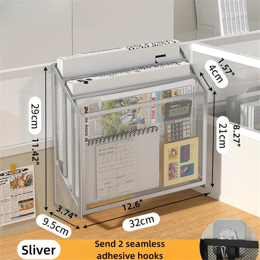 Folder storage rack, office supplies organizing rack, home desktop, multi-layer file frame, office metal book stand
