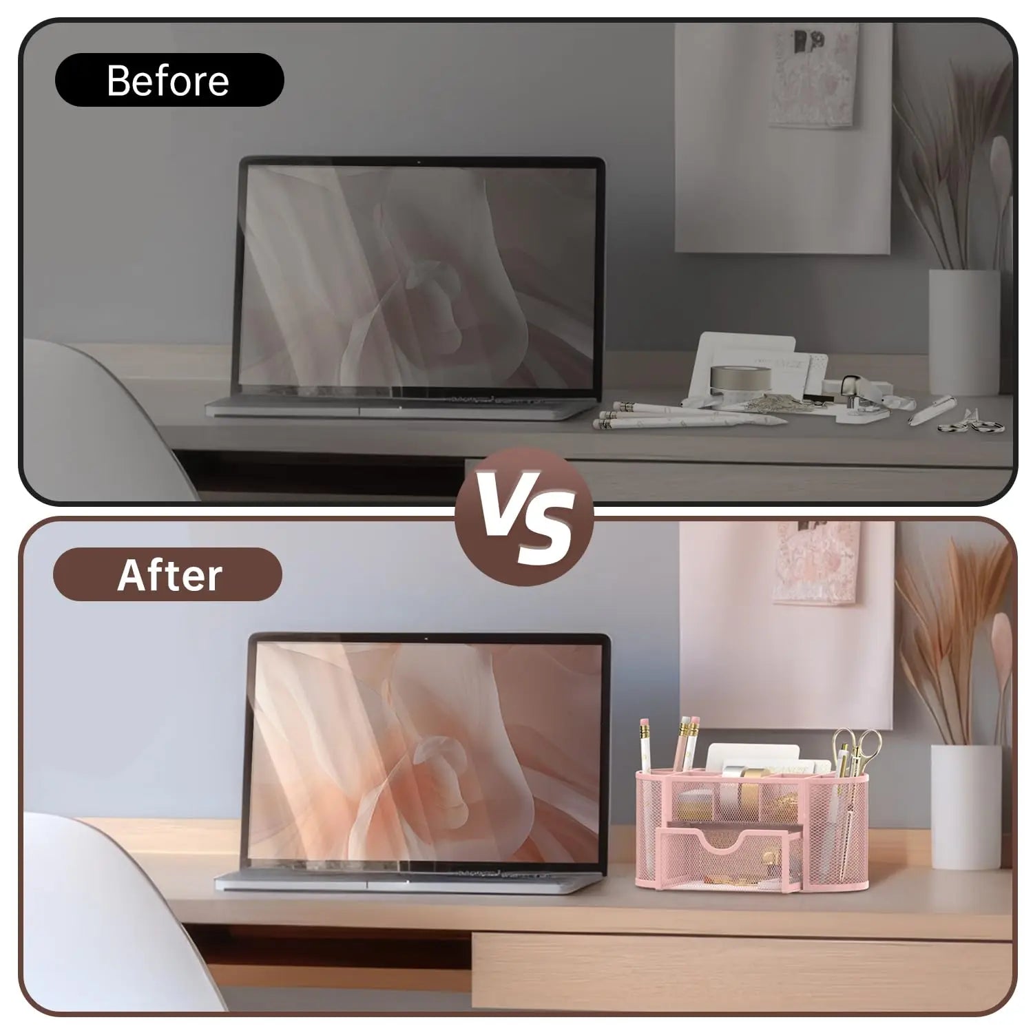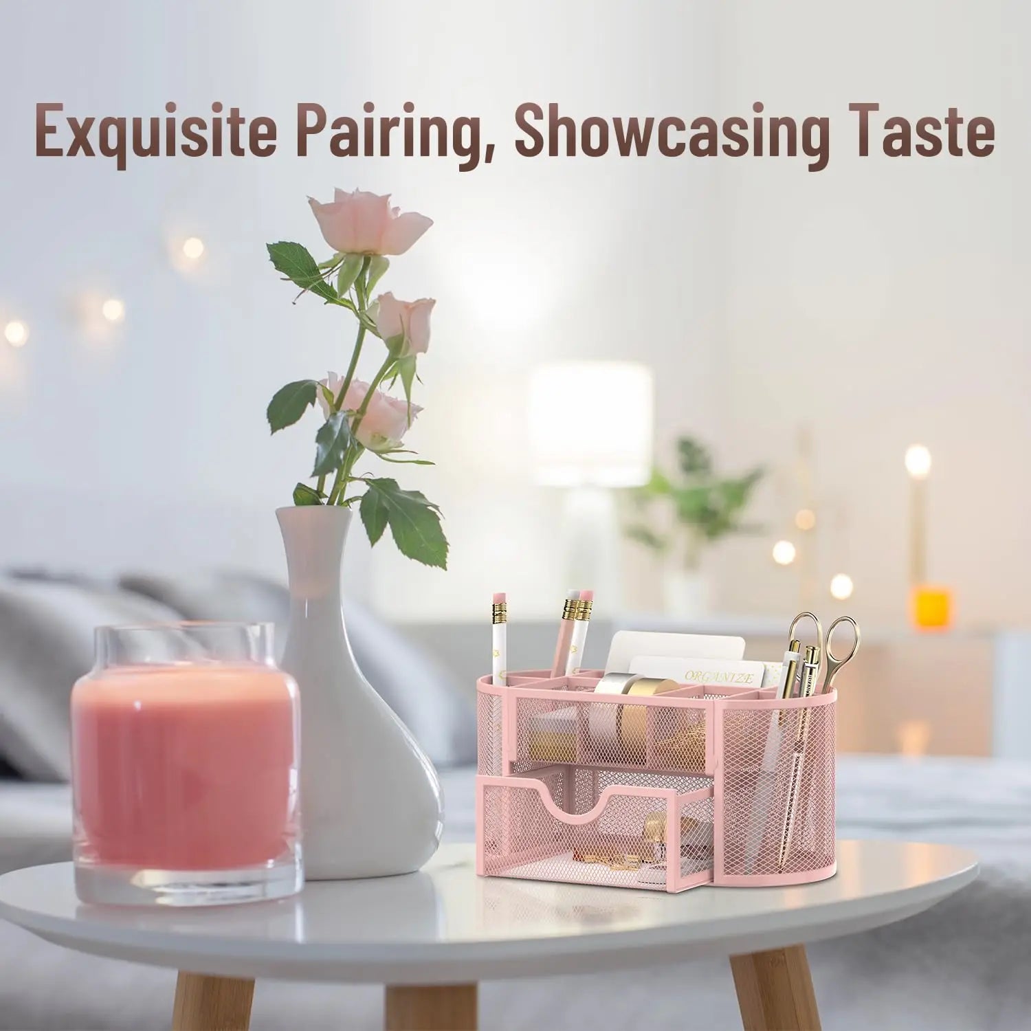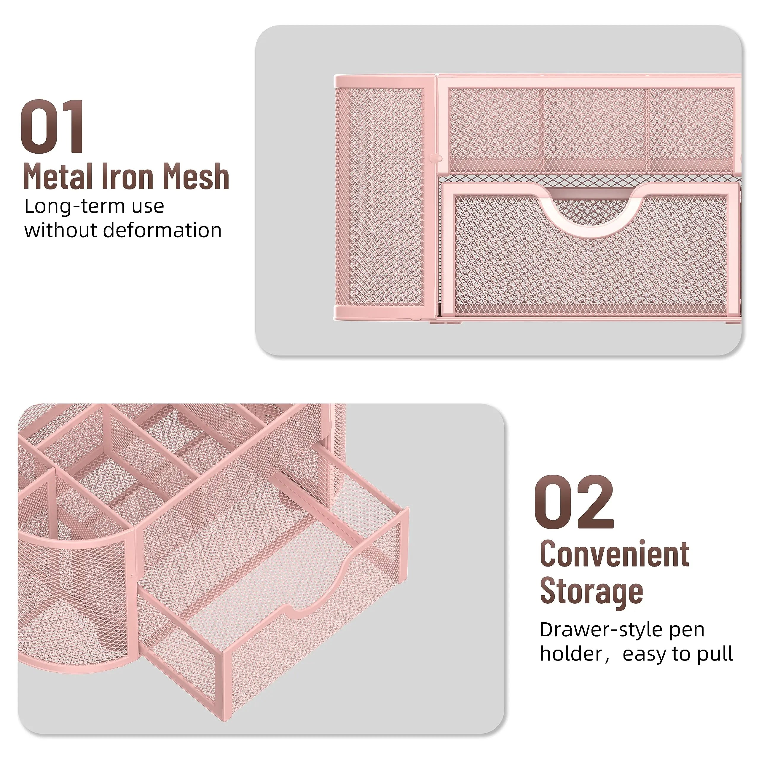 Mesh Desk Organizer, Desk Accessories & Workspace Organizers with Drawers, Pencil Holder for Desk with 9 Compartments for Office