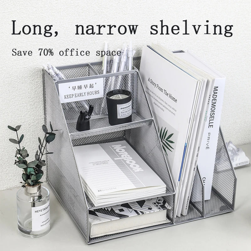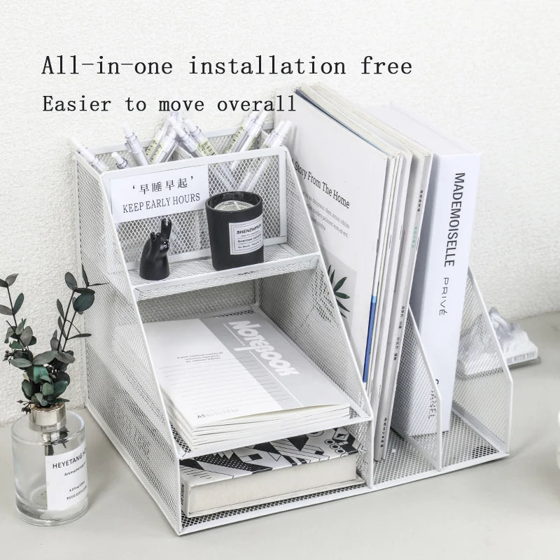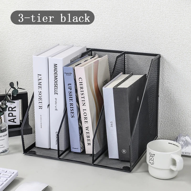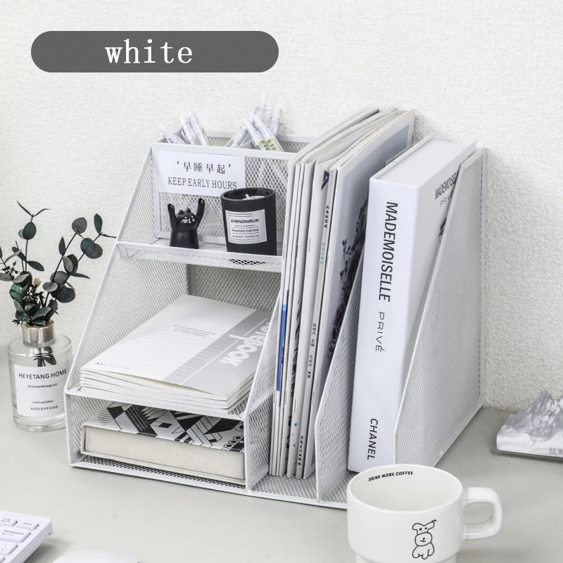 Mesh storage frame multi-functional layer desktop file letter tray for folders, mail, stationery, desk accessories White black
