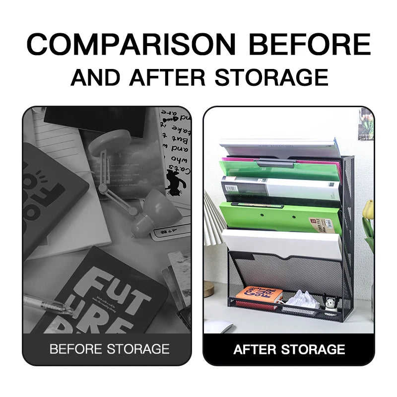 Mesh wall file storage rack 5-layer vertical mounting rack Magazine rack with bottom flat tray, side closed, black