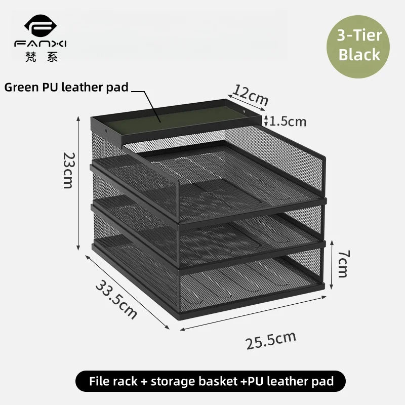 Metal File Stack Stackable Desk Organizer Office Desktop Organizer Multilayer File Tray with a Hanging Pen Holder Desk Organizer