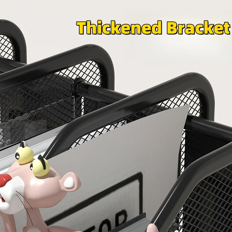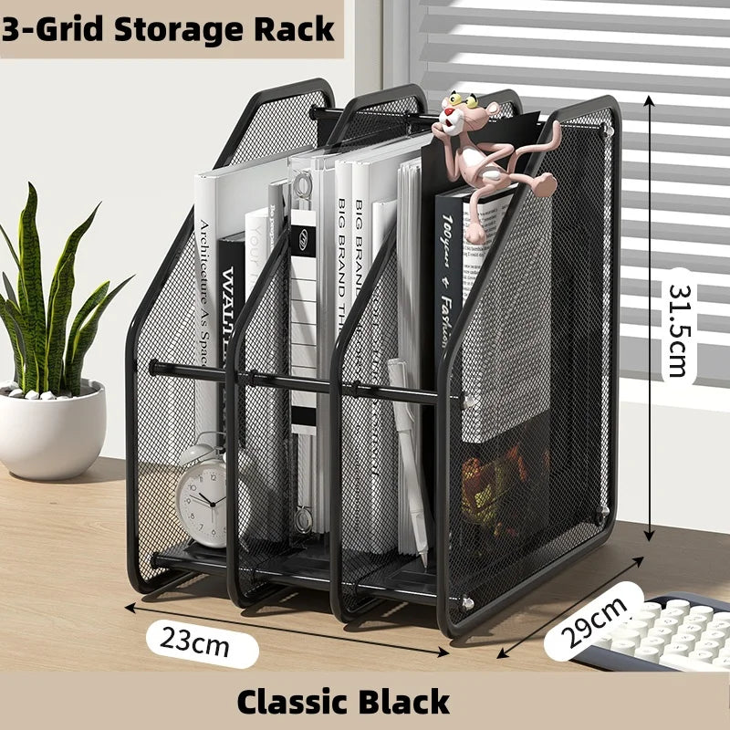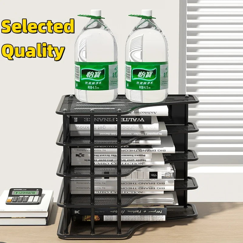 Metal Iron Mesh Quadruple-Column File Rack Four-Gear Bookshelf Data Rack Desktop File Box Four-Grid Metal Multi-Layer File