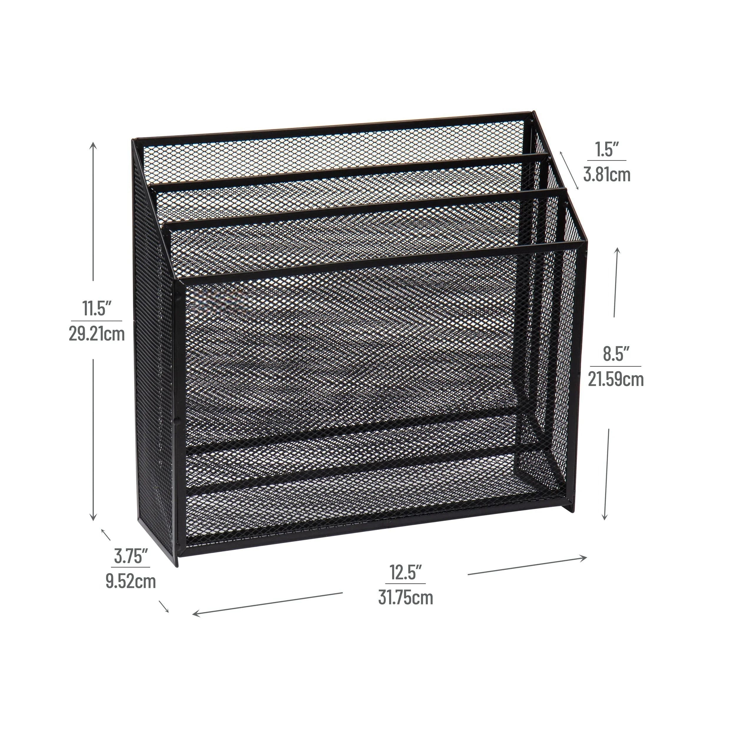 Mind Reader Vertical File Storage, Desktop Organizer, Workspace, Office, Metal Mesh, 12.5" L x 3.75" W x 11.5" H, Black